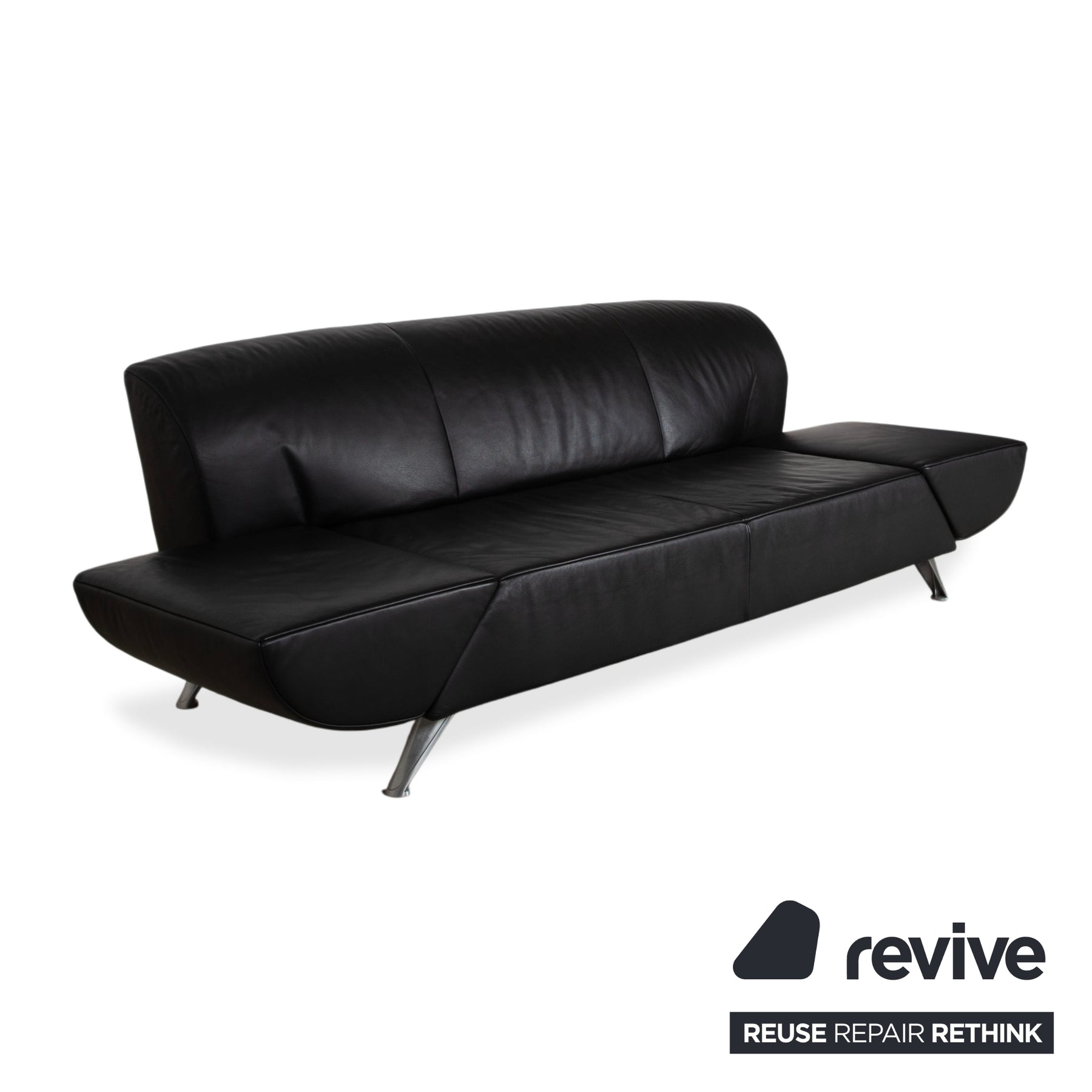 Hier holst du dir mit dem Jori JR-8100 einen echten High-End-Zweisitzer ins Haus, der durch seine markante, nach außen gewölbte Linienführung sofort ins Auge fällt. Die geschwungenen Metall-Füße bilden einen schönen Kontrast zum Lederkorpus und geben dem Sofa diesen unverwechselbaren, kantigen Look. In dieser Dreisitzer-Ausführung aus schwarzem Leder wirkt das Möbelstück extrem präsent und souverän im Raum, ohne dabei seine einladende Art zu verlieren.