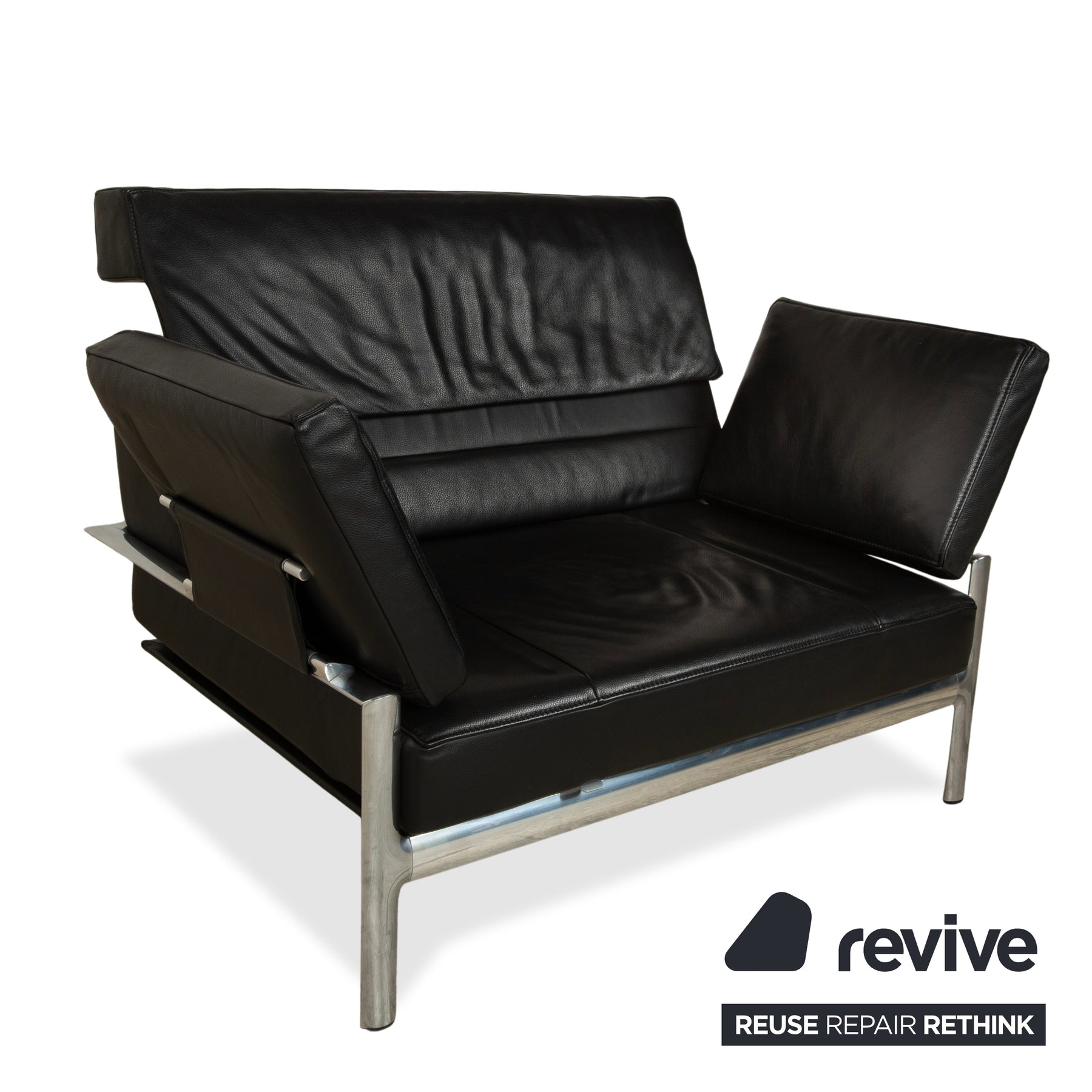 Fauteuil deux places en cuir Jori, canapé noir, fonction manuelle