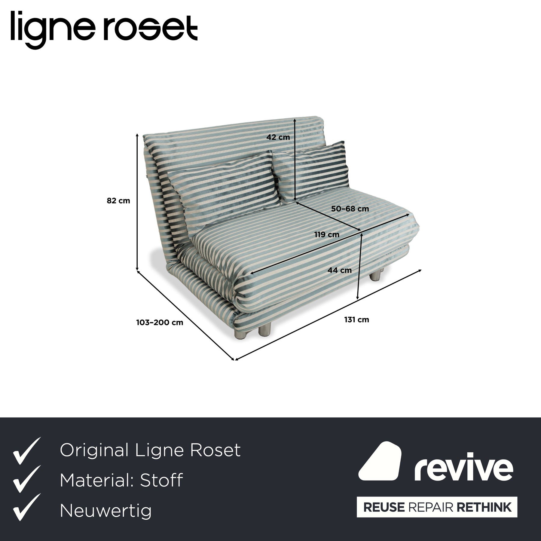 Ligne Roset Multy Zweisitzer Stoff Grün Silber gestreift manuelle Schlaffunktion Neubezug