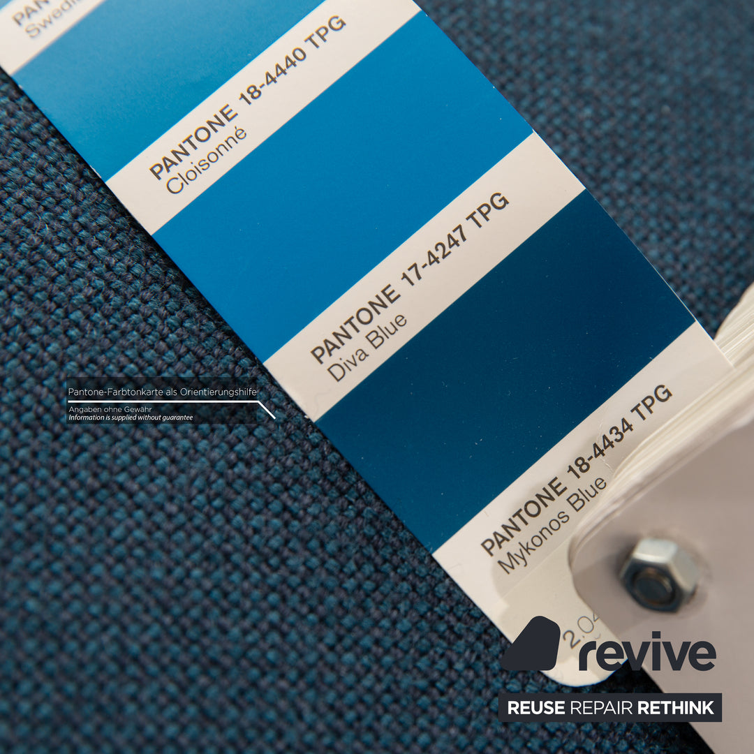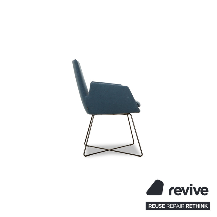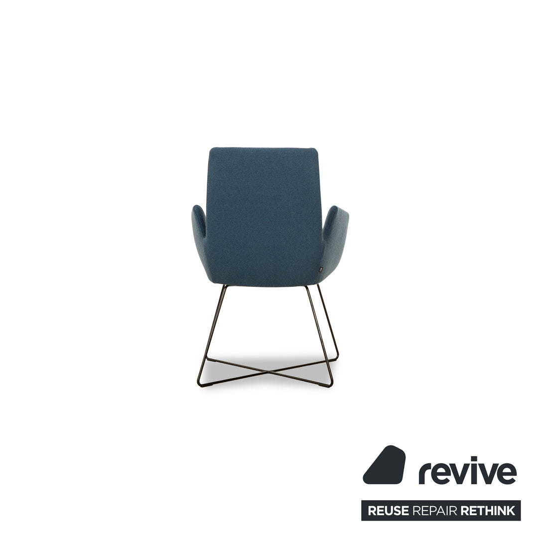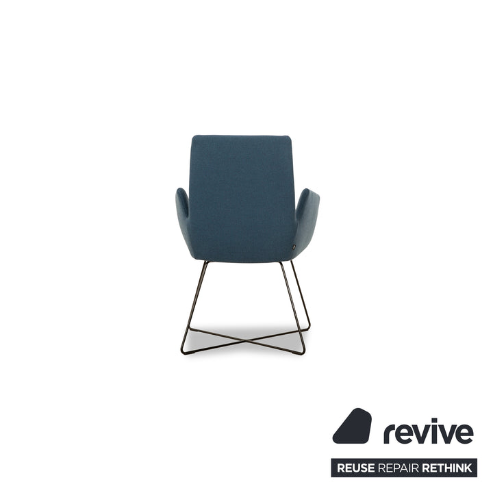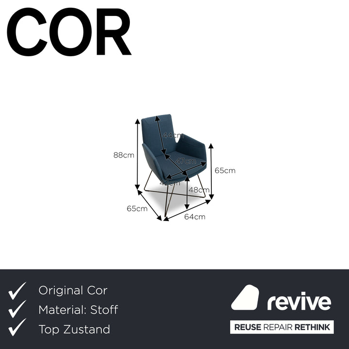 La chaise Ganitur Cordia de Cor est recouverte d'un tissu bleu et repose sur une structure métallique étroite. Il se caractérise par son look moderne et son design élégant et stylé.