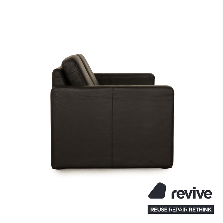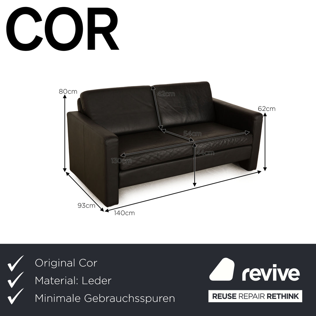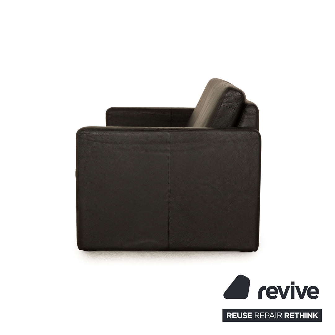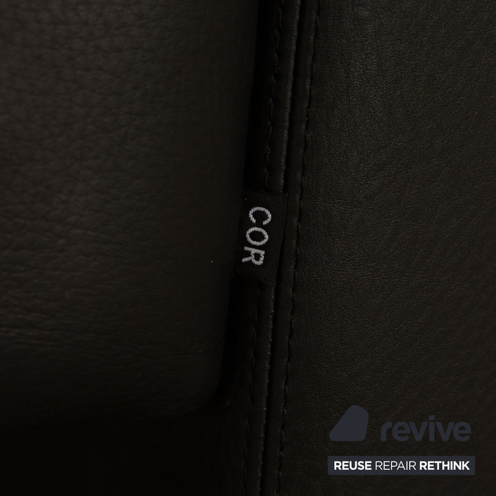 Le canapé Conseta de Cor est recouvert de cuir véritable noir et repose sur des panneaux latéraux allant du sol au plafond. Le design simple et les bords arrondis caractérisent le biplace.