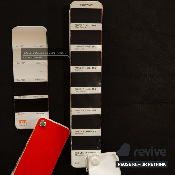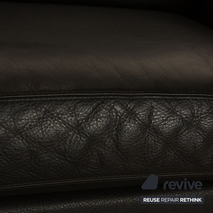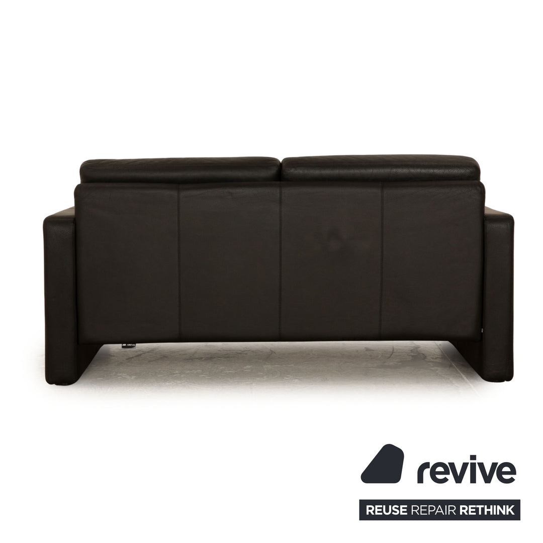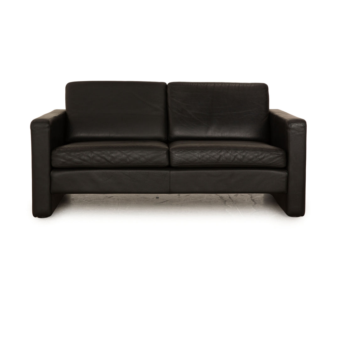 Le canapé Conseta de Cor est recouvert de cuir véritable noir et repose sur des panneaux latéraux allant du sol au plafond. Le design simple et les bords arrondis caractérisent le biplace.