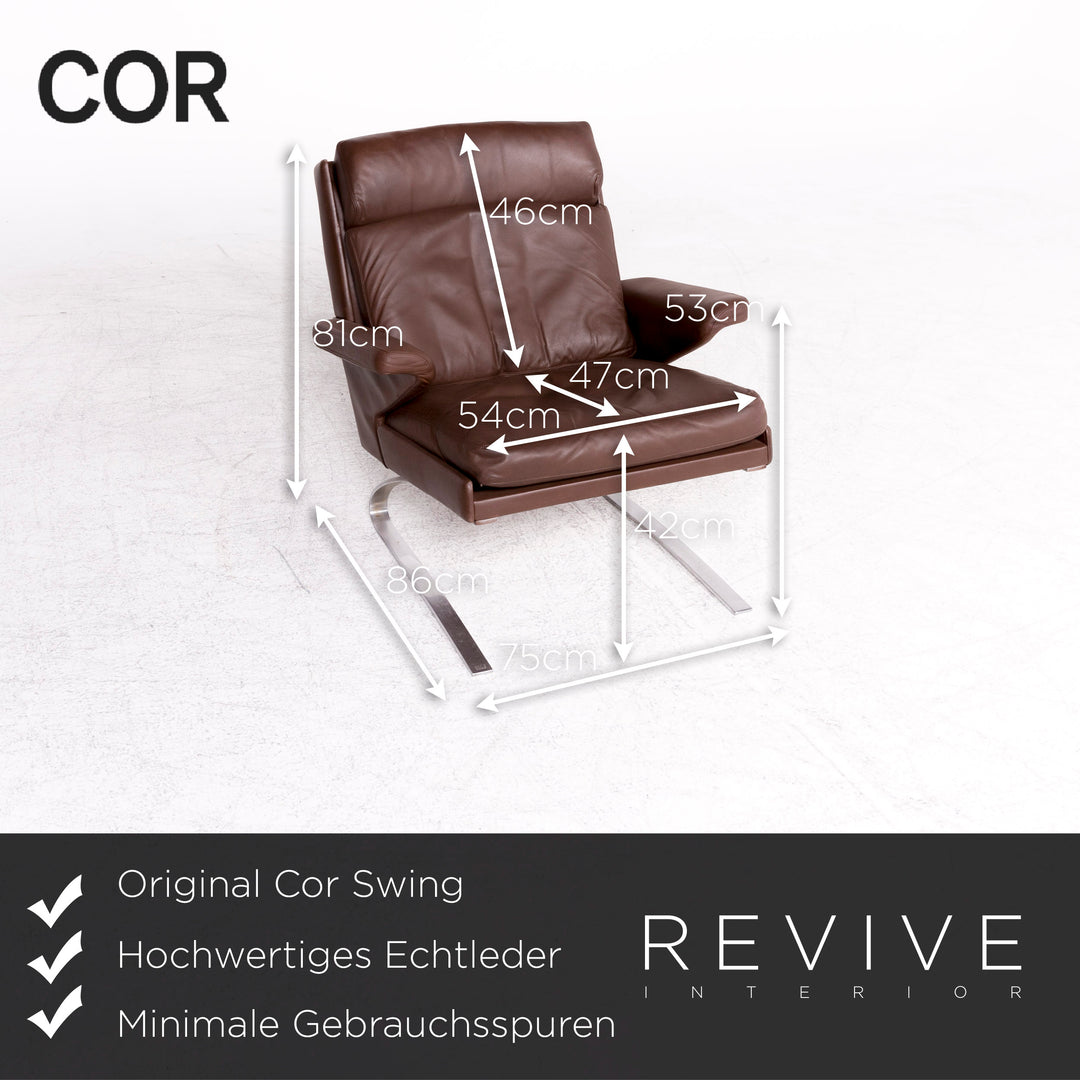Fauteuil en cuir Cor Swing marron par Reinhold Adolf chaise en cuir véritable #8620