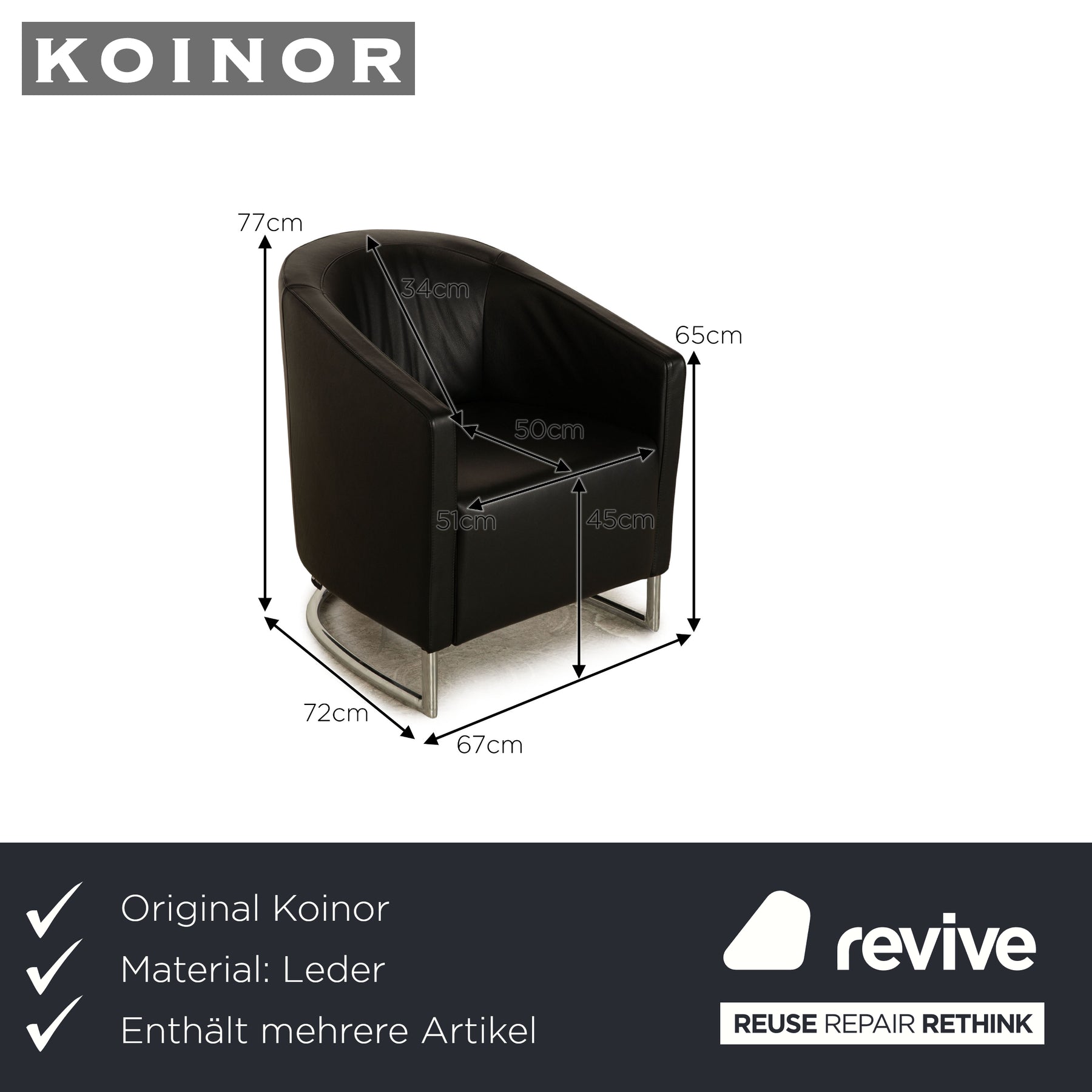 Ensemble de fauteuils en cuir Koinor Junior noir