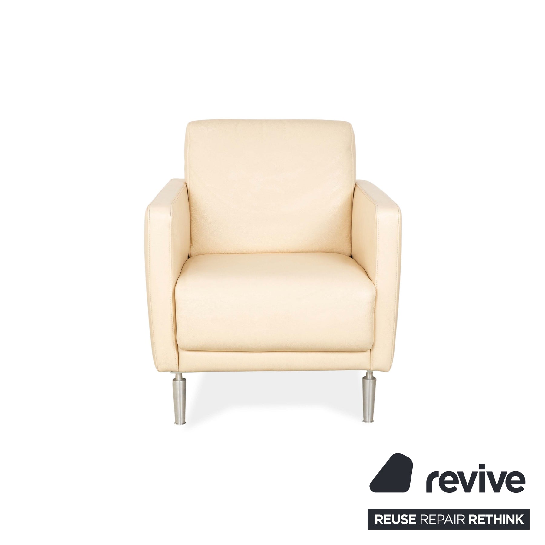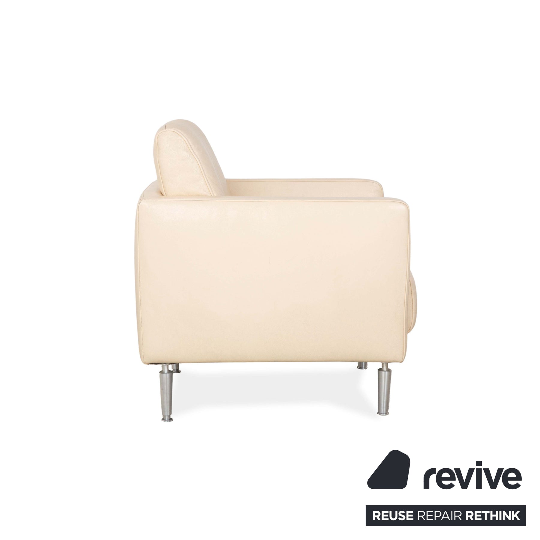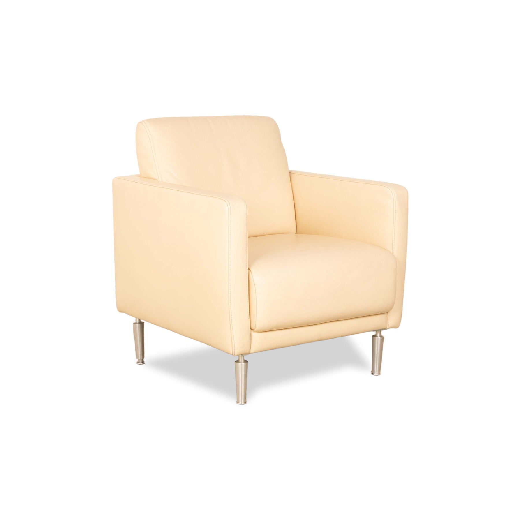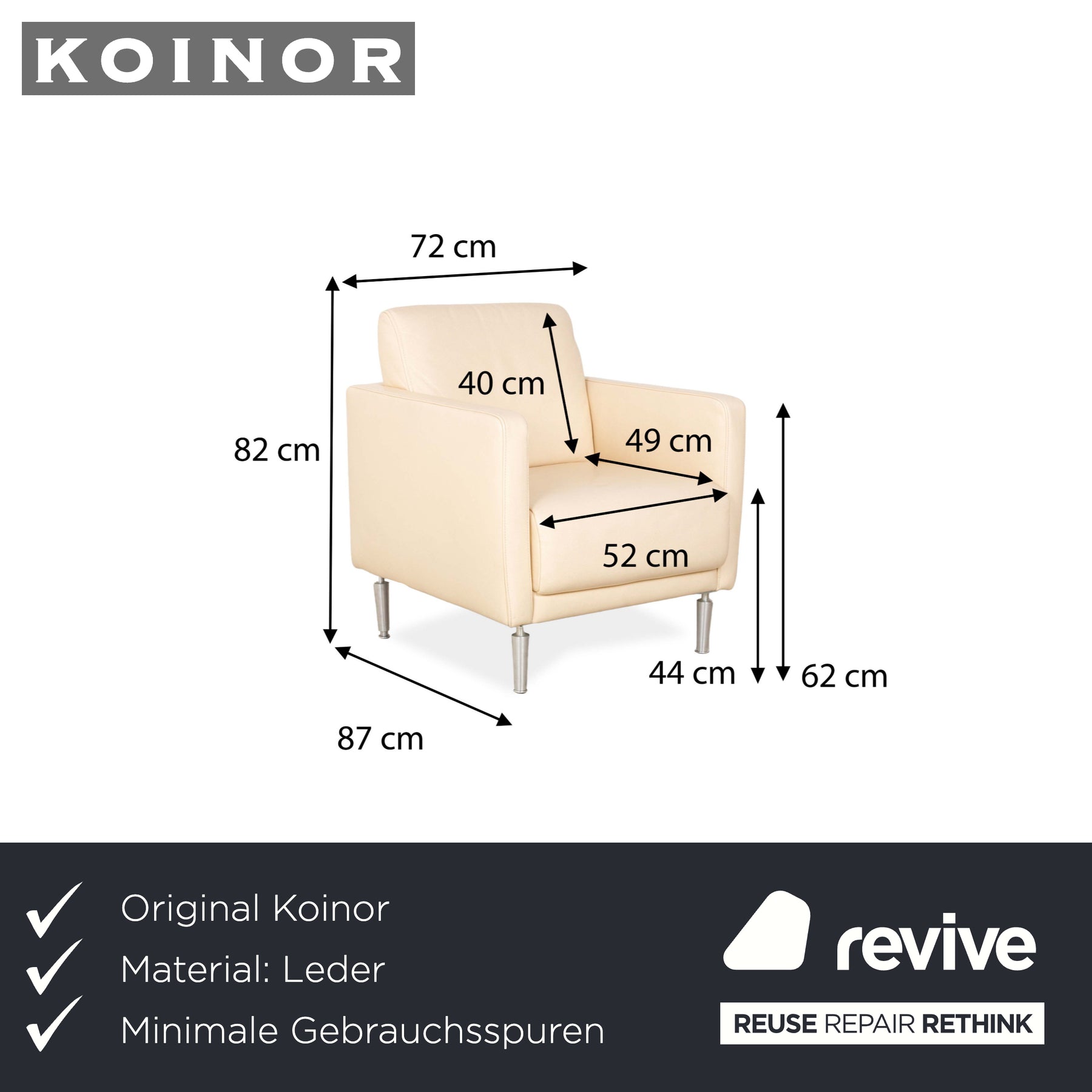 Ce fauteuil Koinor, fabriqué en cuir de haute qualité, est particulièrement élégant grâce à sa teinte crème et son design minimaliste. Il impressionne également par son confort grâce à son généreux coin salon, parfait pour une courte pause.