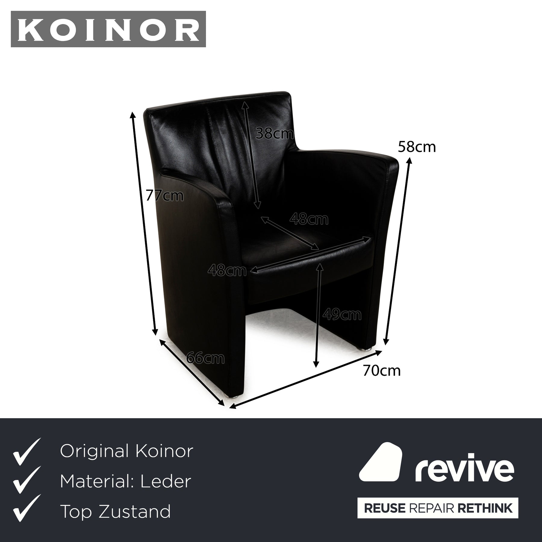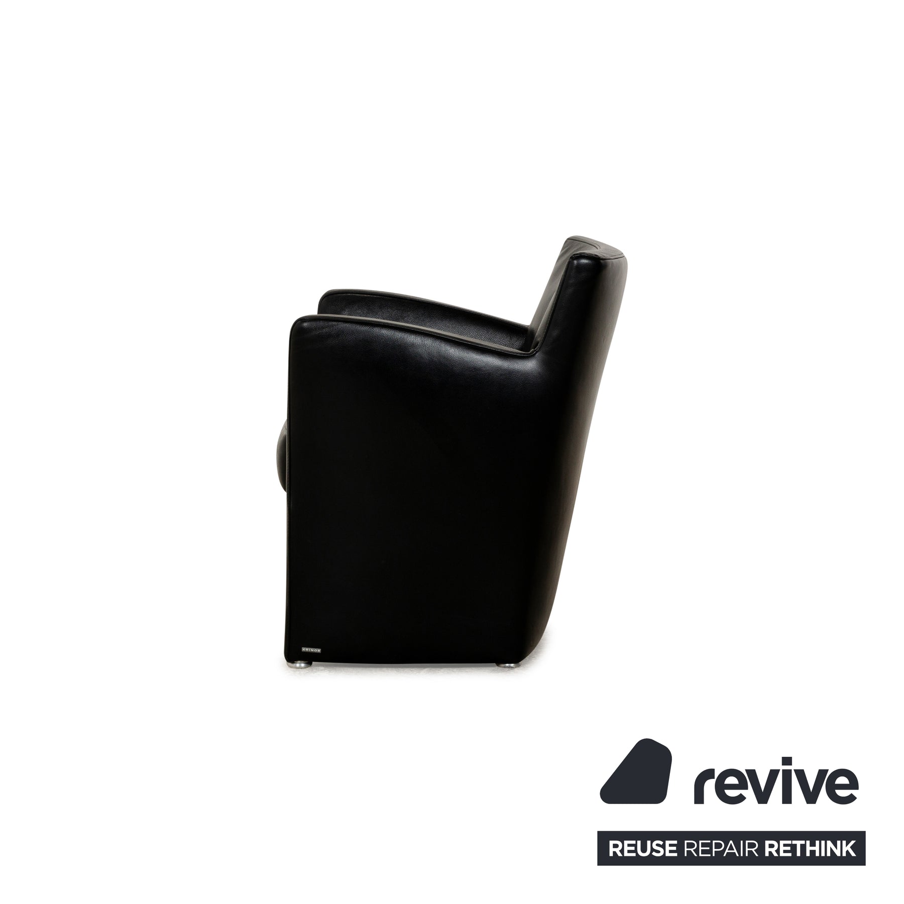 Le fauteuil de Koinor est recouvert de cuir noir et repose sur des côtés au niveau du sol. Il se caractérise par son design classique qui peut être facilement combiné avec d'autres meubles.