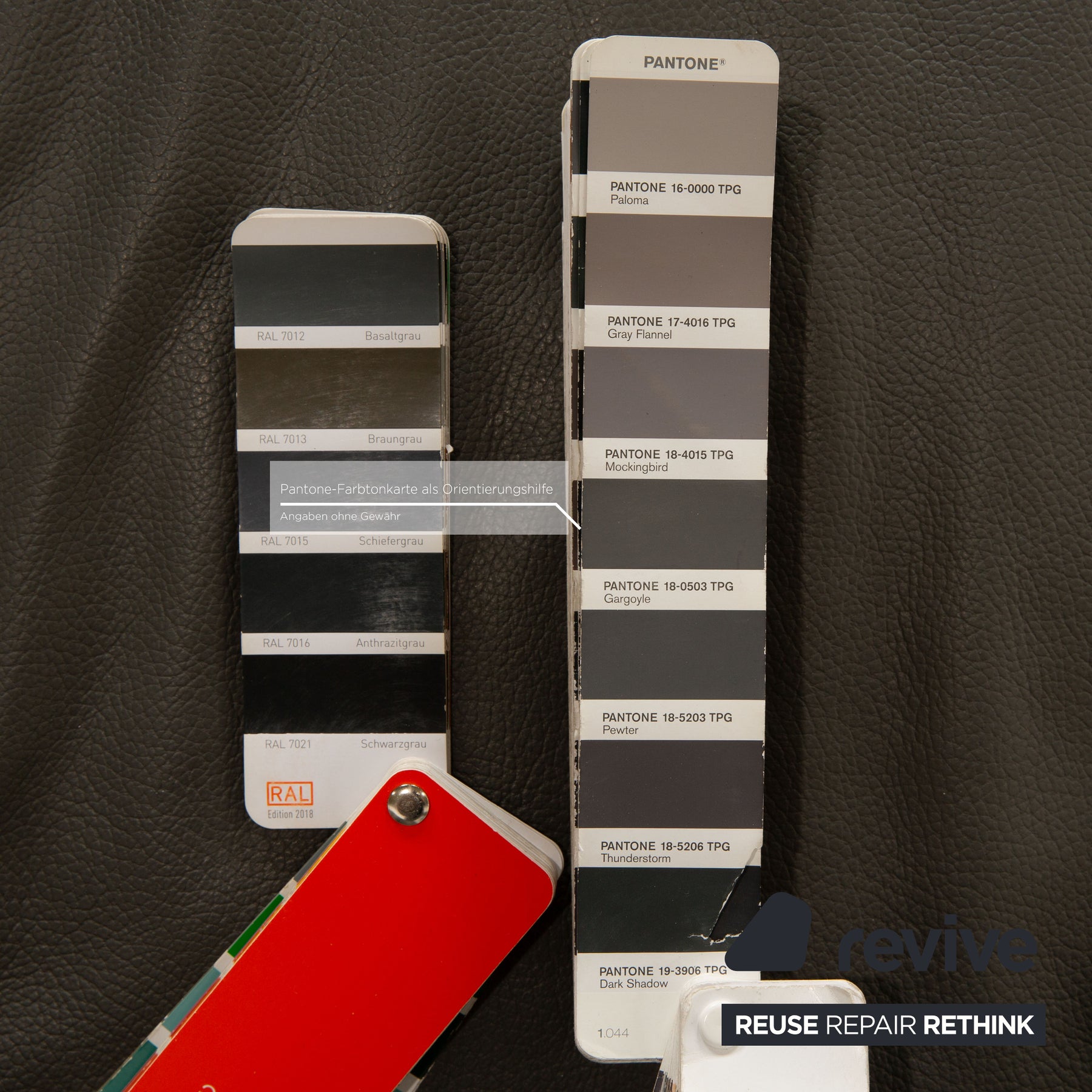 Le canapé Rivo de Koinor est recouvert de cuir véritable gris et repose sur des panneaux latéraux allant du sol au plafond. Le design minimaliste et intemporel caractérise ce biplace.