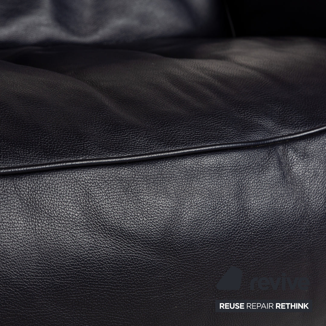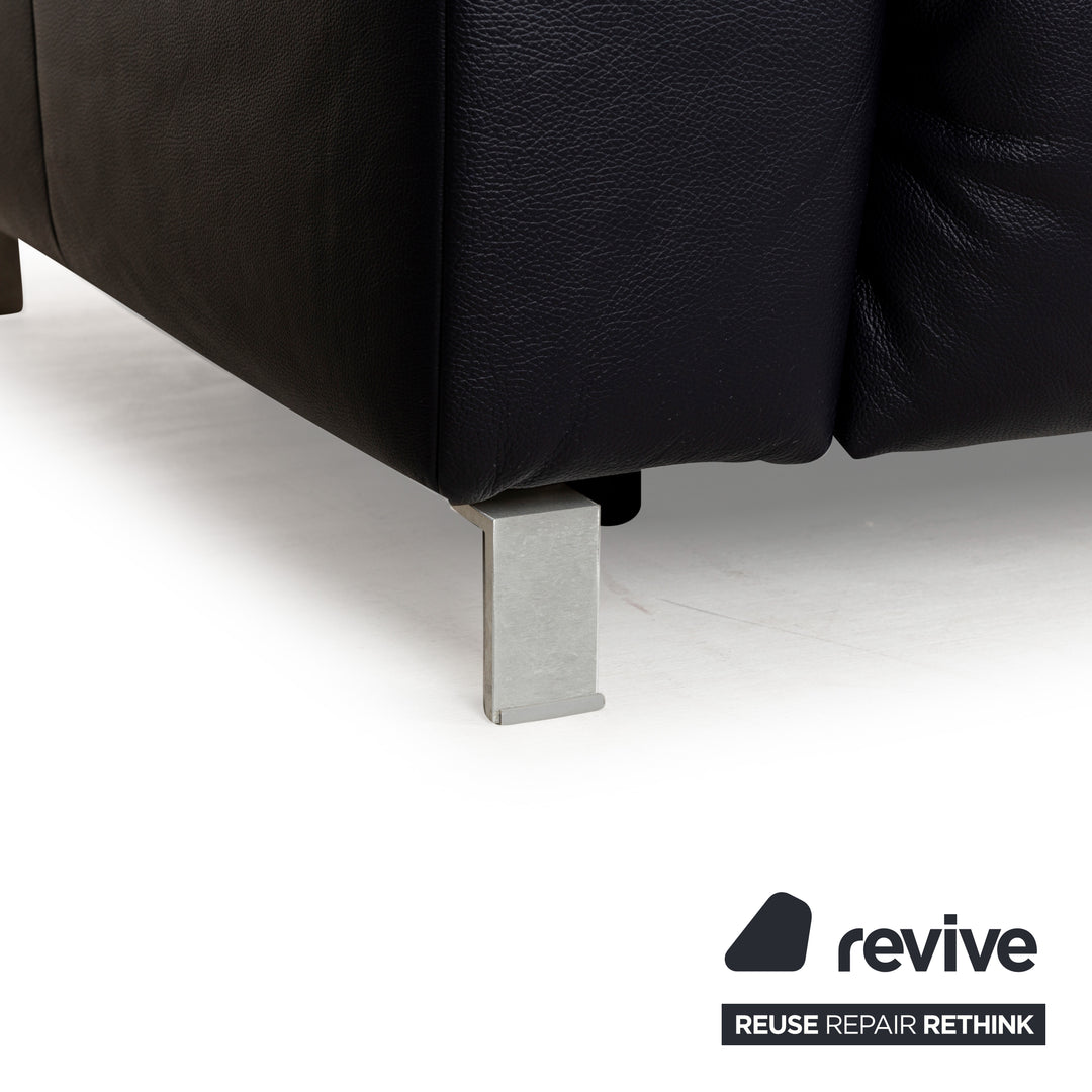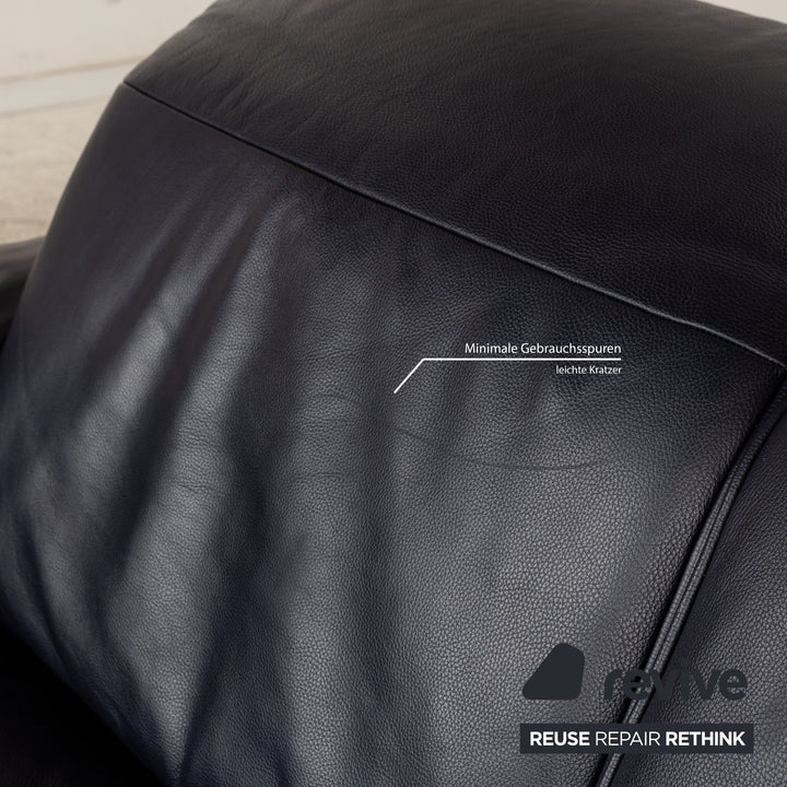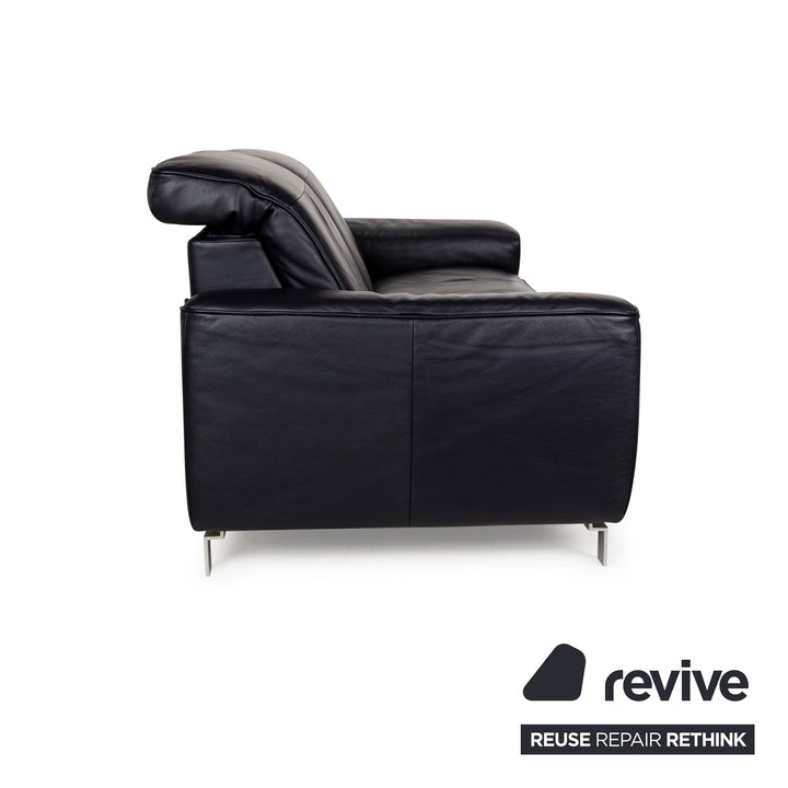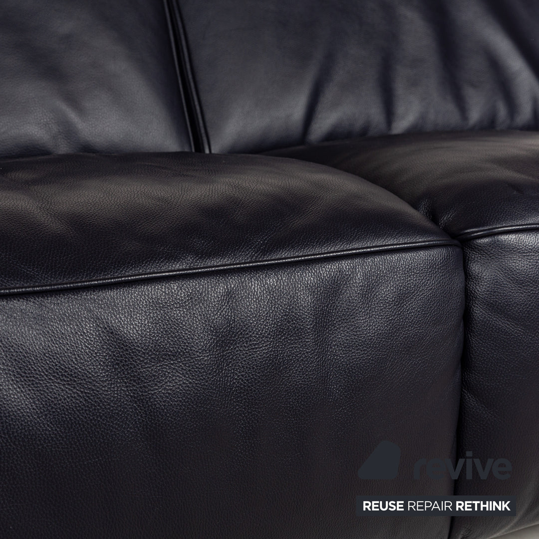 Canapé en cuir Musterring MR 6070 bleu foncé avec fonction électrique, canapé trois places et deux places