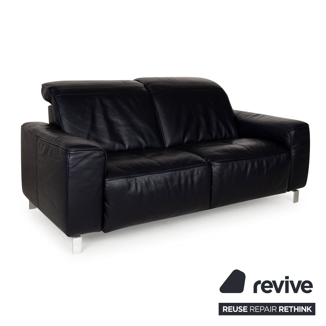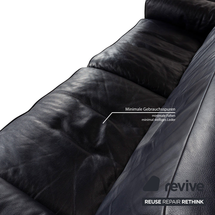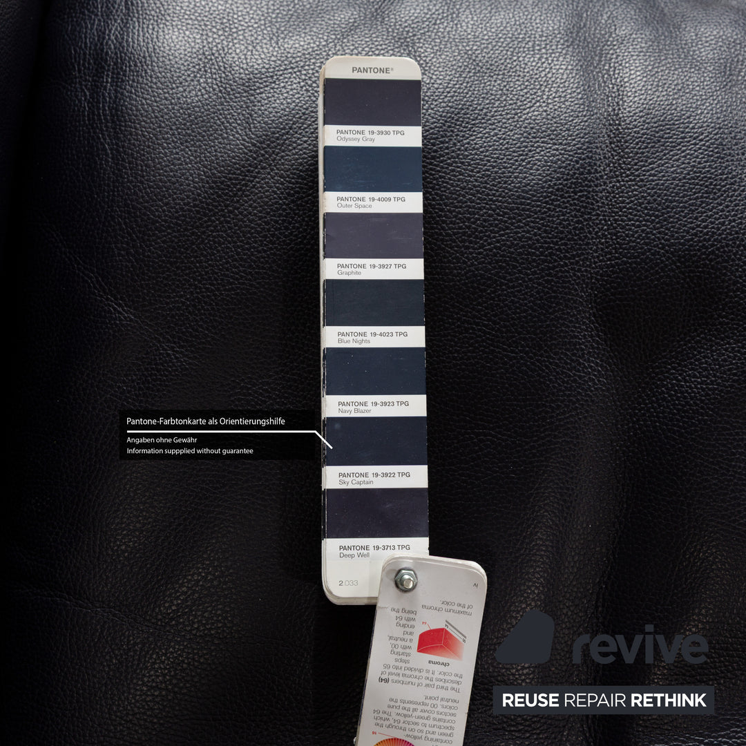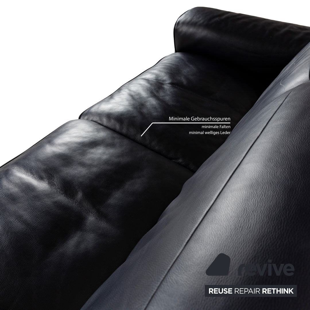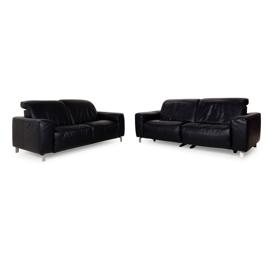 Canapé en cuir Musterring MR 6070 bleu foncé avec fonction électrique, canapé trois places et deux places