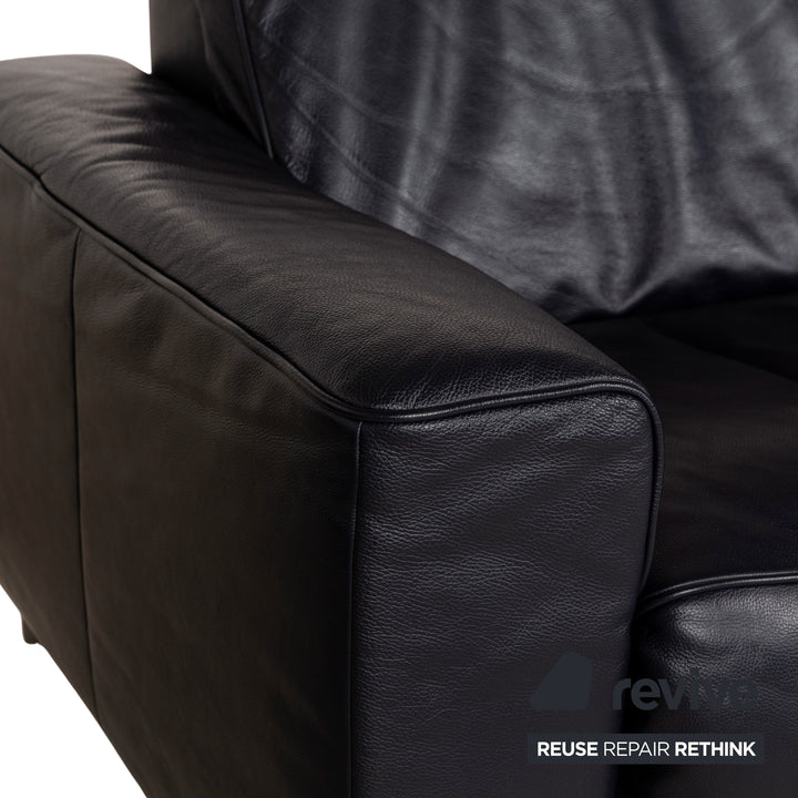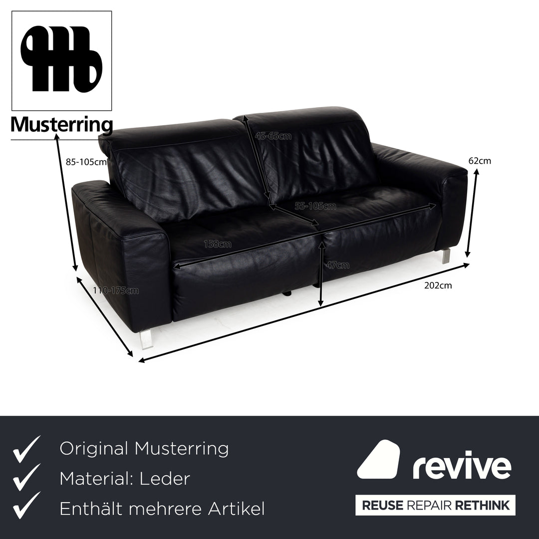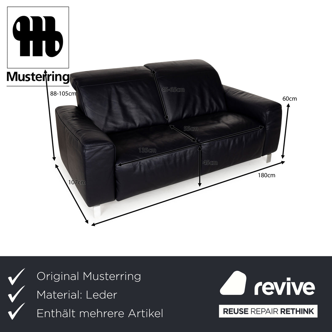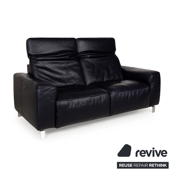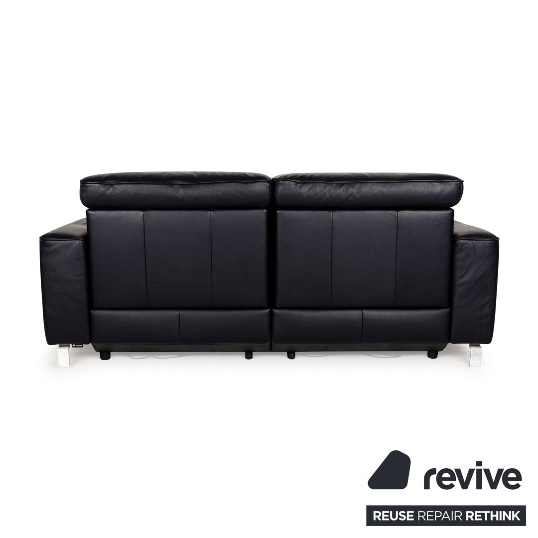 Canapé en cuir Musterring MR 6070 bleu foncé avec fonction électrique, canapé trois places et deux places