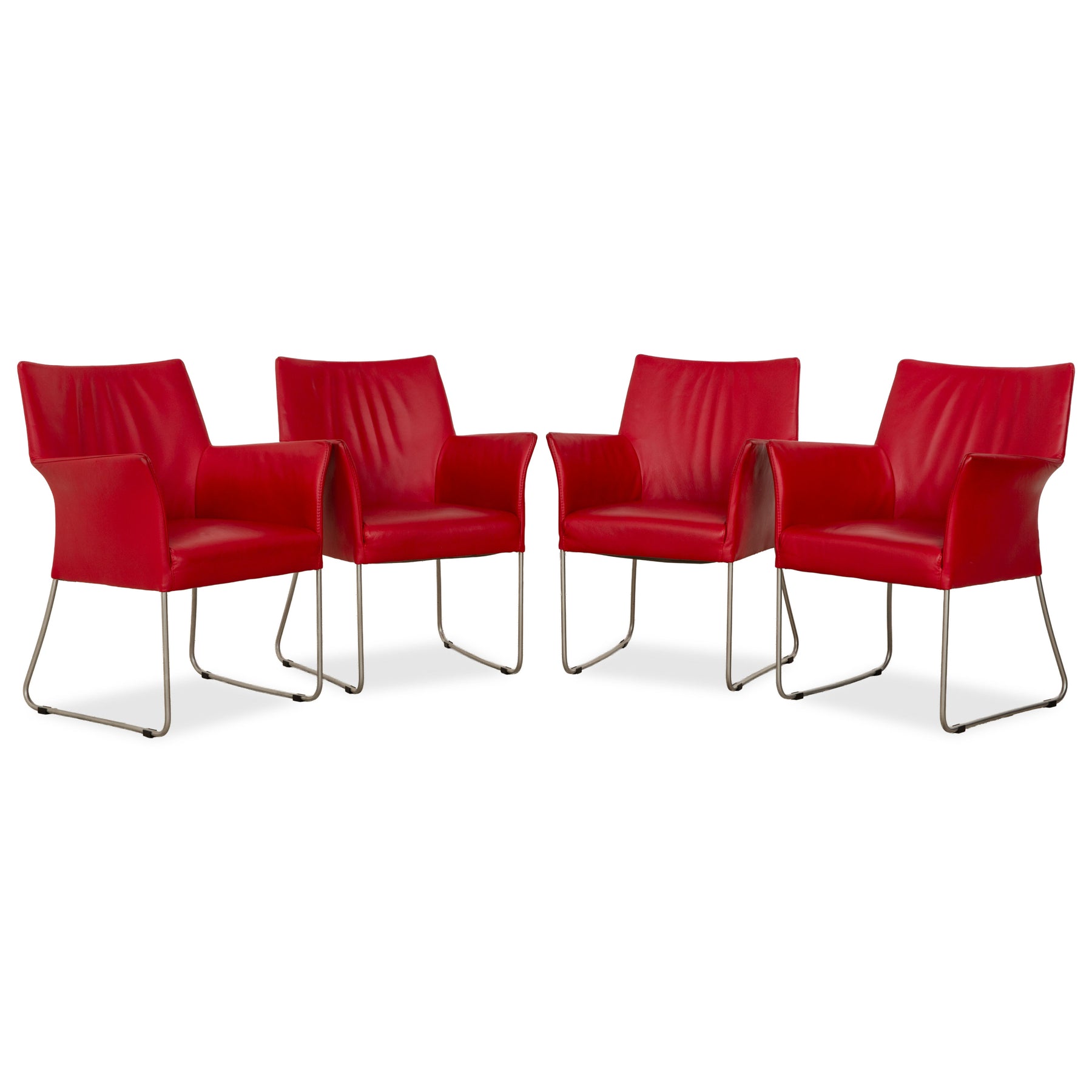 4er Garnitur bert plantagie Leder Stuhl Rot Armlehnstühle