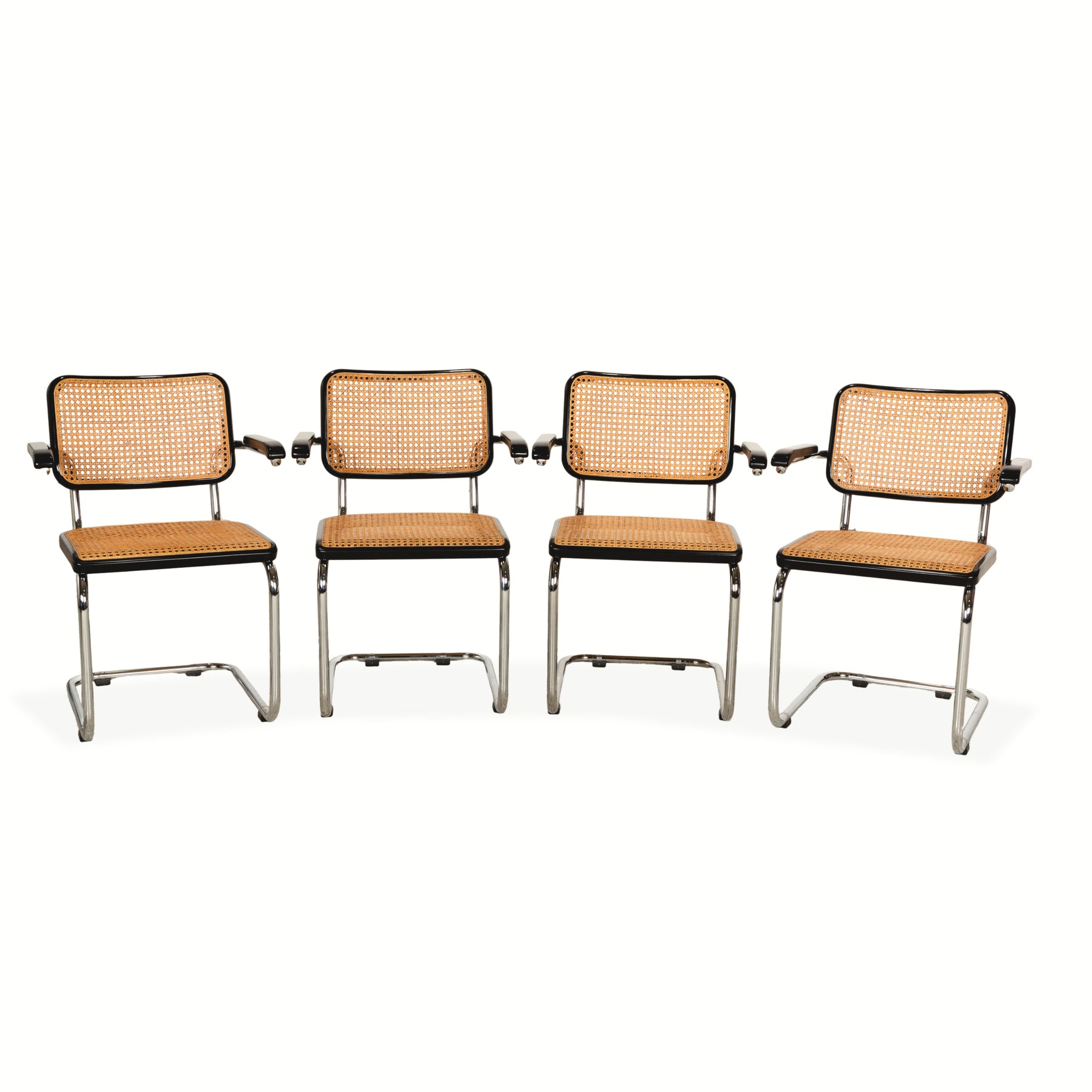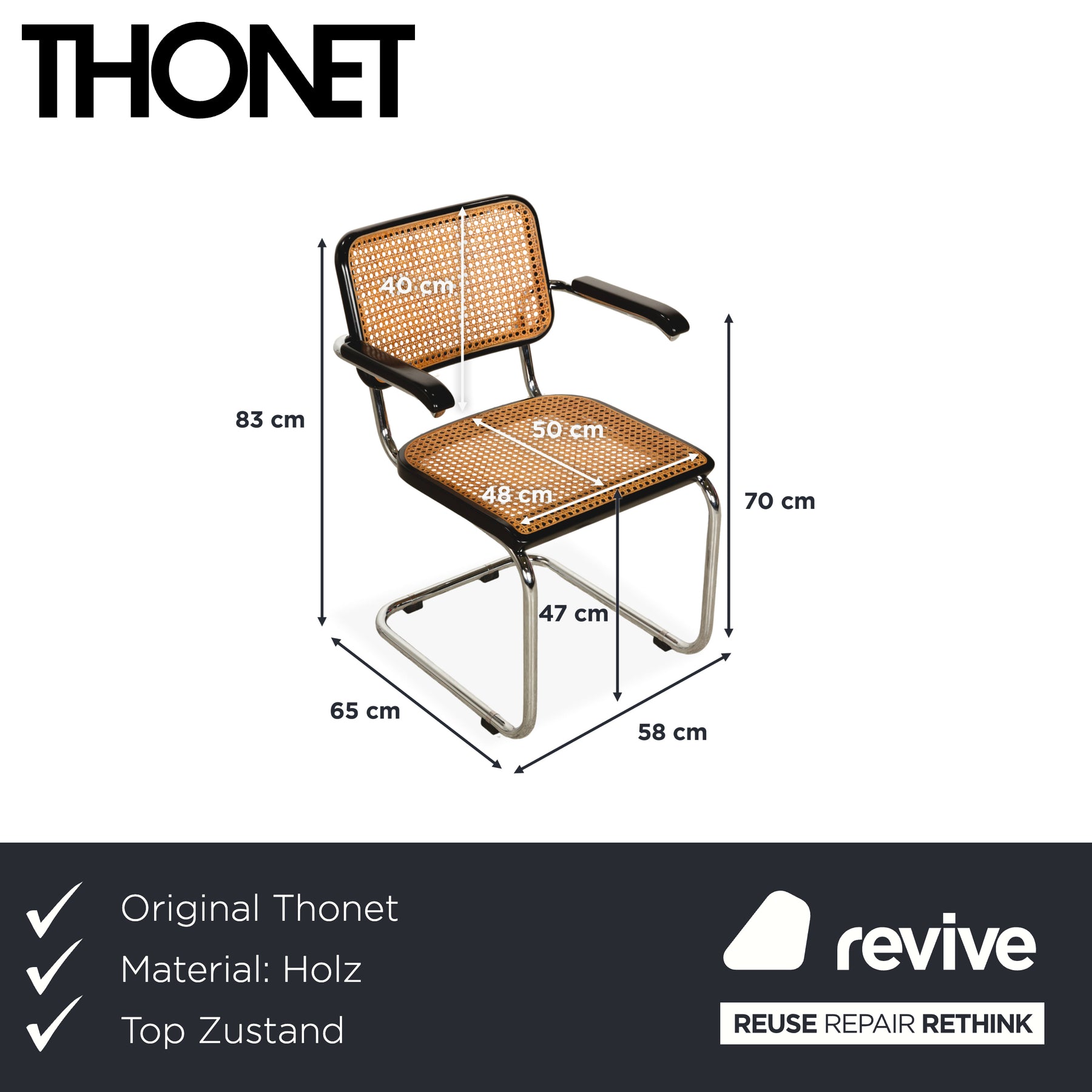 4er Garnitur Thonet S 64 Stuhl Freischwinger Armlehnen Holz Wiener Geflecht Schwarz Braun Bauhaus Esszimmer