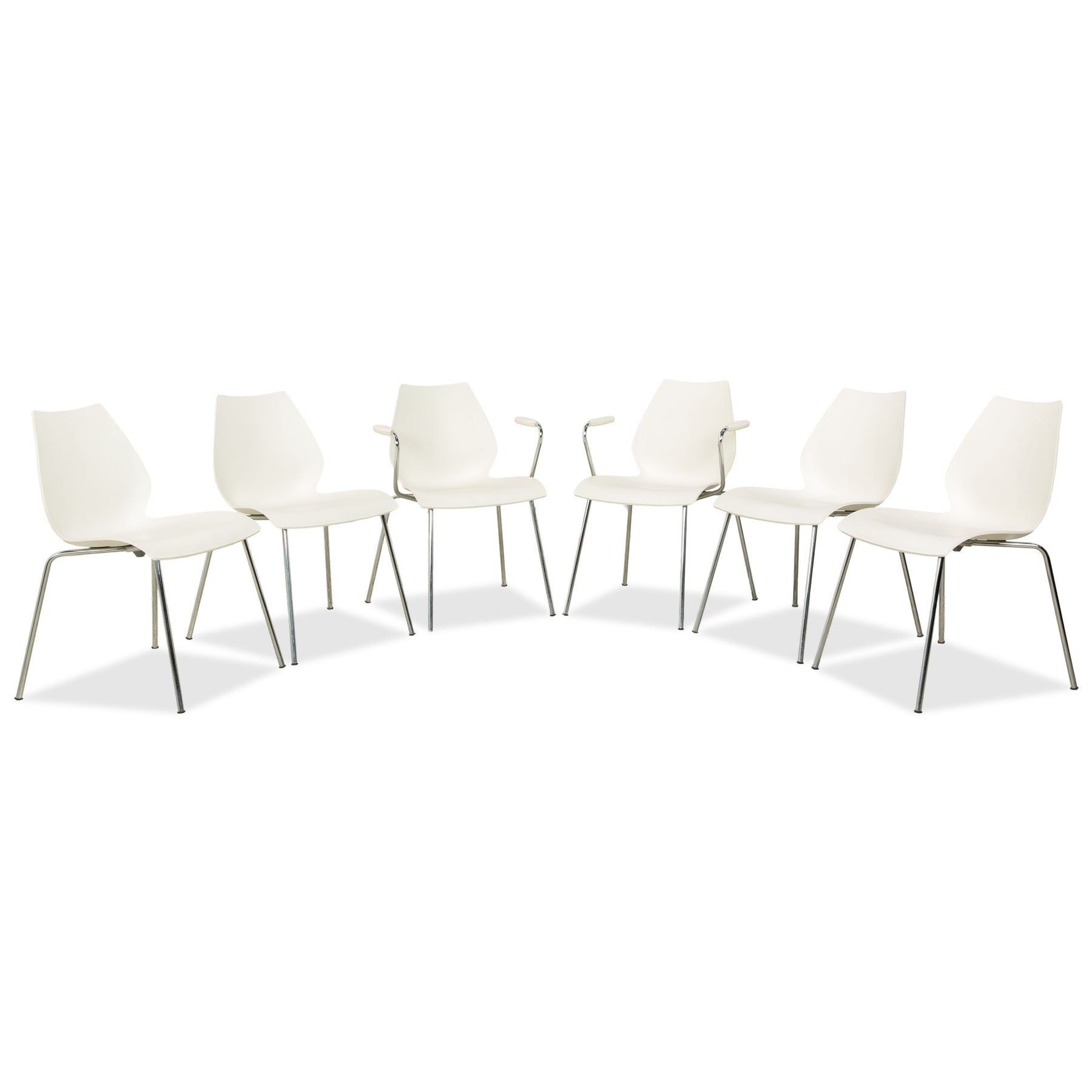 6er Garnitur Kartell Maui Stuhl Kunststoff Weiß Armlehnen