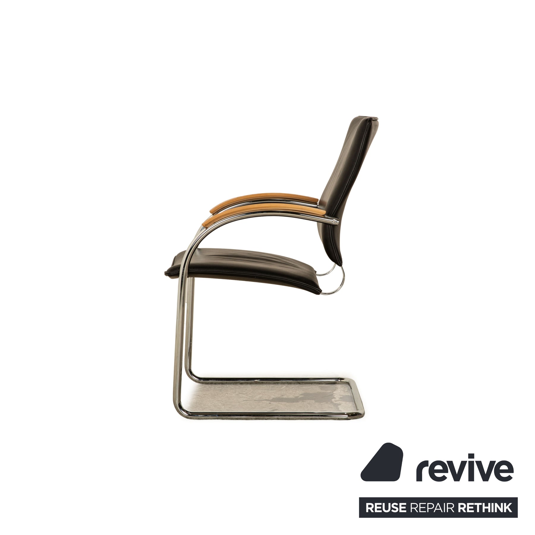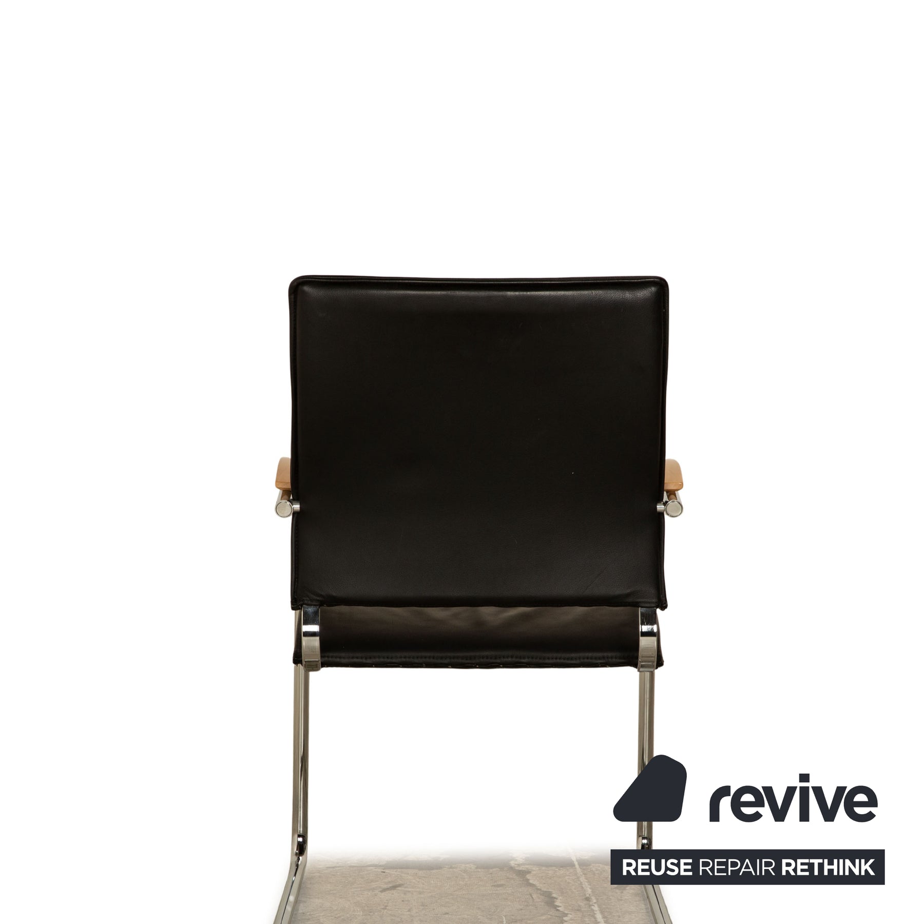 6er Garnitur Thonet S 74 Leder Stuhl Schwarz Vintage Freischwinger
