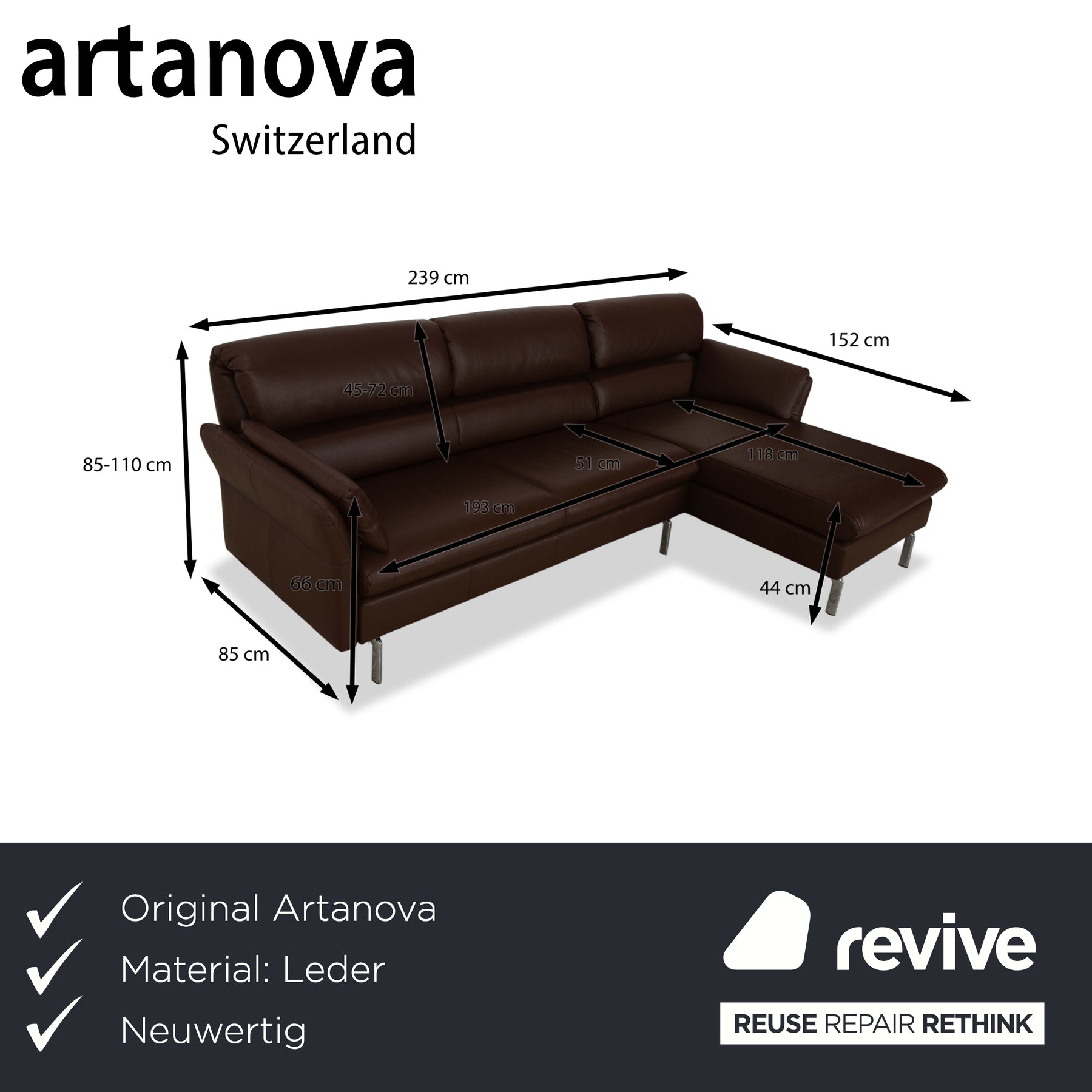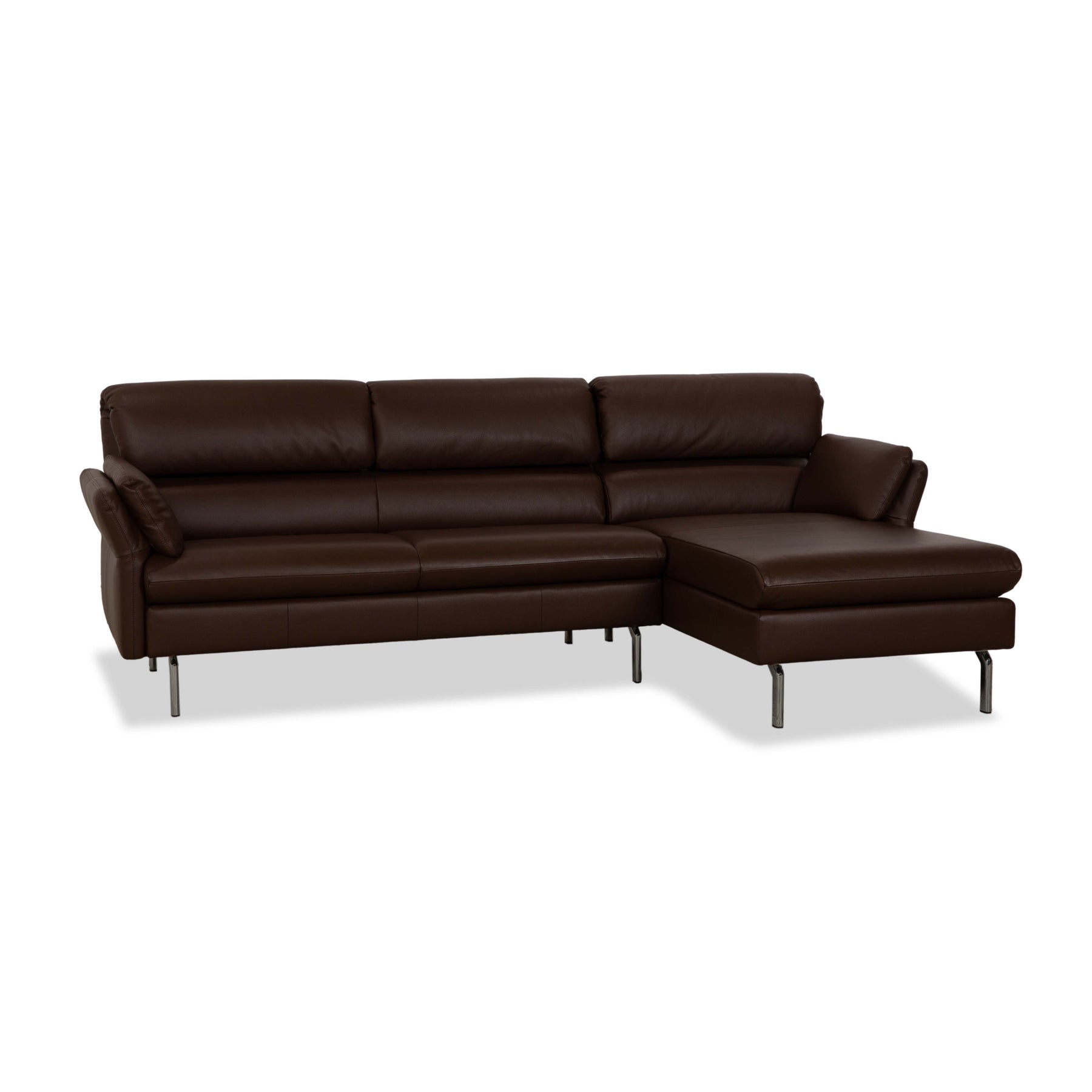 Artanova Avengo Leder Ecksofa Braun Récamiere Rechts Sofa Couch manuelle Funktion