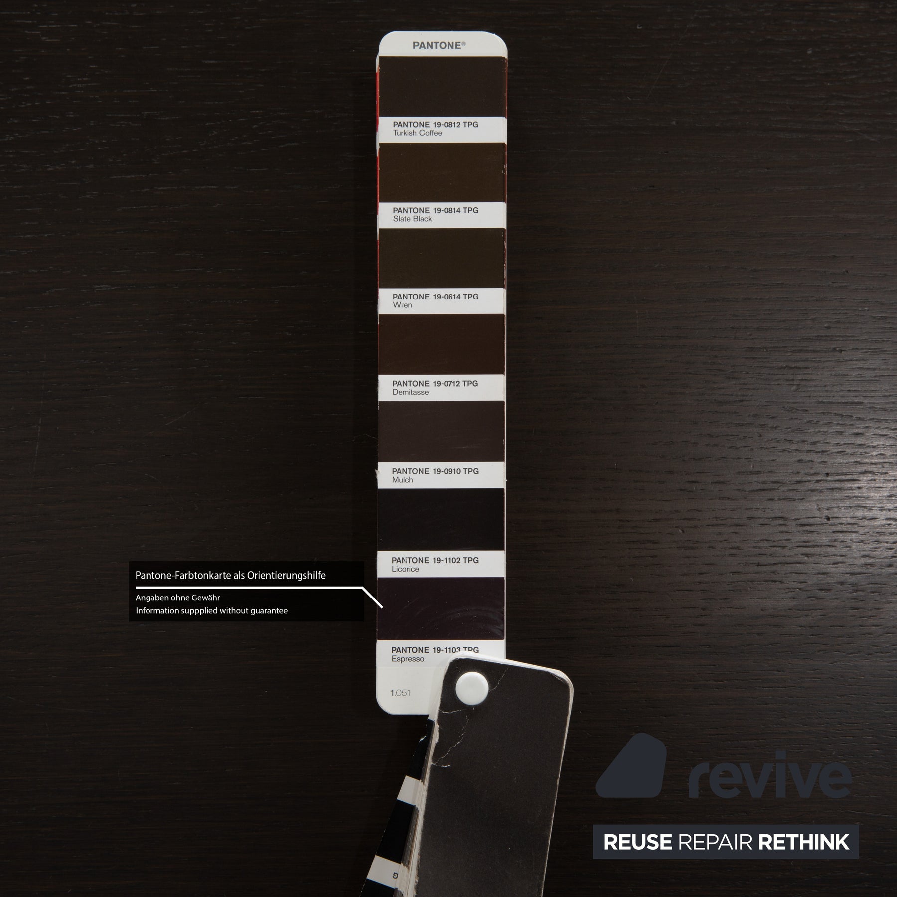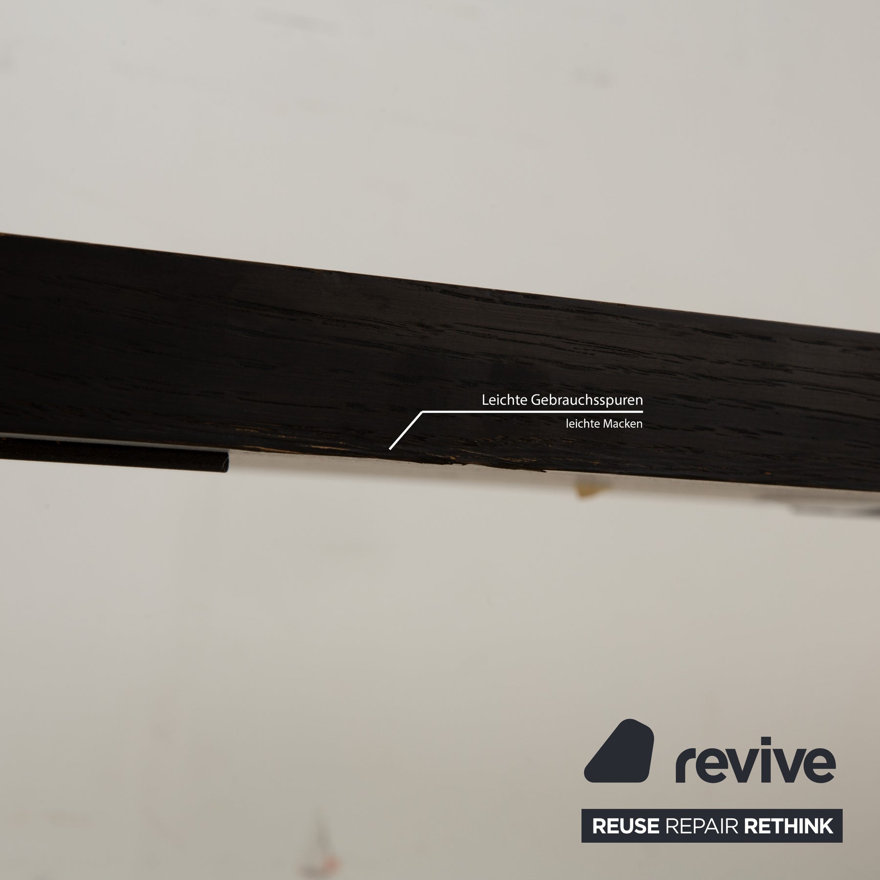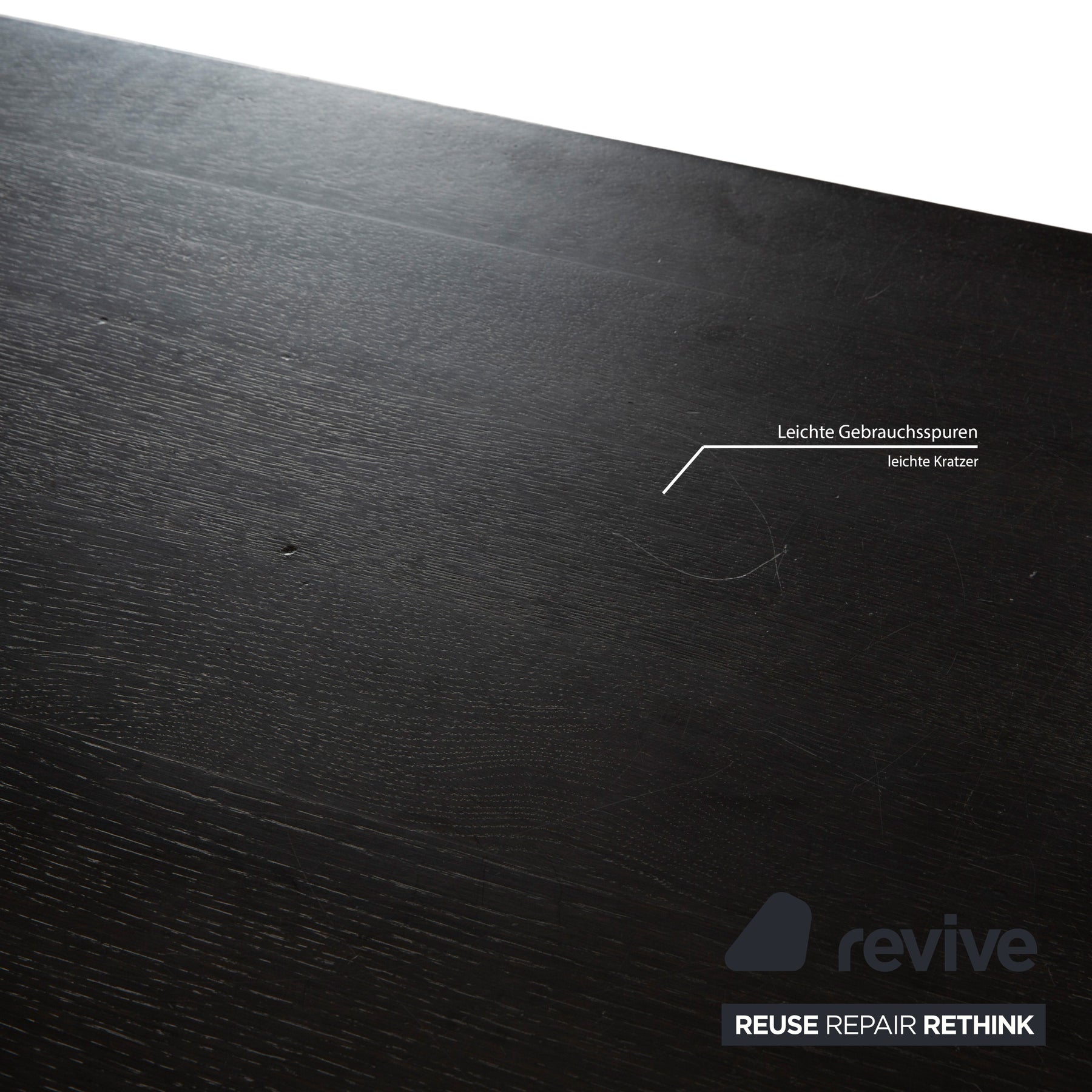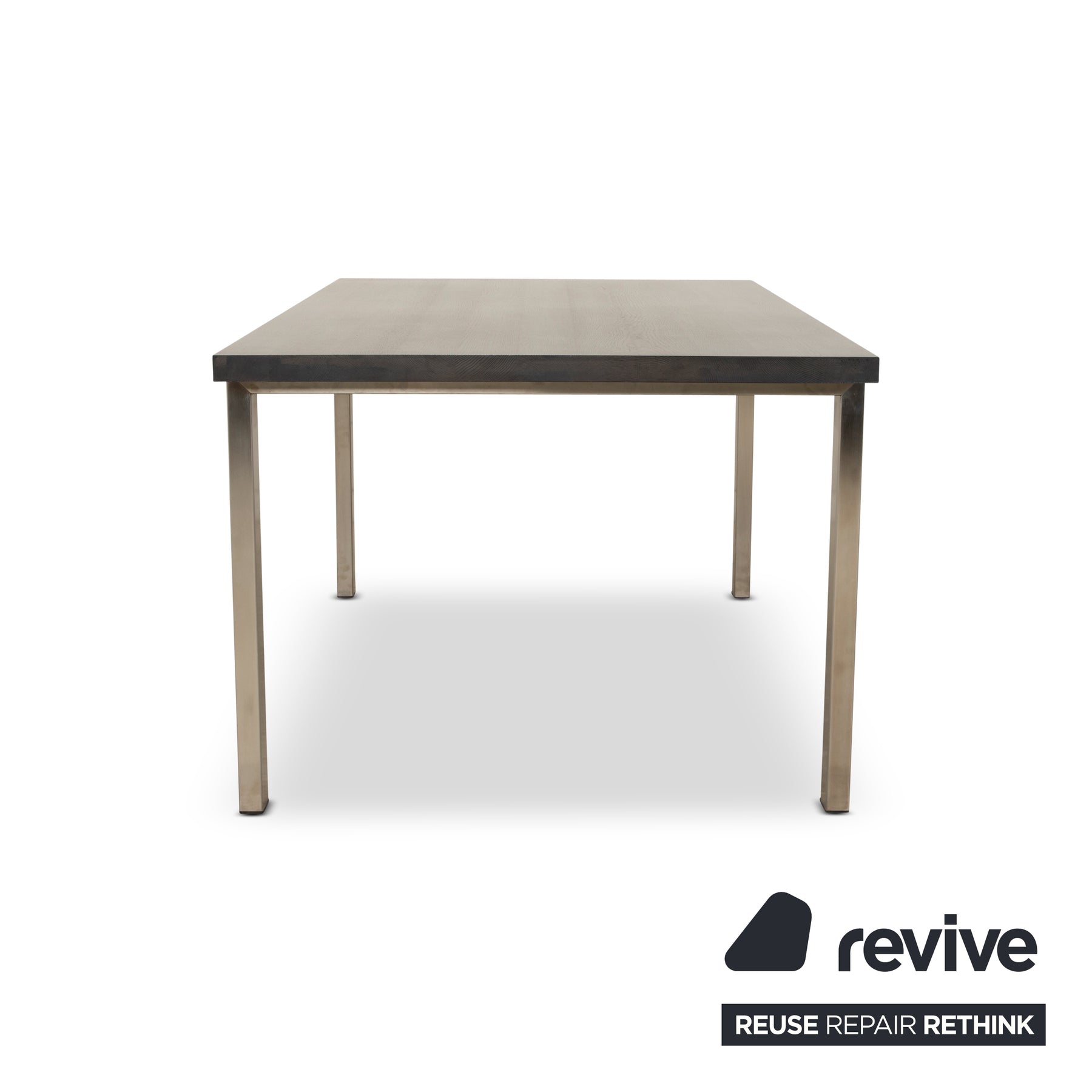 Der Tisch von bert plantagie ist aus einer dunkelbraunen Tischplatte aus Holz sowie zwei u-förmigen Metallgestellen gefertigt. Er zeichnet sich durch sein industrielles, modernes Design aus.