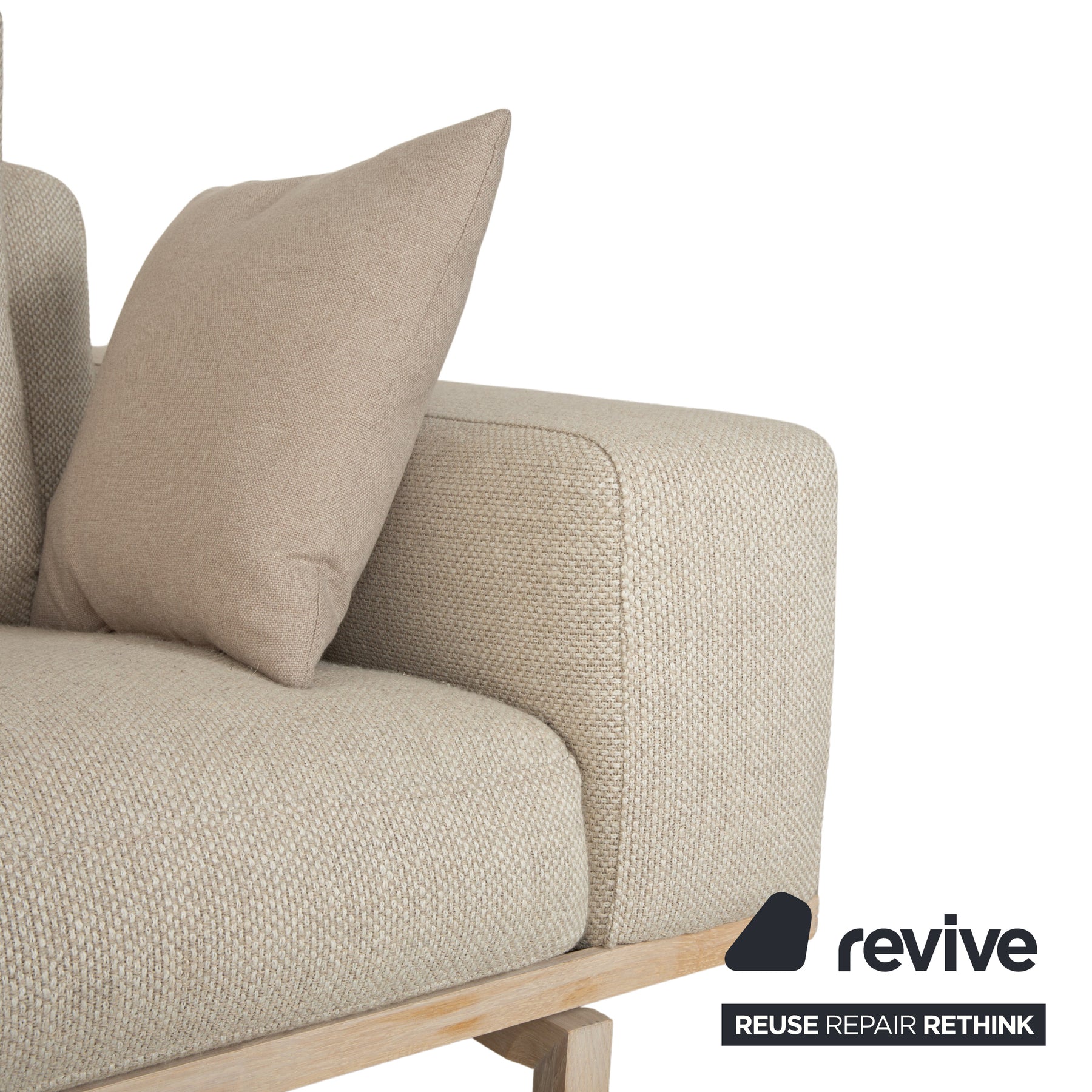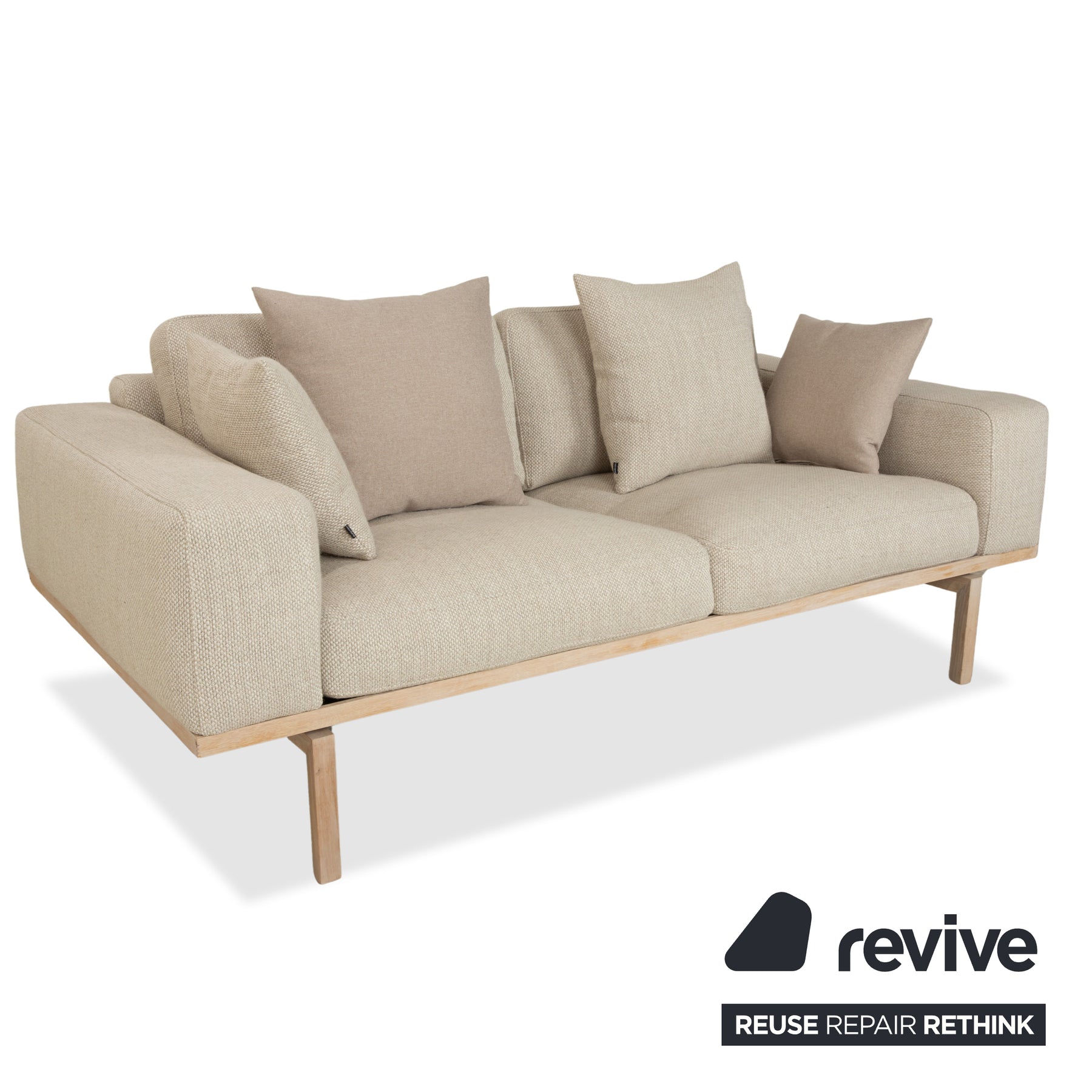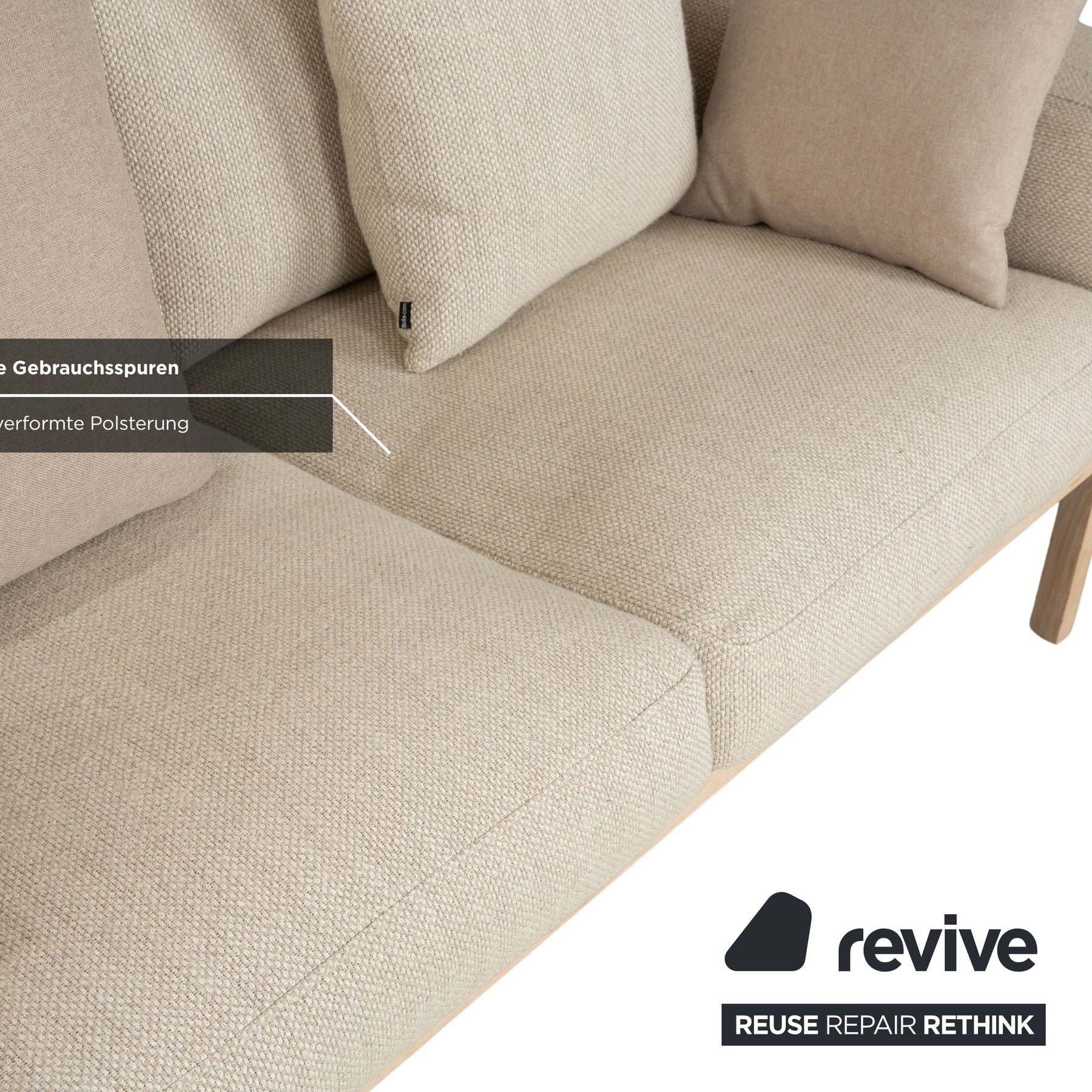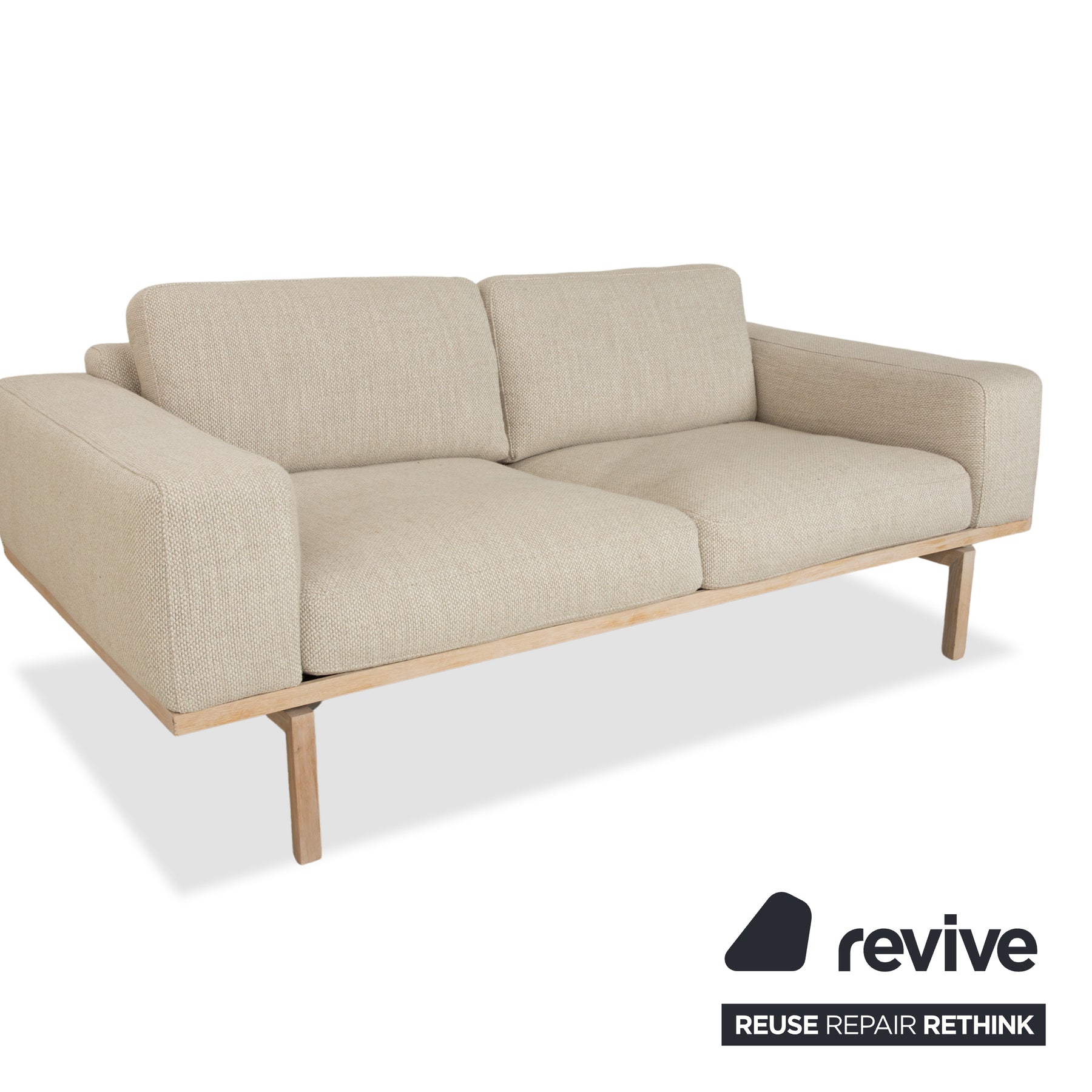 Bolia Elton Stoff Zweisitzer mit Hocker Beige Creme Grau Sofa Couch Holz