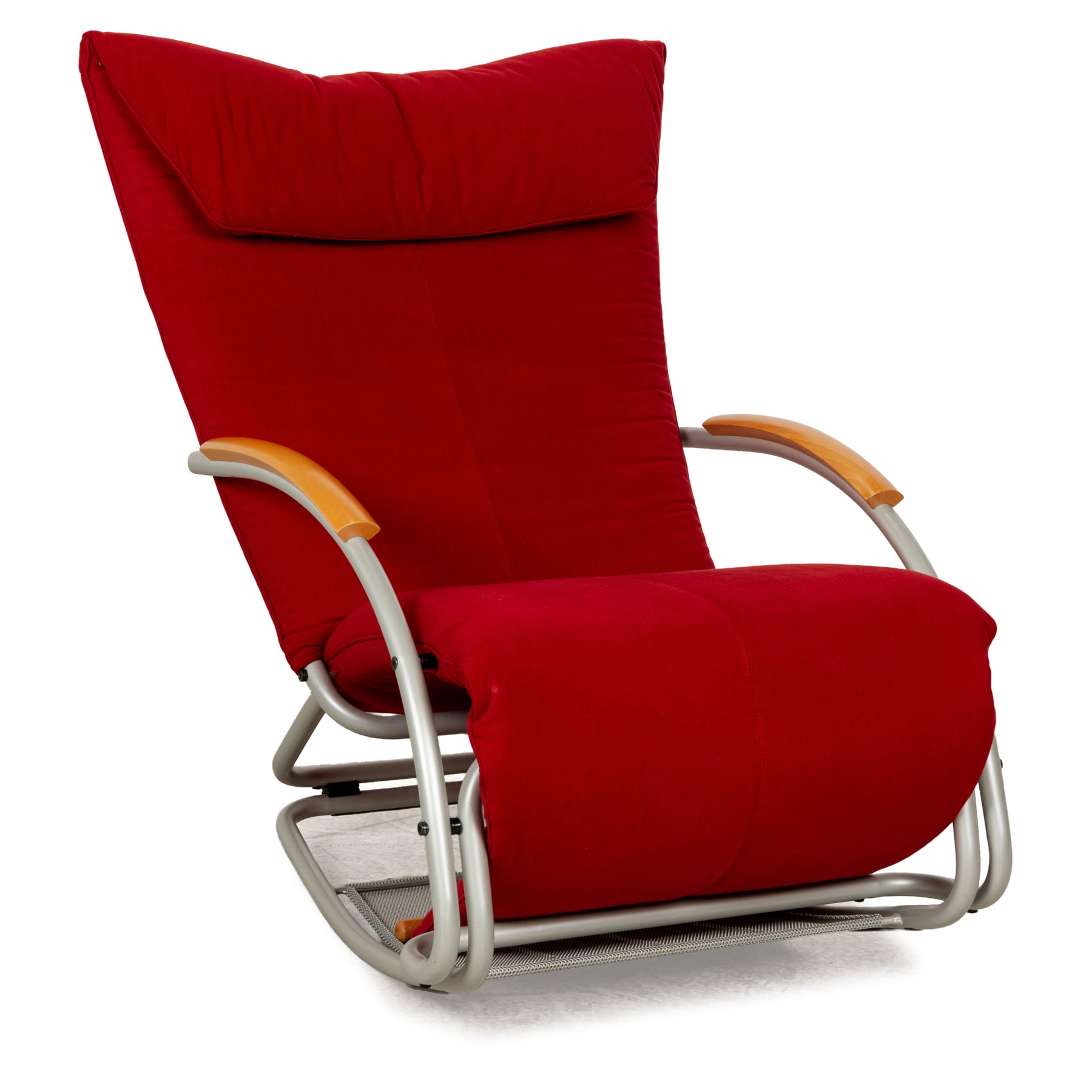 Bonaldo Swing Plus Stoff Sessel Rot manuelle Funktion Relaxfunktion Holzarmlehnen