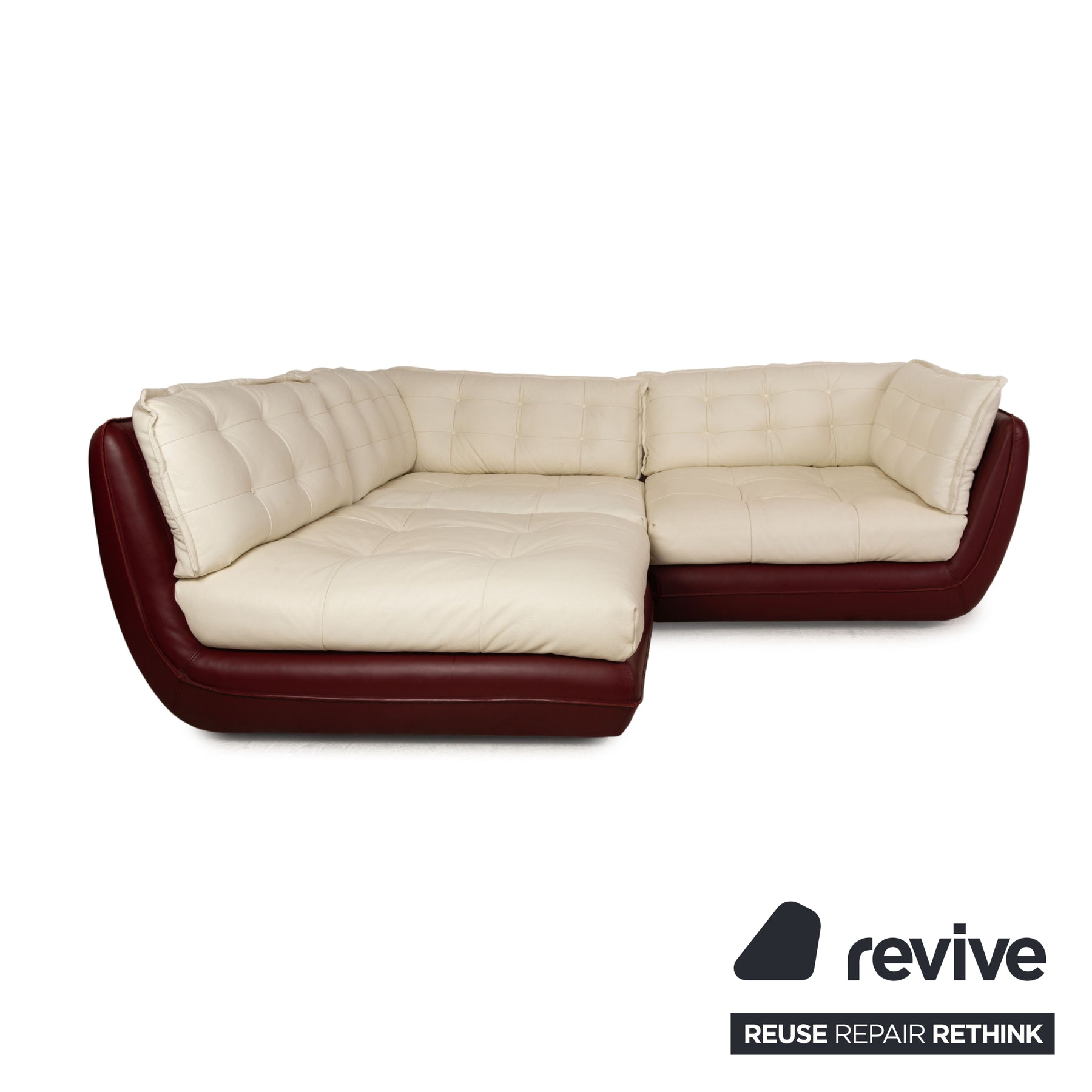 Bretz Cupcake Leder Ecksofa Creme Rot Sofa Couch Recamiere Links Bordeaux Dunkelrot