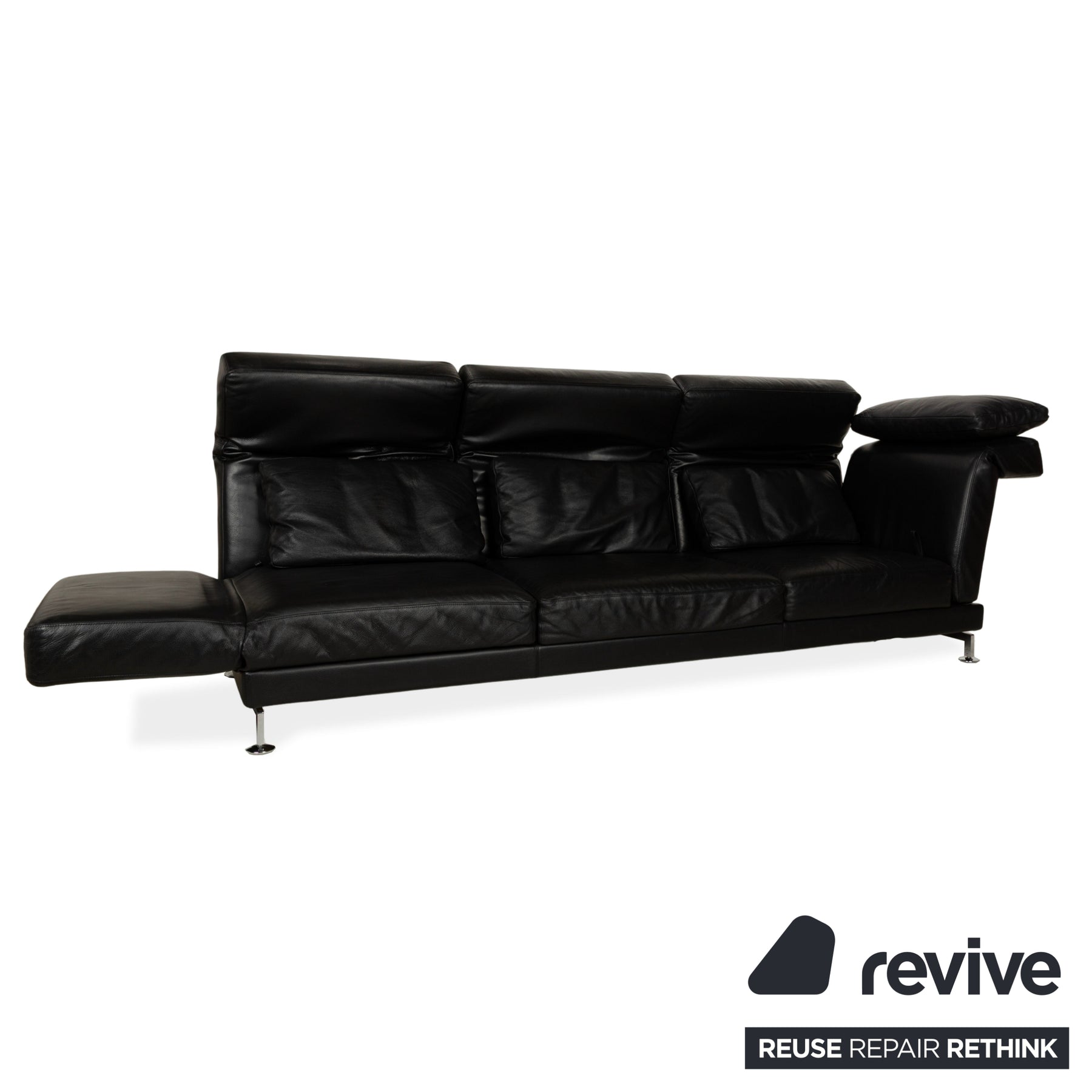 Brühl Moule Leder Dreisitzer Schwarz Sofa Couch mit Sessel manuelle Funktion