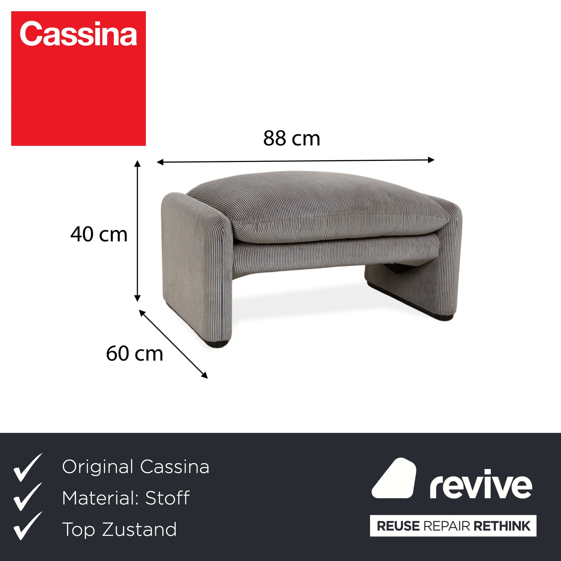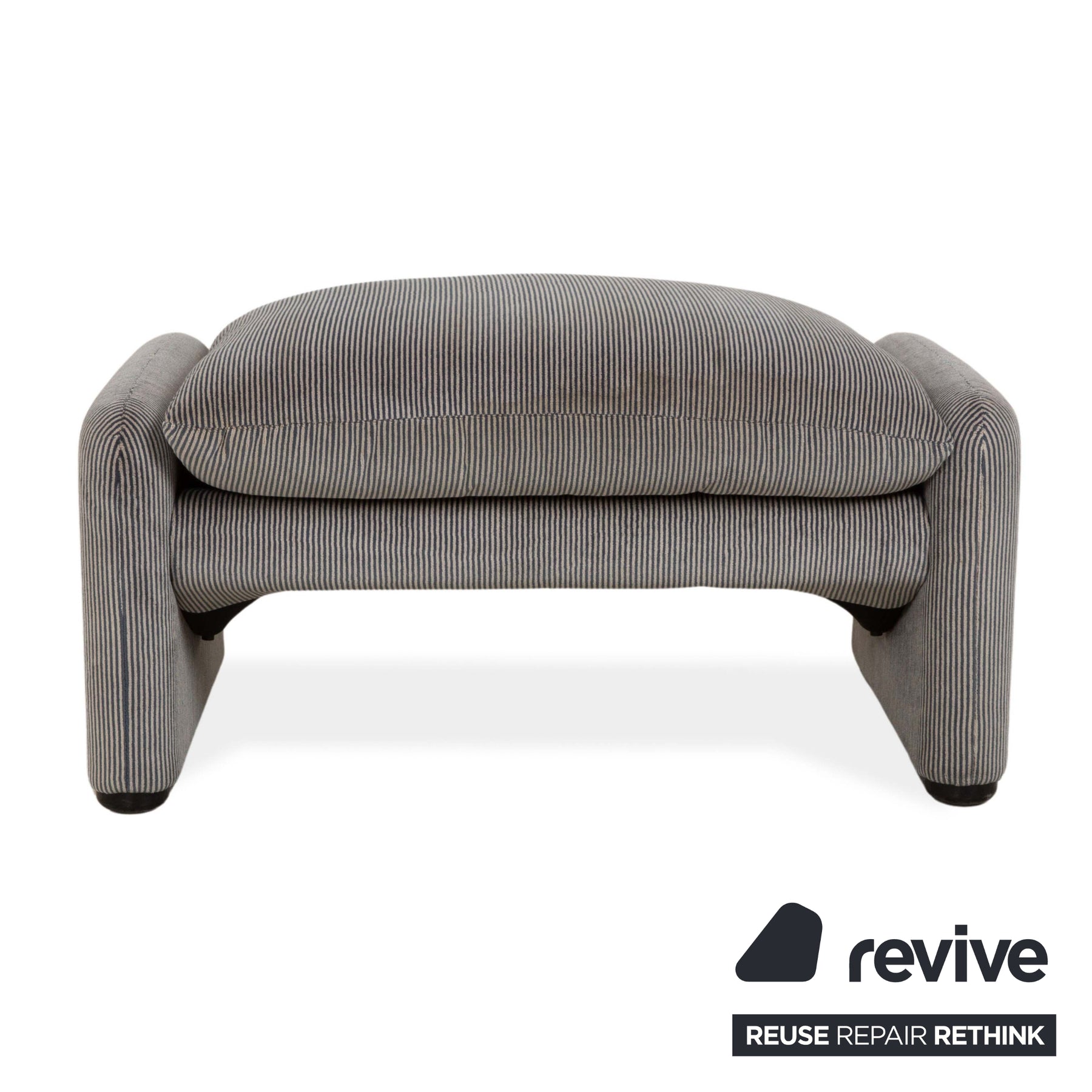Dieser stilvolle Cassina Maralunga Hocker überzeugt mit seinem weichen, gestreiften Stoffbezug in elegantem Grau. Als Zusatz zu den passenden Sofas bietet er maximalen Komfort und fügt sich perfekt in deine Wohnung ein.