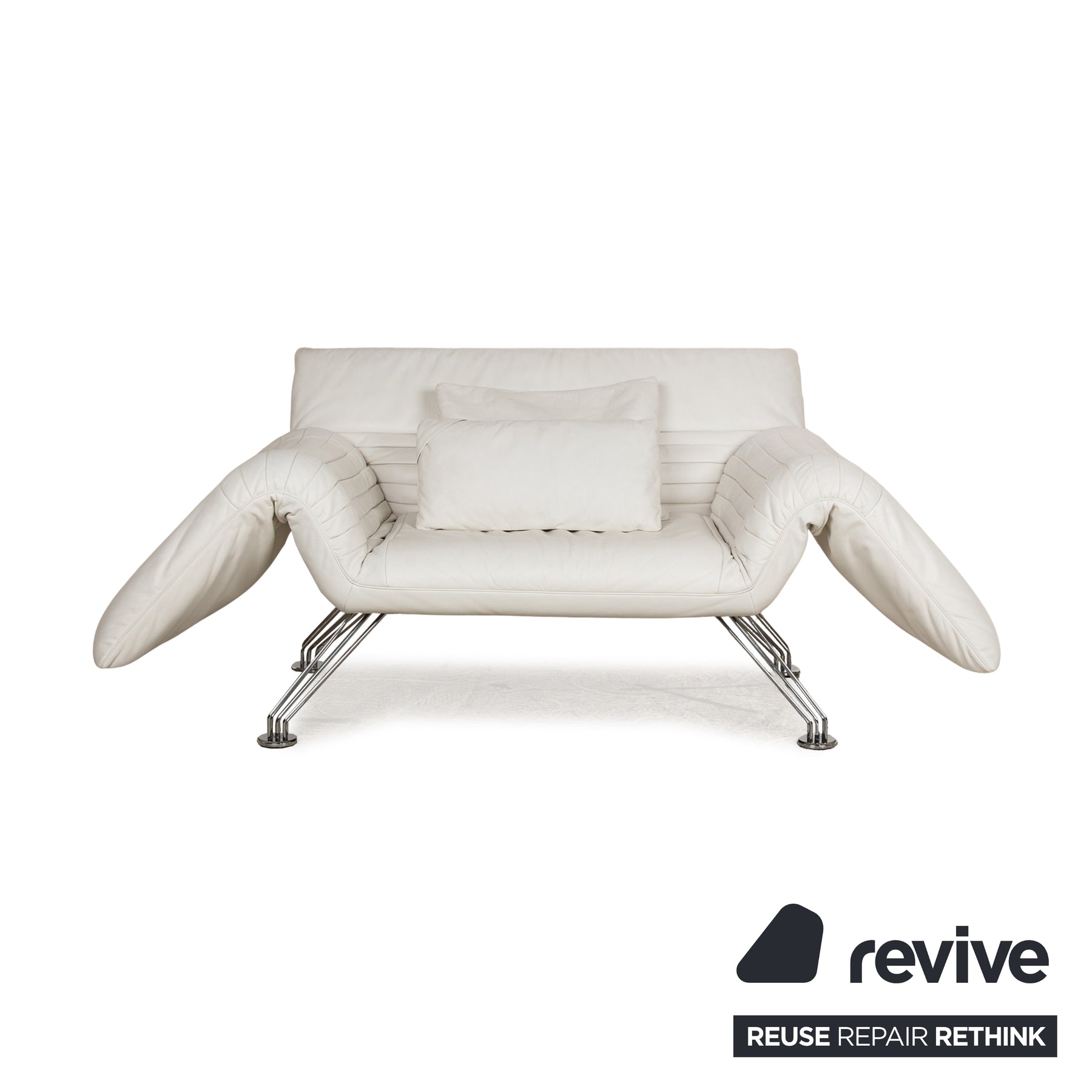 de Sede DS 142 Wing Leder Liege Weiß Sessel Sofa Chrom Füße manuelle Funktion