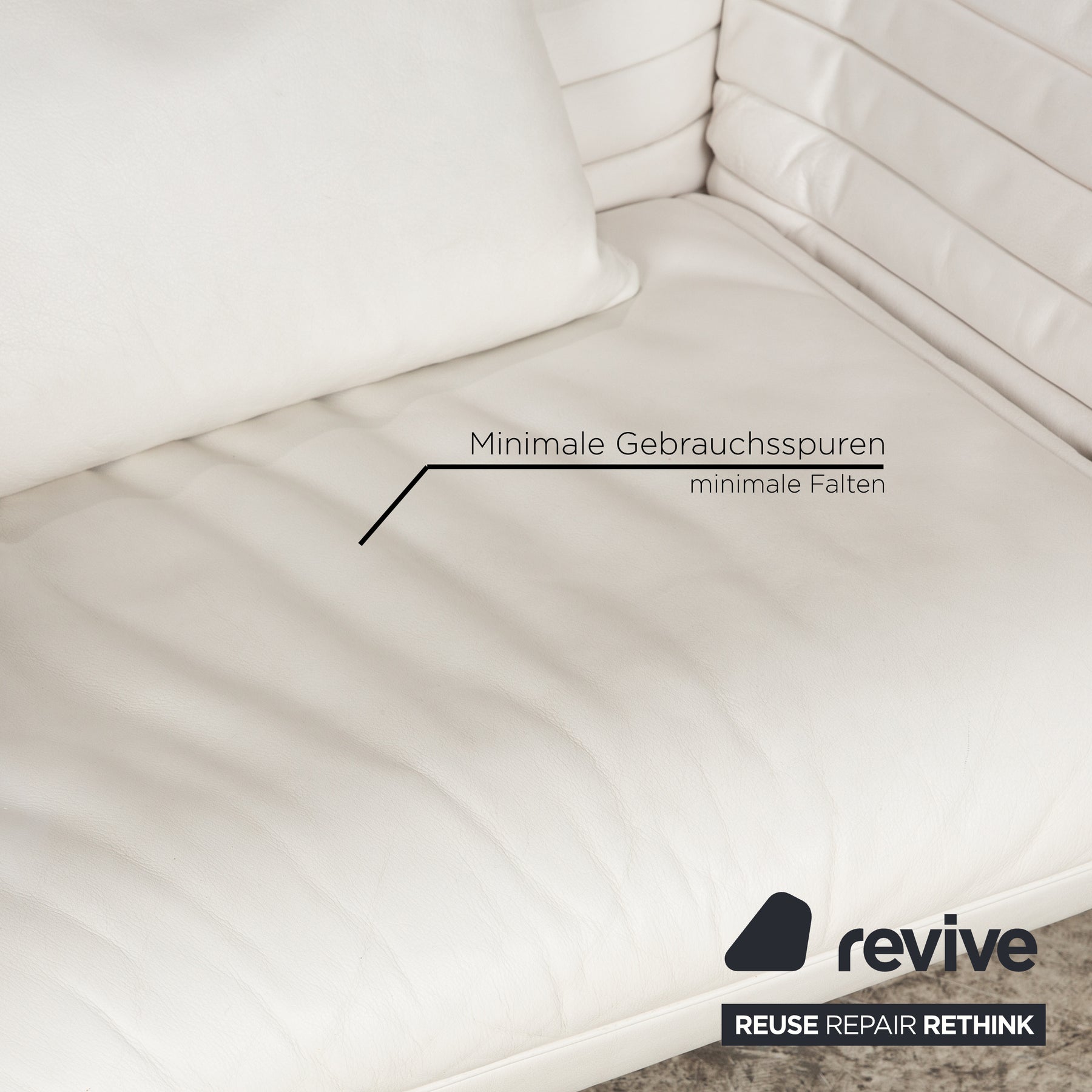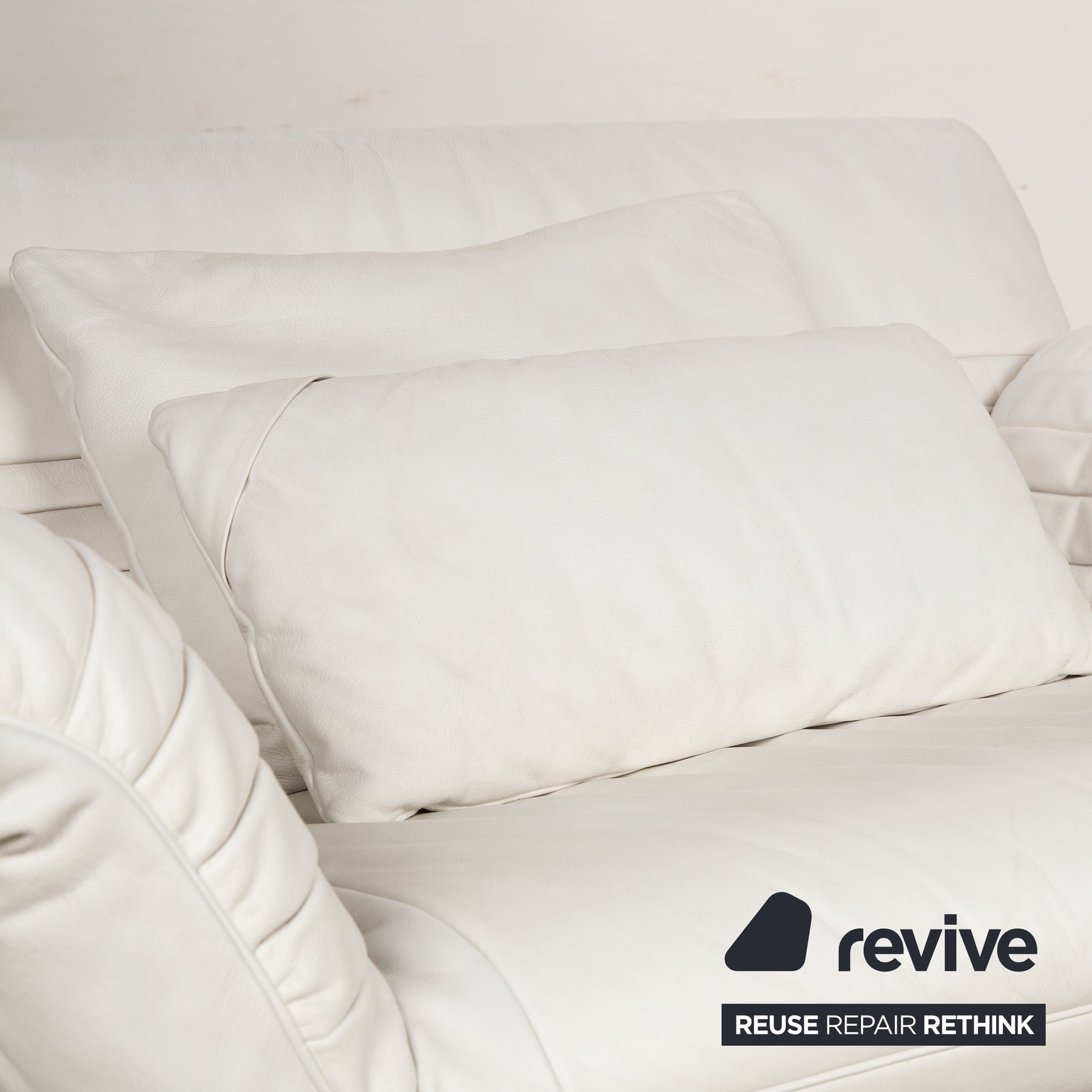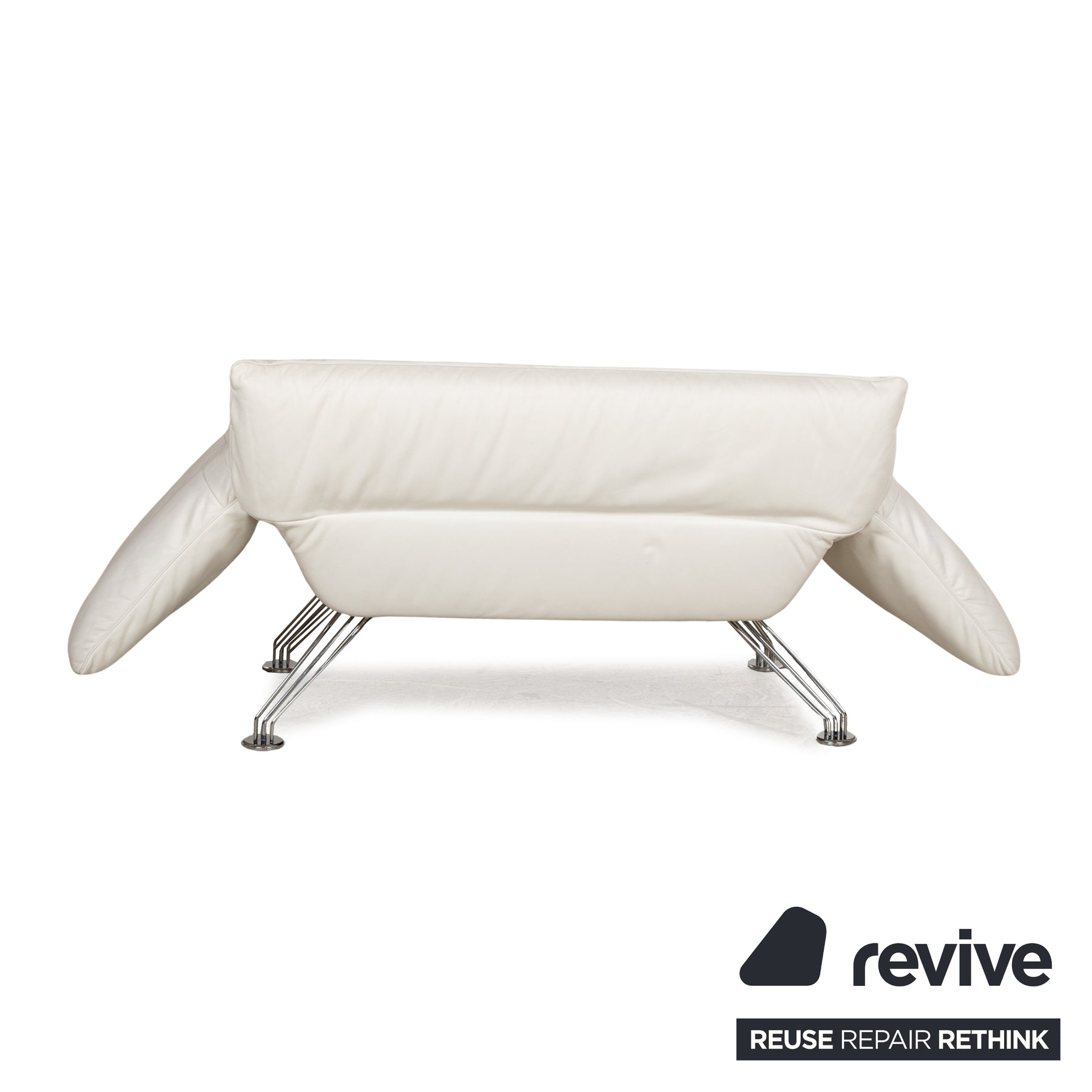 Die Liege DS 142 Wing von de Sede ist mit einem weißen Echtleder bezogen und steht auf silbernen Metallfüßen. Sie zeichnet sich durch die praktische Flexibilität und das helle, stilvolle Design aus.