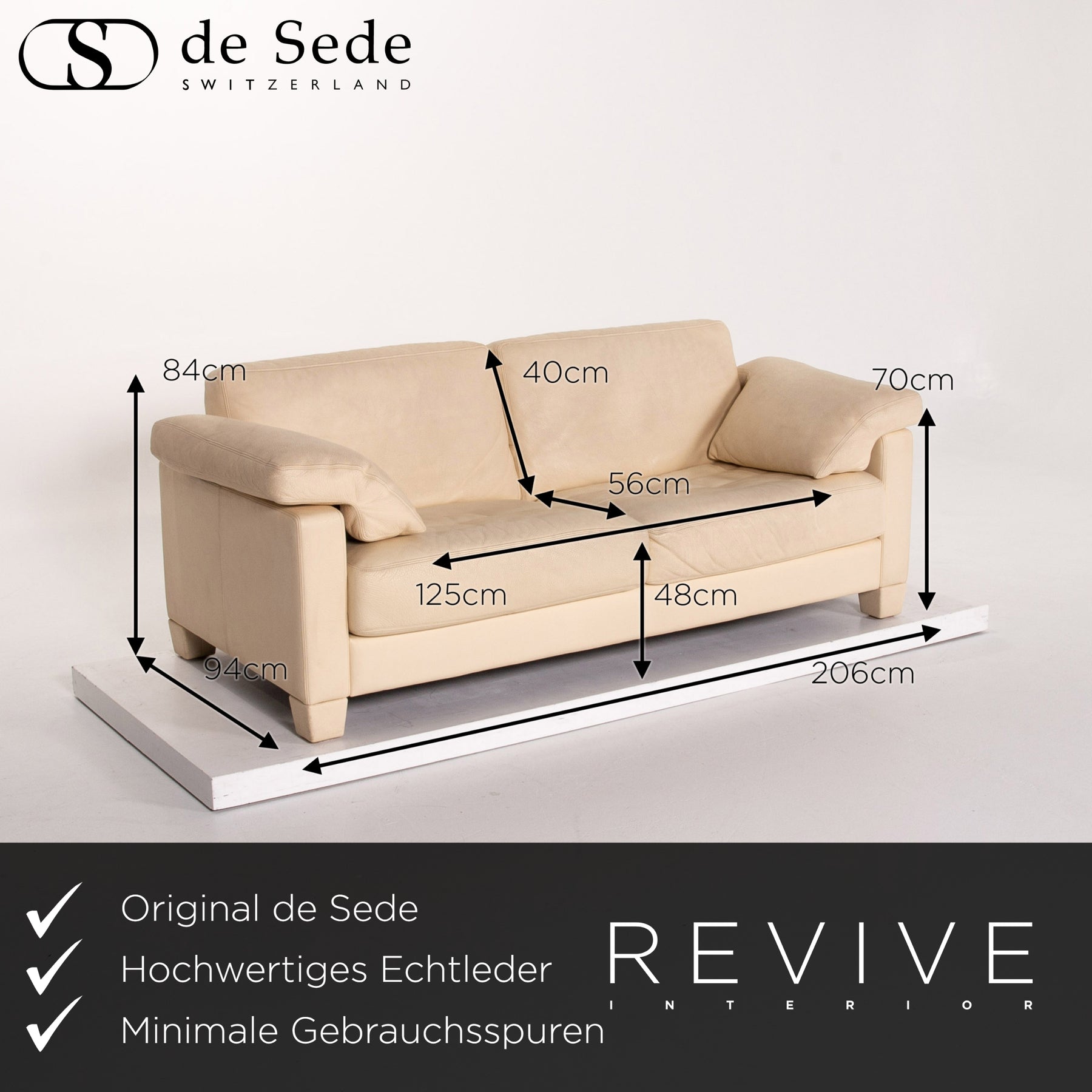 de Sede DS 17 Creme Leder Sofa Creme Dreisitzer Couch #13569