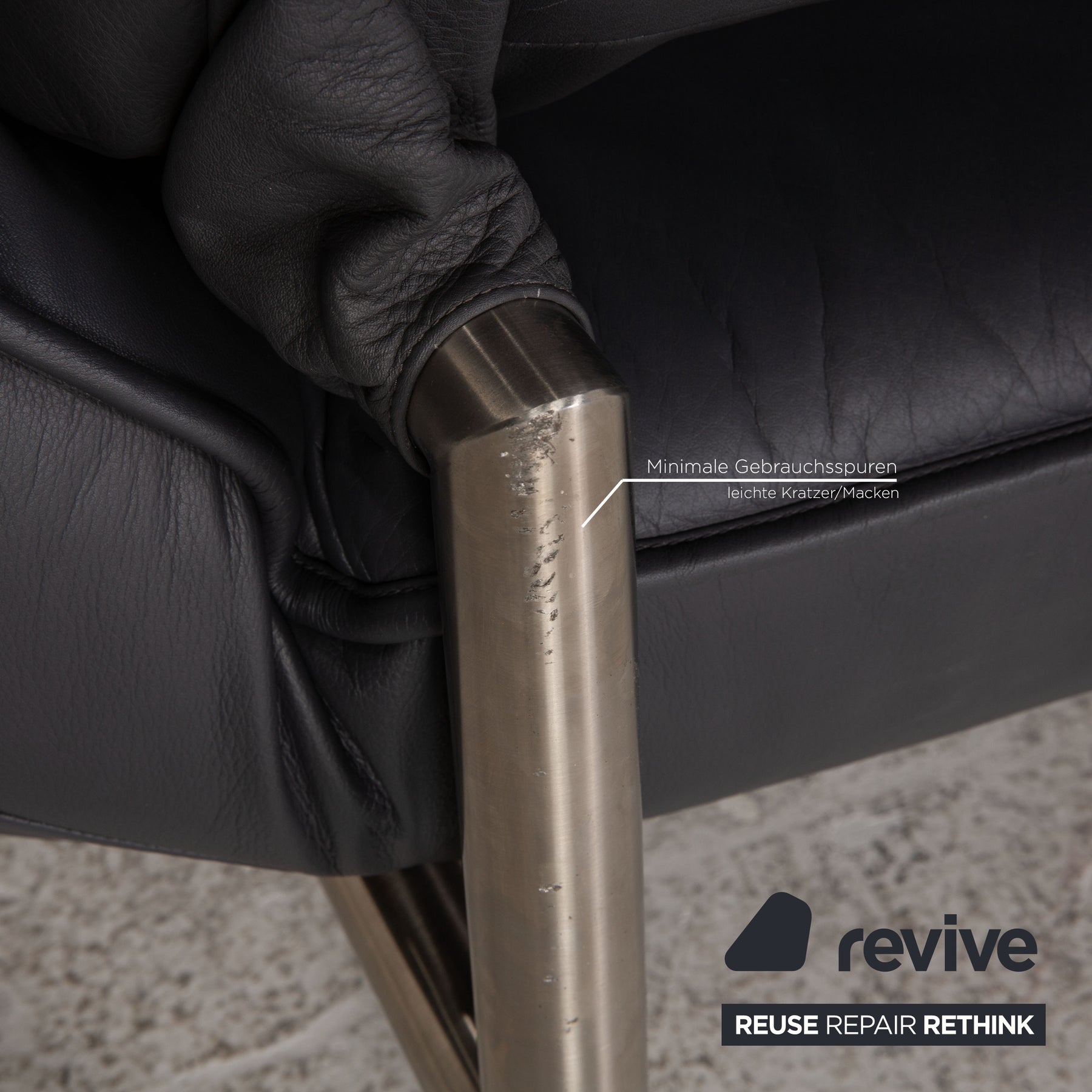 Das DS 450 Sofa von de Sede ist mit einem grauen Echtleder bezogen und steht auf silbernen Metallfüßen. Das schlichte, zeitlose Design und die komfortable Relaxfunktion zeichnen den Zweisitzer aus.