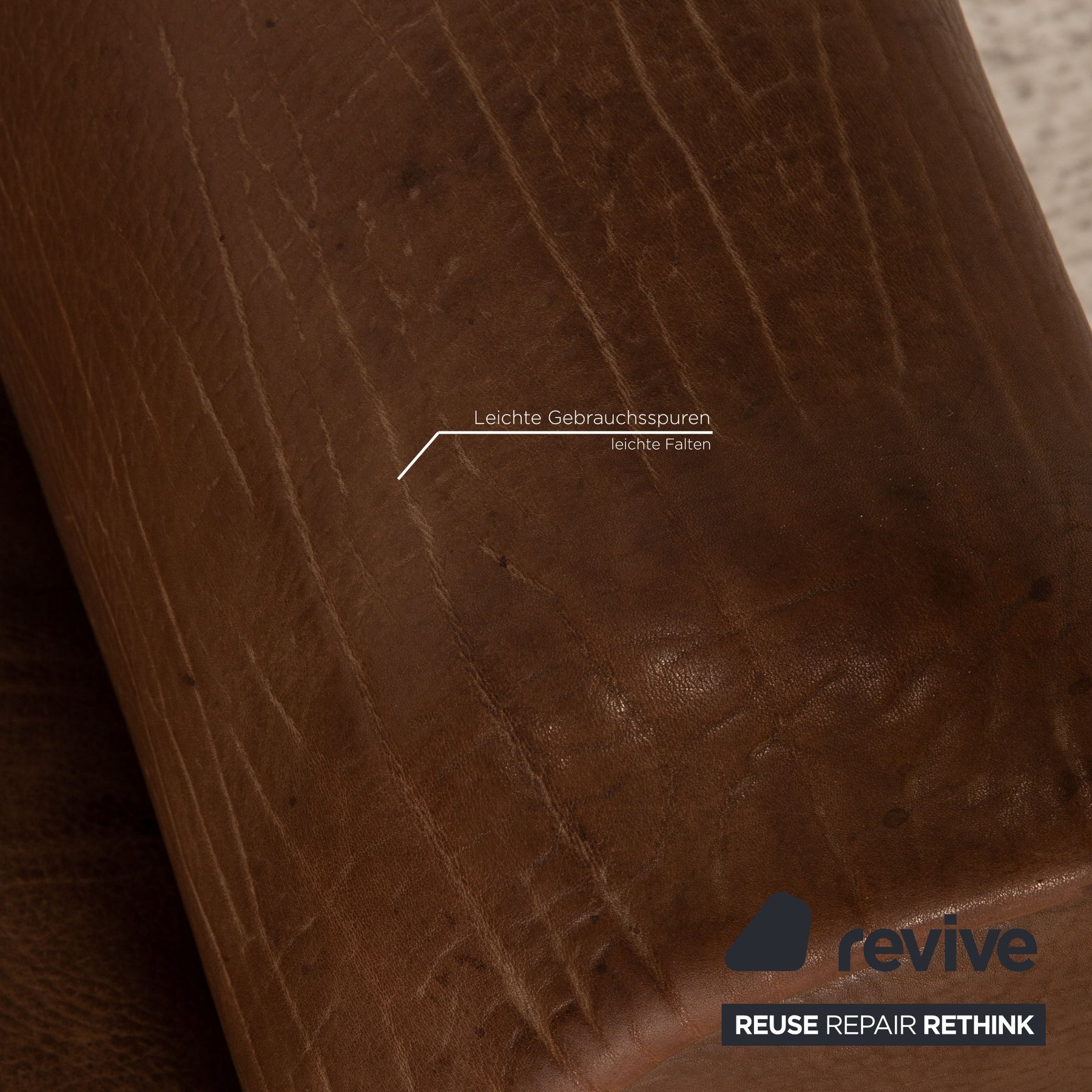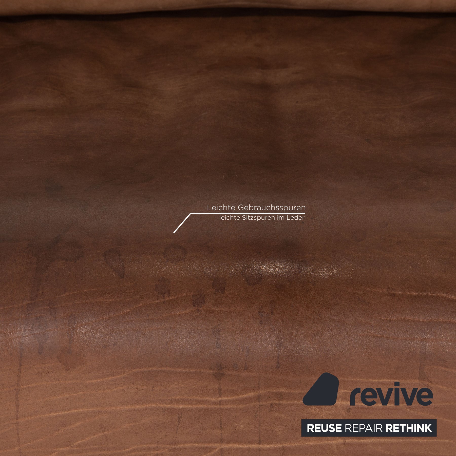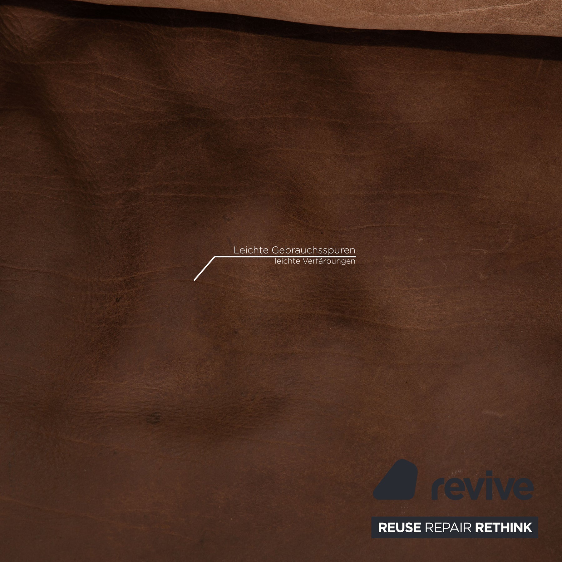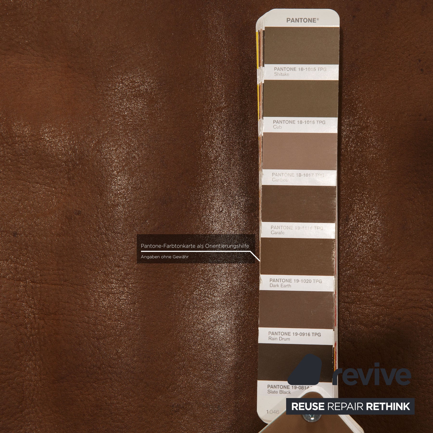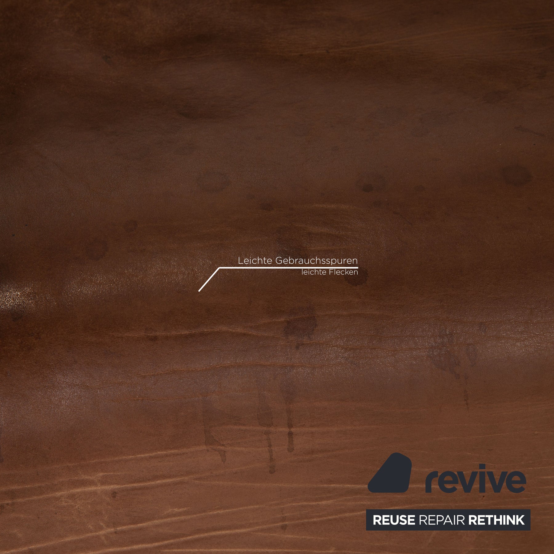 Der Zweisitzer ds 47 von de Sede ist mit einem braunen Echtleder bezogen und ist bodentief. Er zeichnet sich durch das massive Design und die rustikale Optik aus.