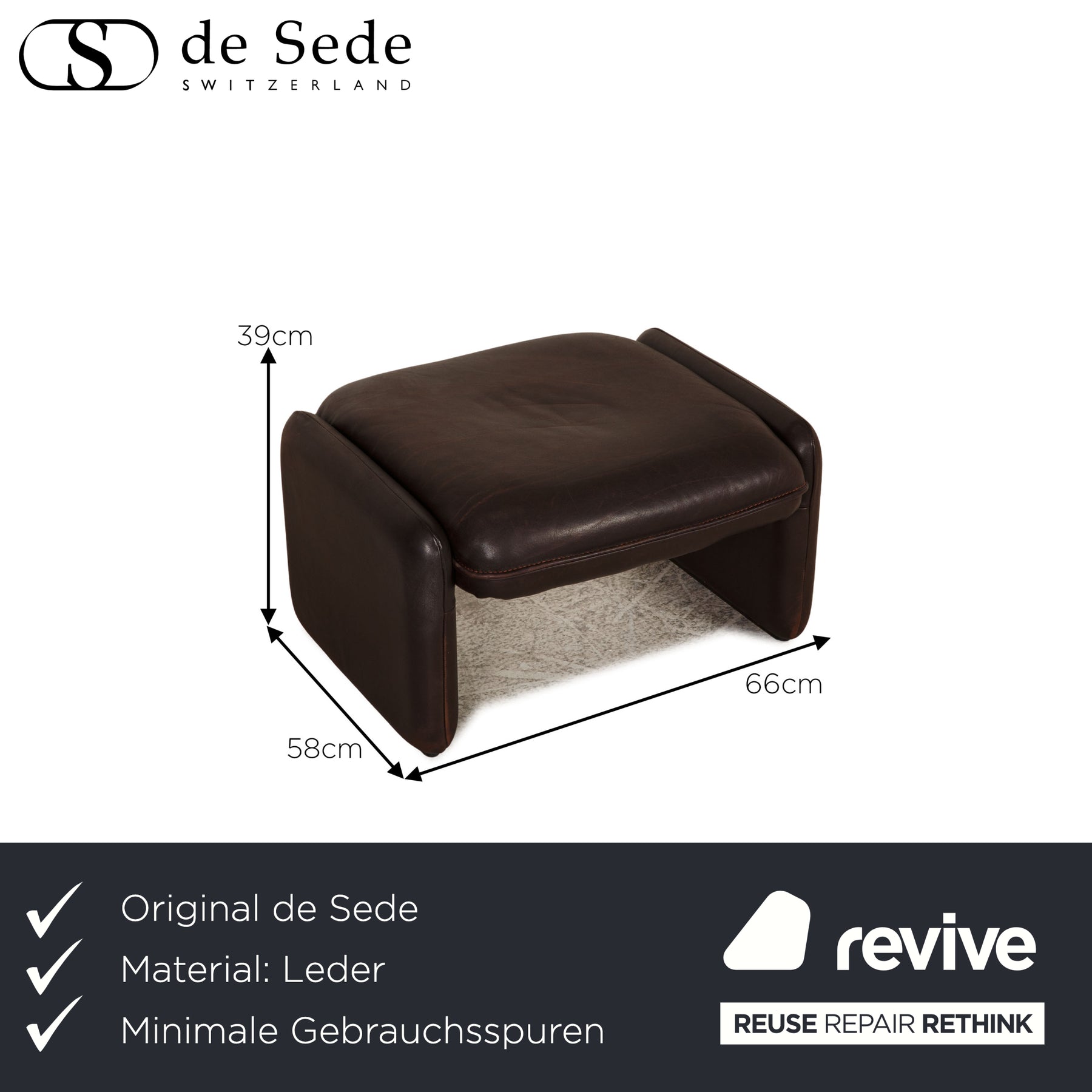 Der ds 61 Hocker von de Sede ist mit einem braunen Echtleder bezogen und steht auf bodentiefen Seitenteilen. Das zeitlose Design und die abgerundeten Kanten zeichnen ihn aus.