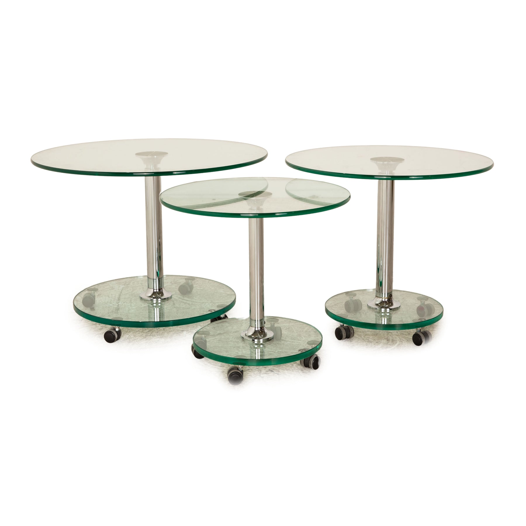 Draenert Lift Glas Tisch Garnitur Silber Couchtisch Funktion