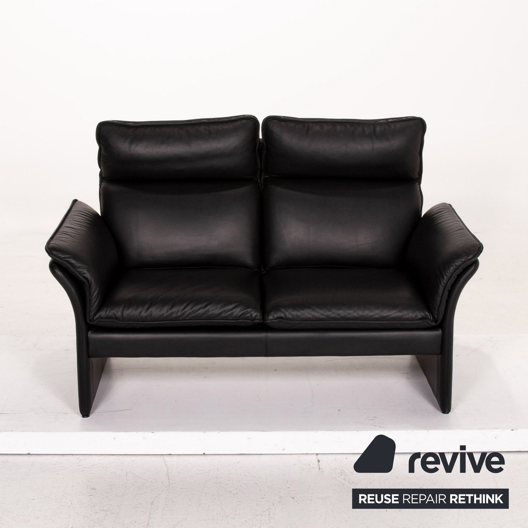 Dreipunkt Scala Leder Sofa Garnitur Schwarz 1x Dreisitzer 1x Zweisitzer #15510