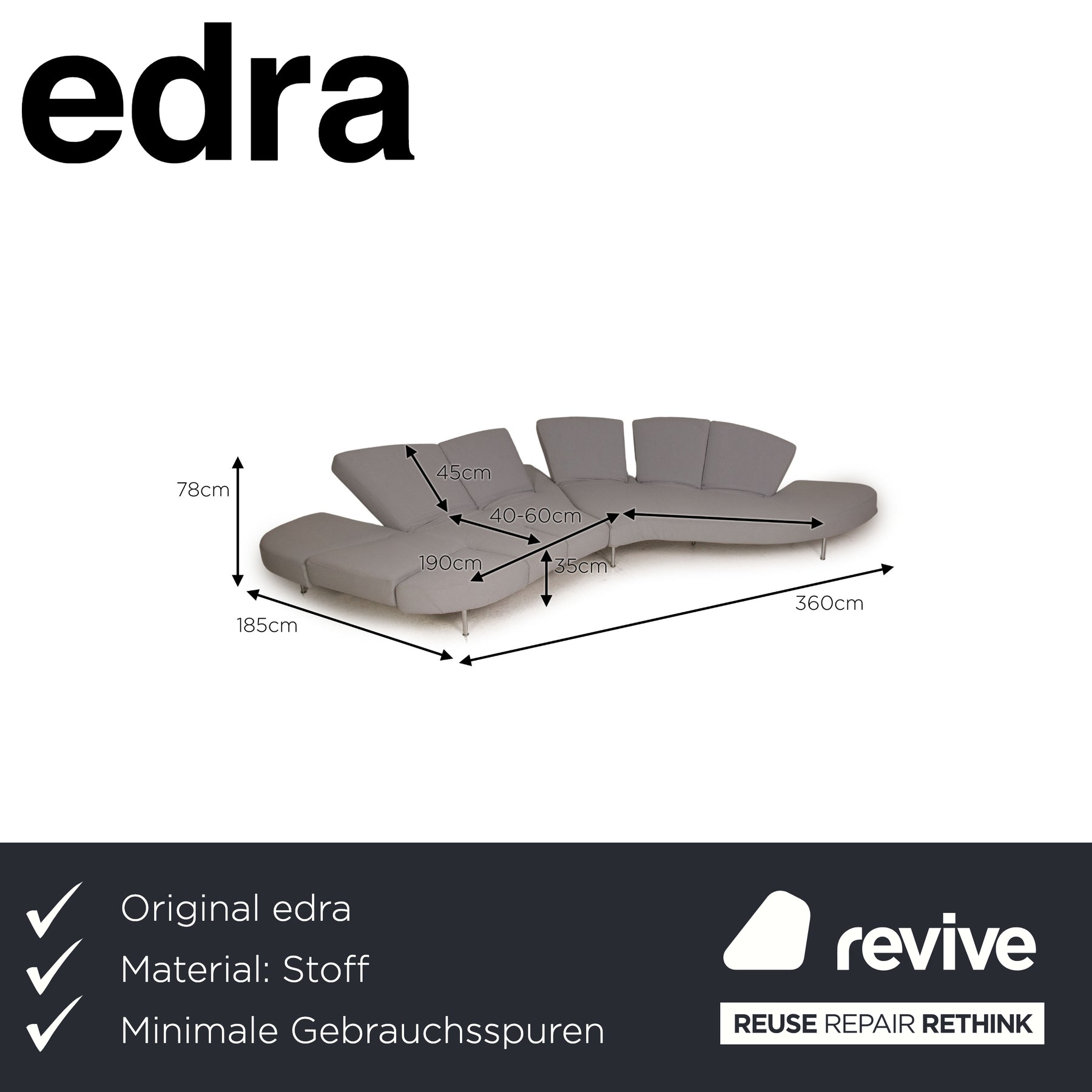 edra Flap Stoff Sofa Grau Ecksofa Couch Funktion