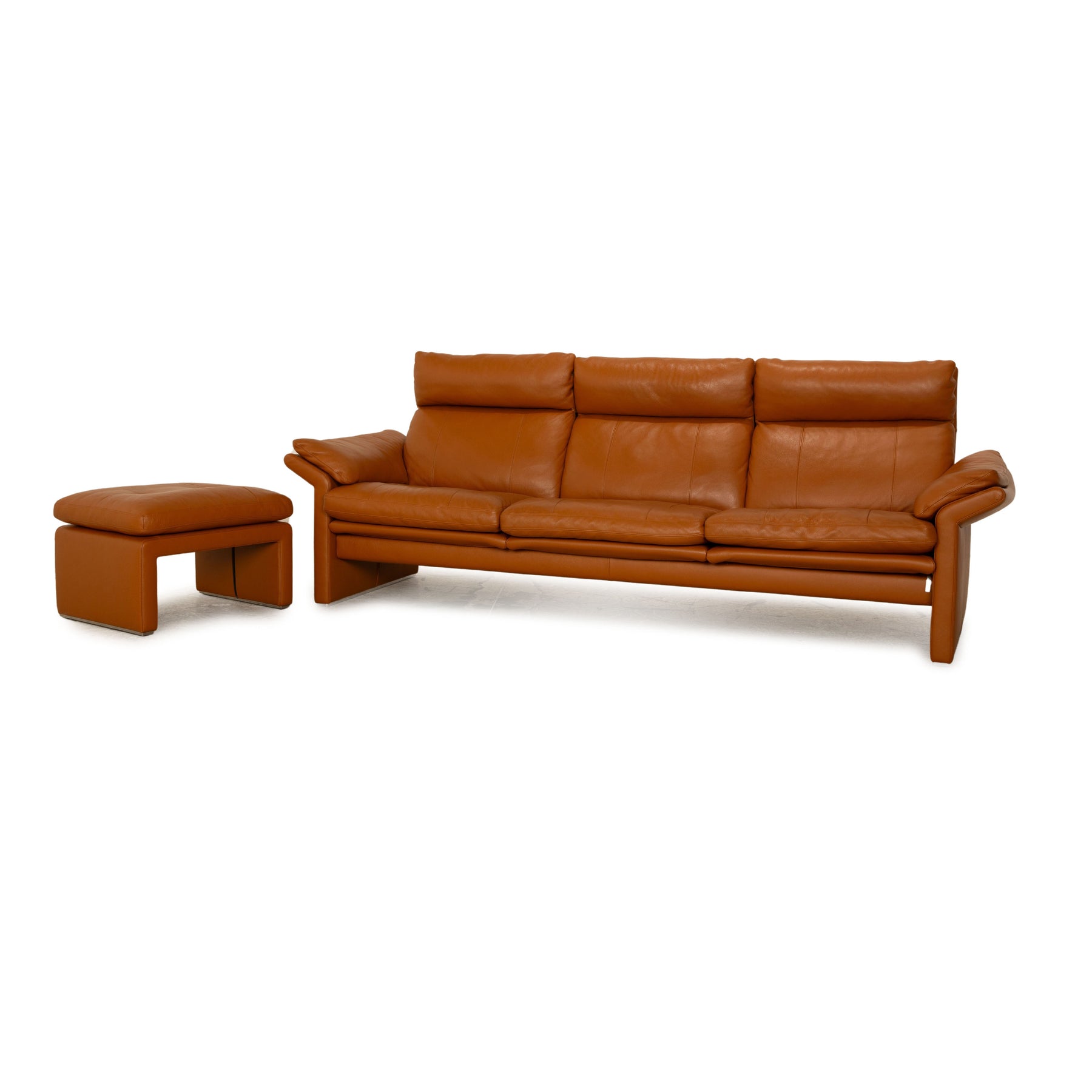 Erpo CL 300 Leder Sofa Garnitur Braun Dreisitzer Hocker Couch manuelle Funktion