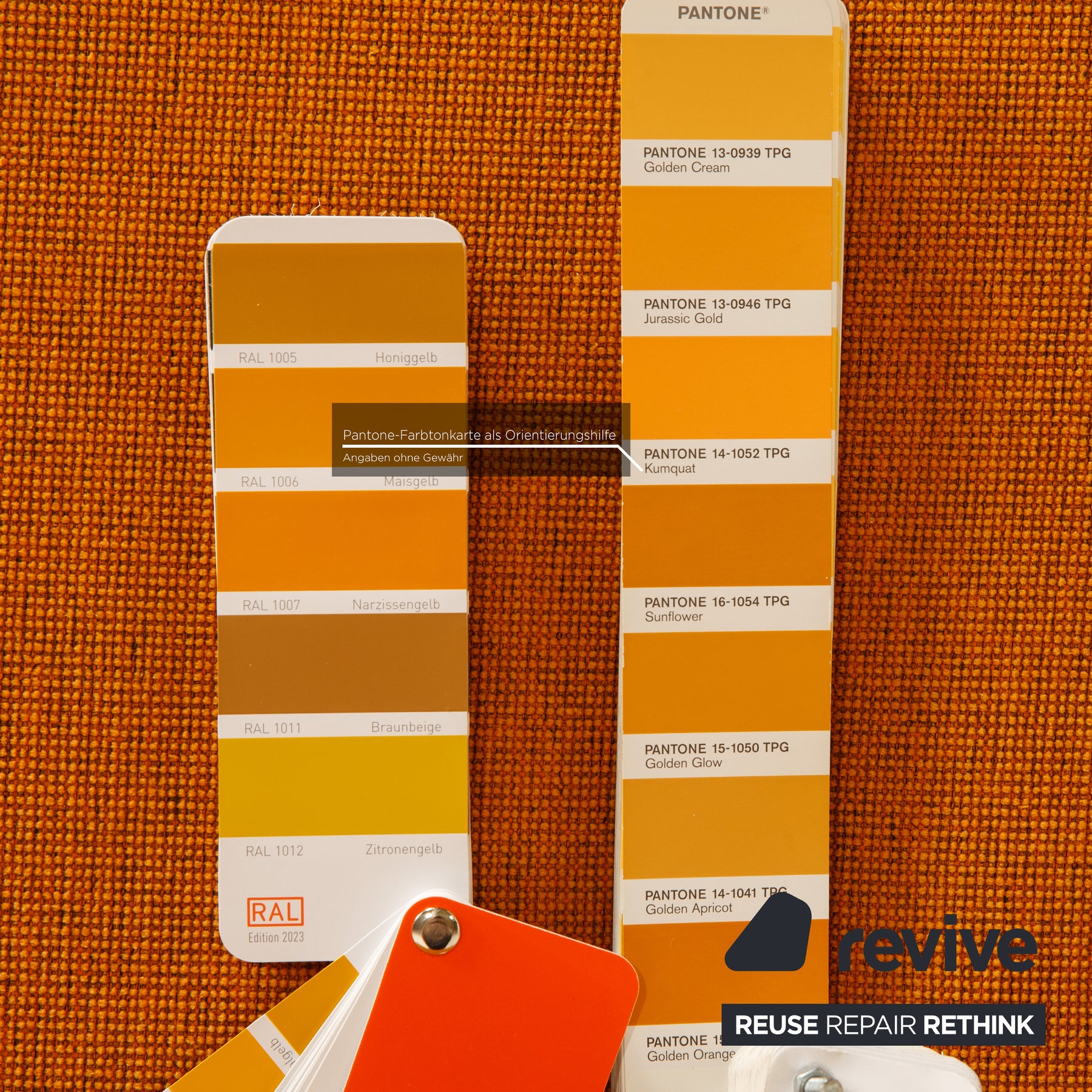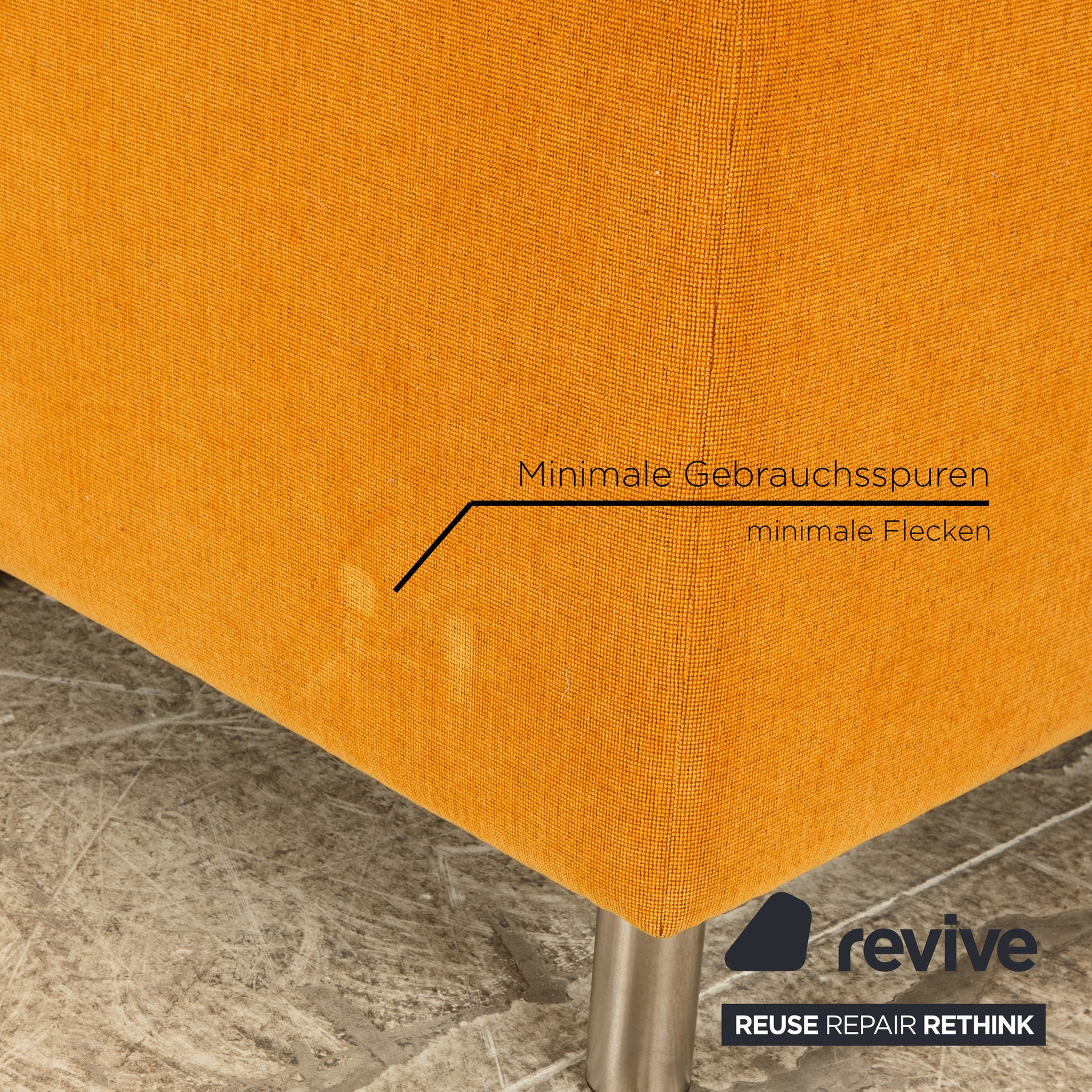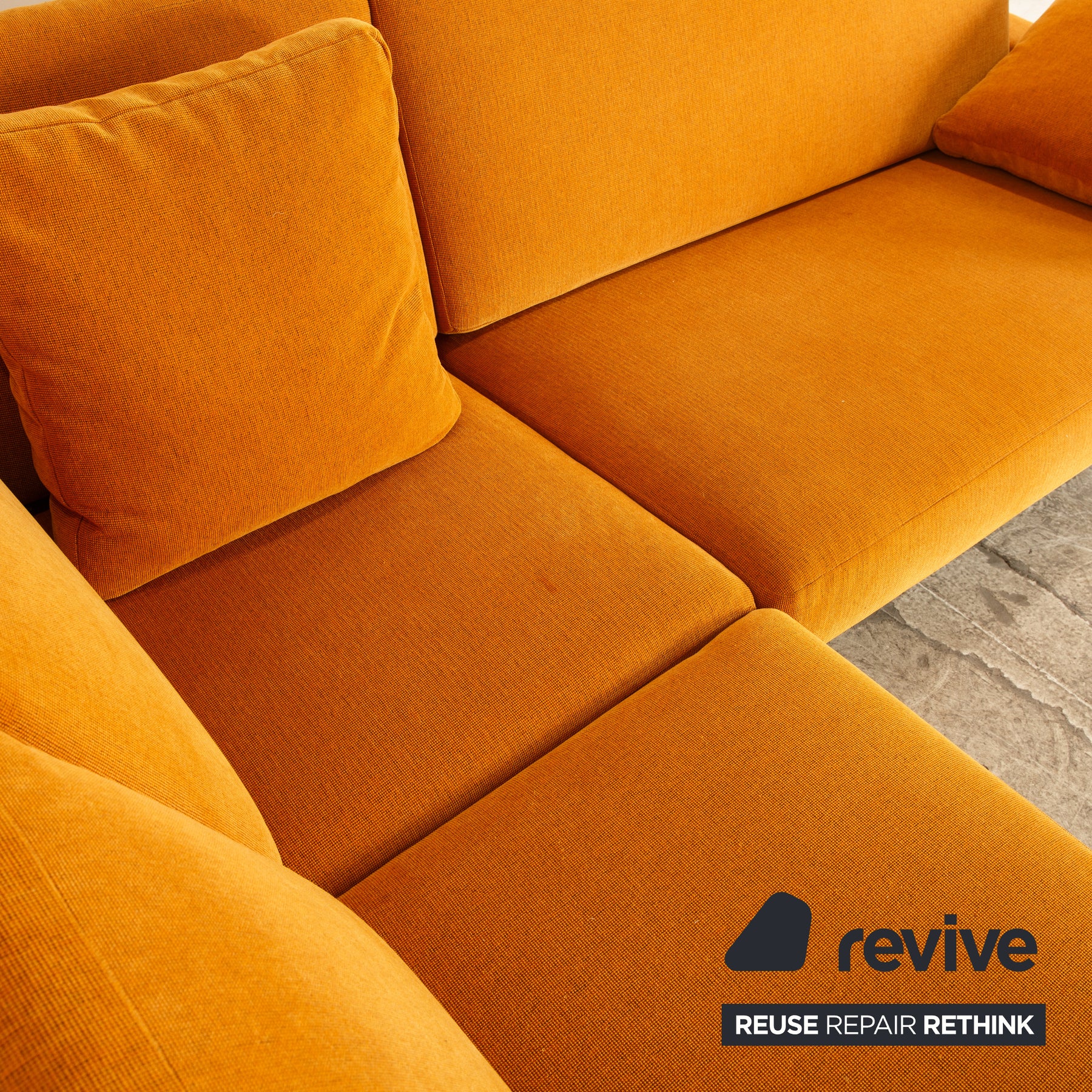 Das Ecksofa CL 500 von Erpo ist mit einem gelben Stoff bezogen und steht auf runden Metallfüßen. Es zeichnet sich durch sein klassisches, schlichtes Design und die auffällige Farbe aus.