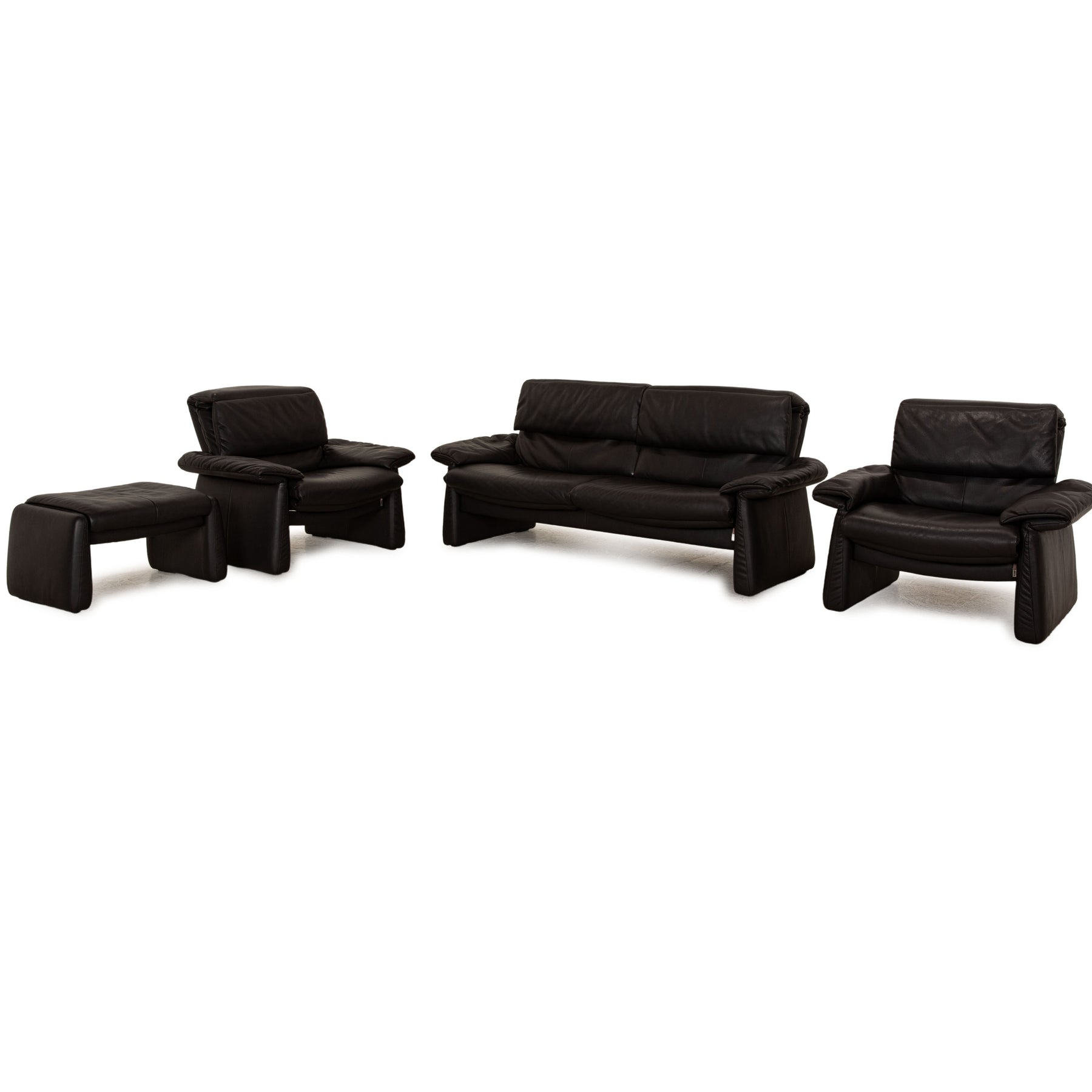 Erpo Lugano Leder Sofa Garnitur Anthrazit Zweisitzer Sessel Hocker Couch Funktion