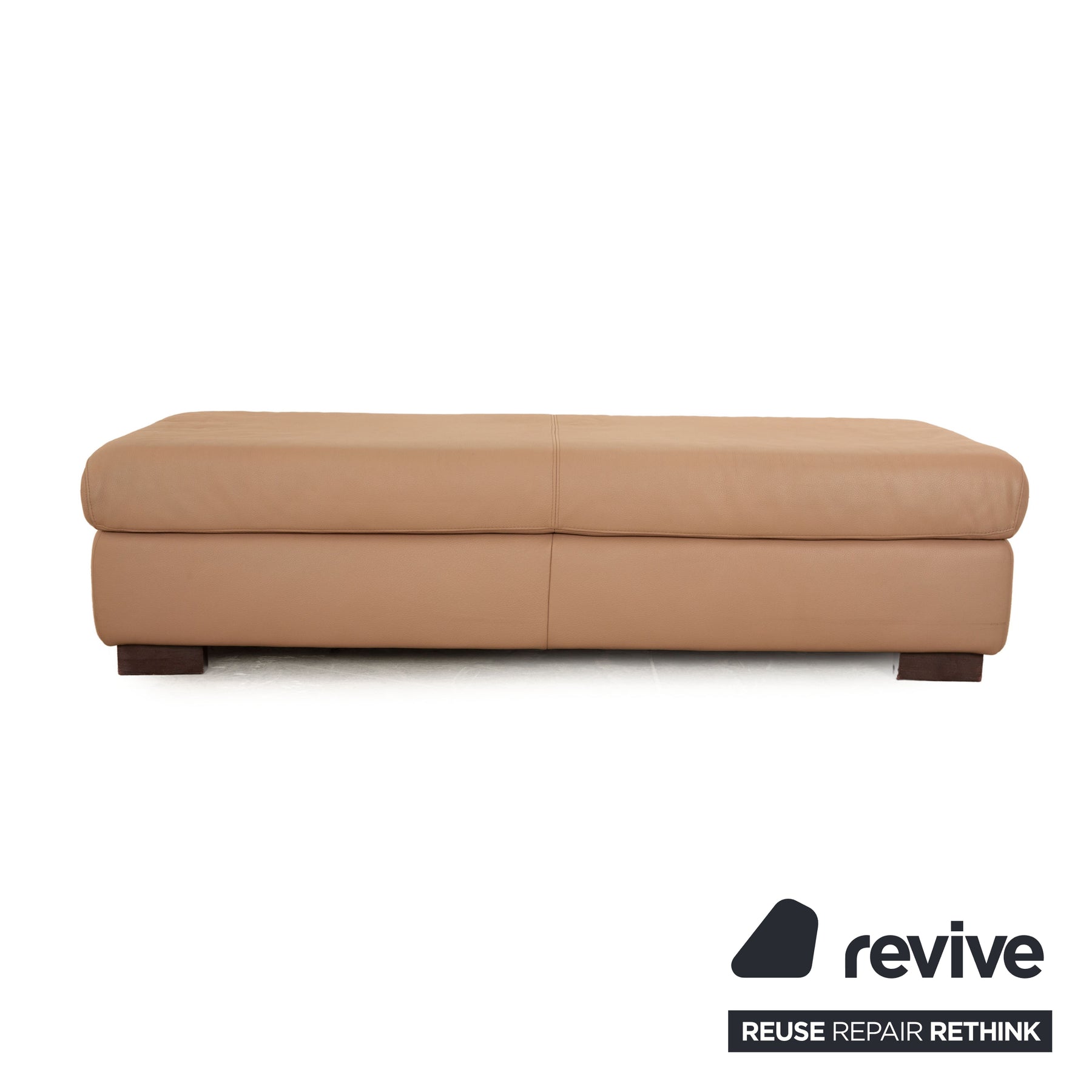 Der Courage Hocker von Ewald Schillig ist mit einem beigen Echtleder bezogen und steht auf eckigen Füßen. Das schlichte Design und die abgerundeten Kanten zeichnen ihn aus.