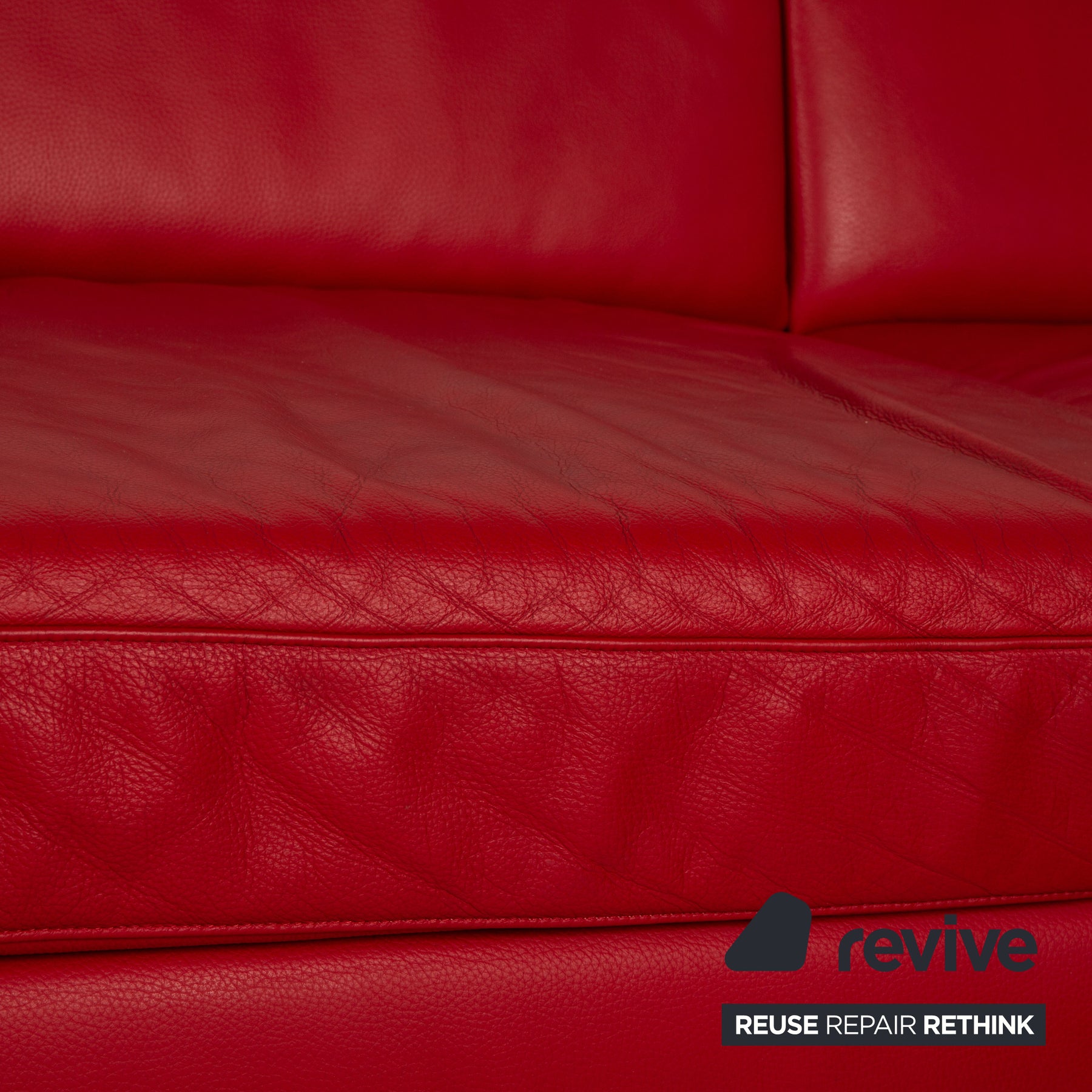 Das Donna Sofa von Ewald Schillig ist mit einem roten Echtleder bezogen und steht auf kleinen Metallfüßen. Das schlichte Design und die abgerundeten Kanten zeichnen das Ecksofa aus.