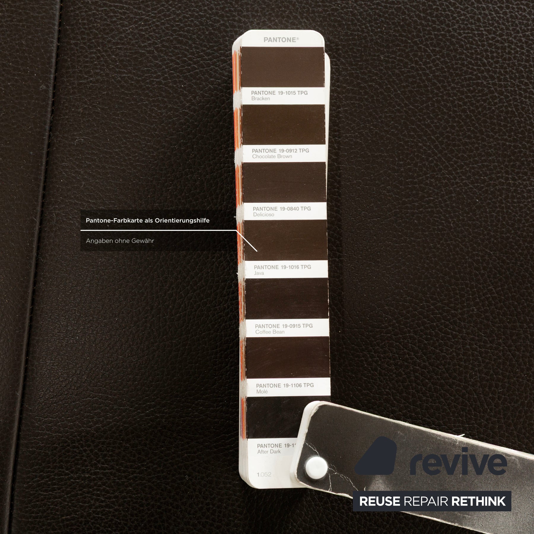Der Sessel von Ewald Schillig ist mit einem dunkelbraunen Echtleder bezogen und steht auf schicken, verchromten Füßen. Er überzeugt mit seinem zeitlosen, schlichten Design.