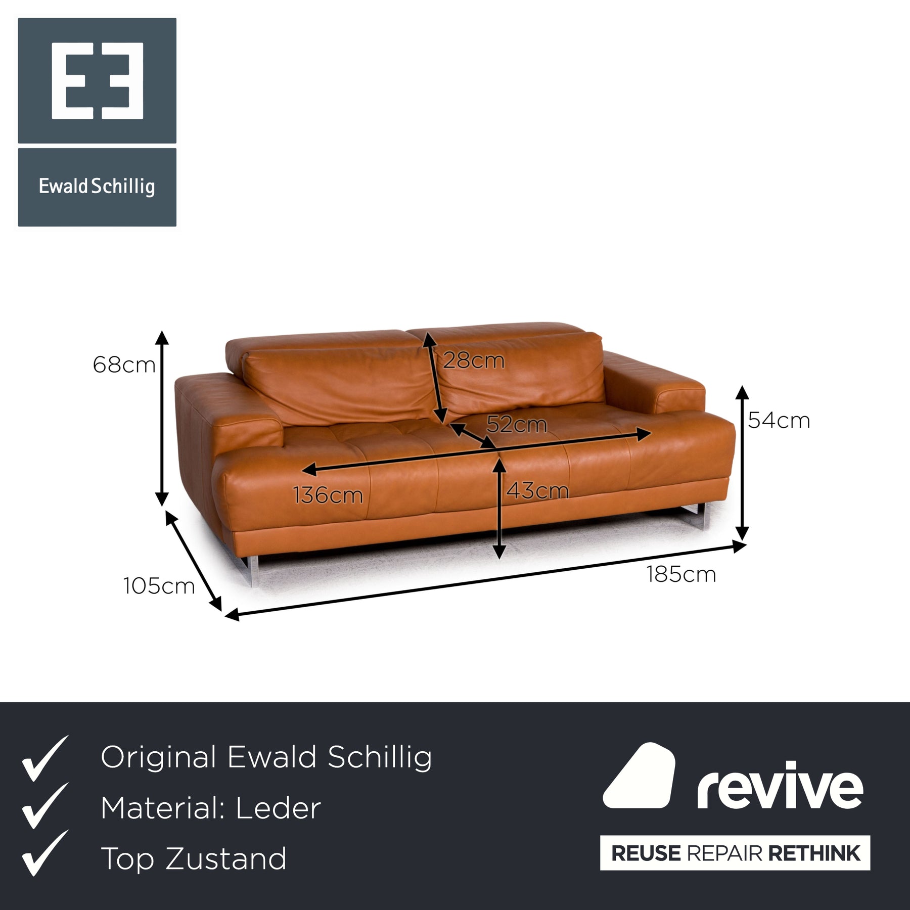Ewald Schillig Leder Sofa Braun Cognac Dreisitzer Couch