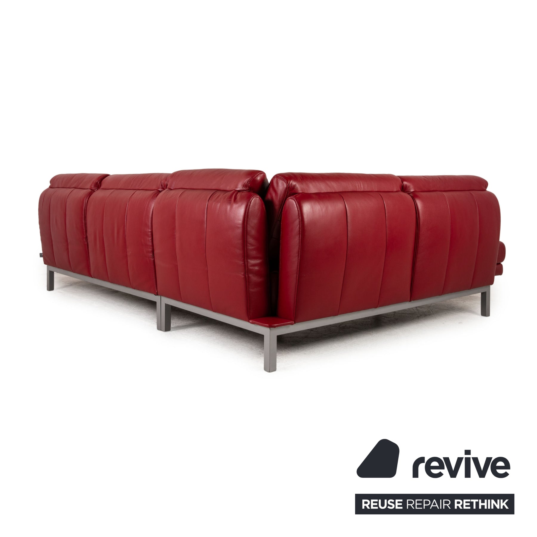 Das Columbo Sofa von Ewald Schillig ist mit einem roten Echtleder bezogen und steht auf silbernen Metallfüßen. Das Ecksofa überzeugt mit seinem schlichten, zeitlosen Design und den komfortablen, aufstellbaren Rückenlehnen.