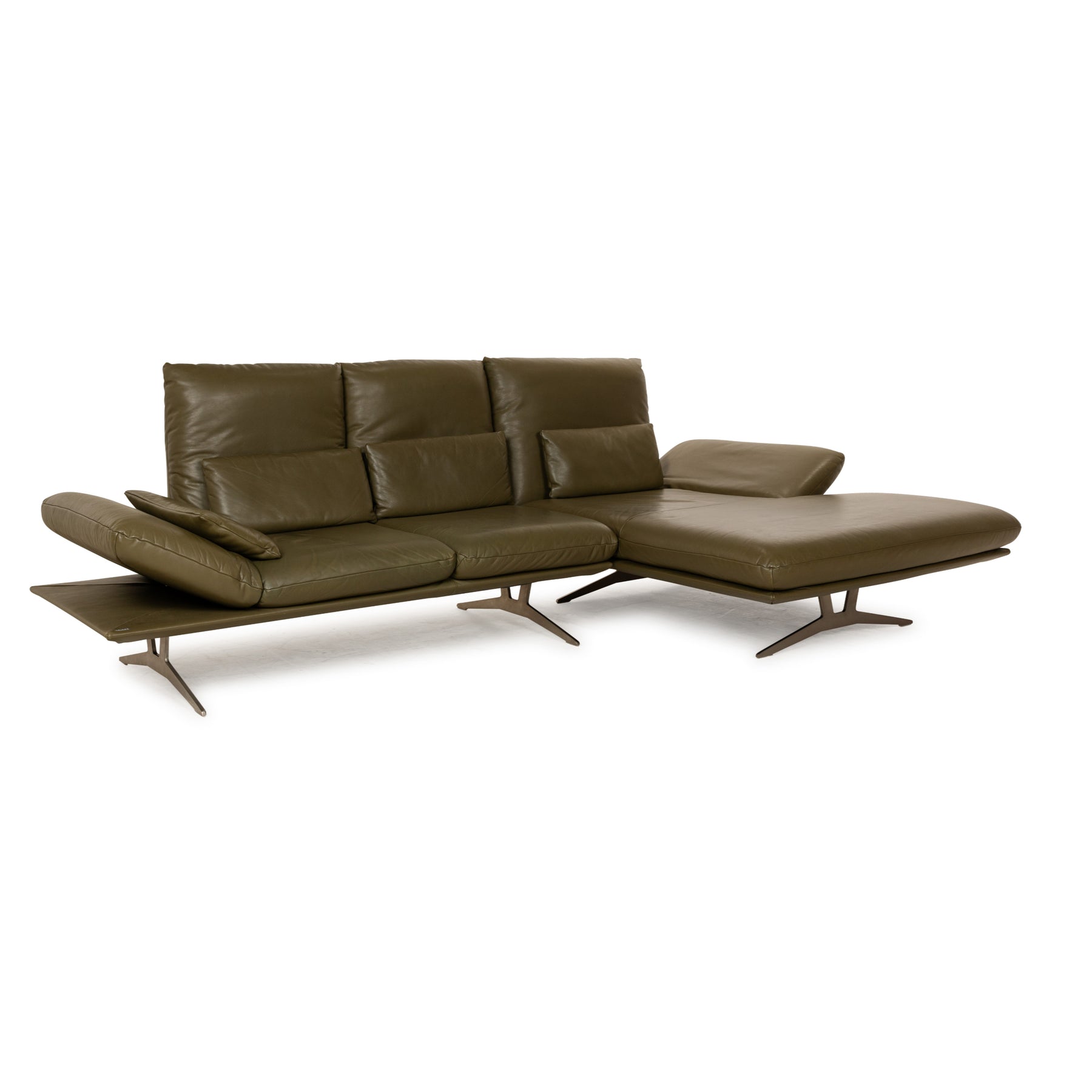 Koinor Francis Leder Ecksofa Grün Oliv manuelle Funktion Recamiere Rechts Sofa Couch