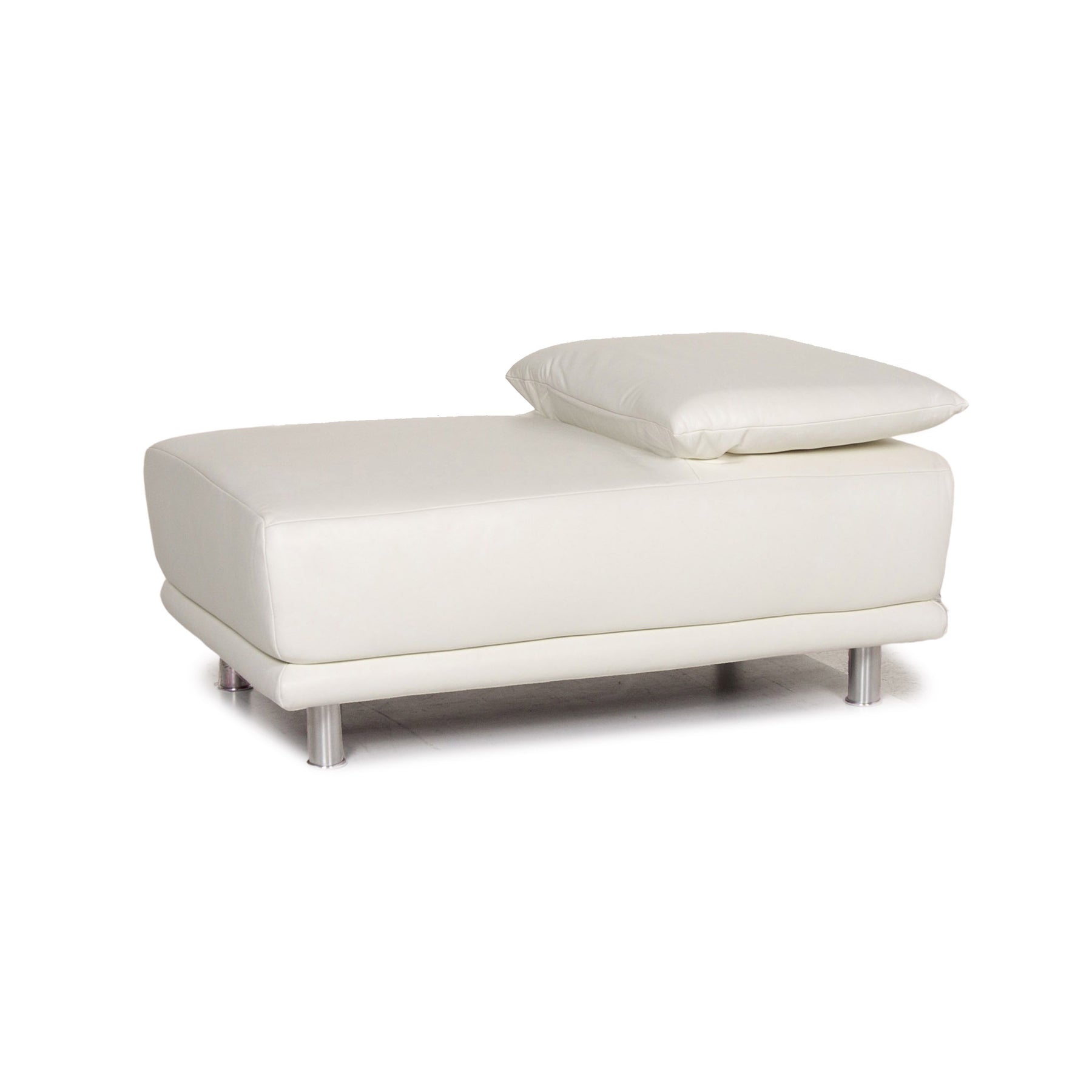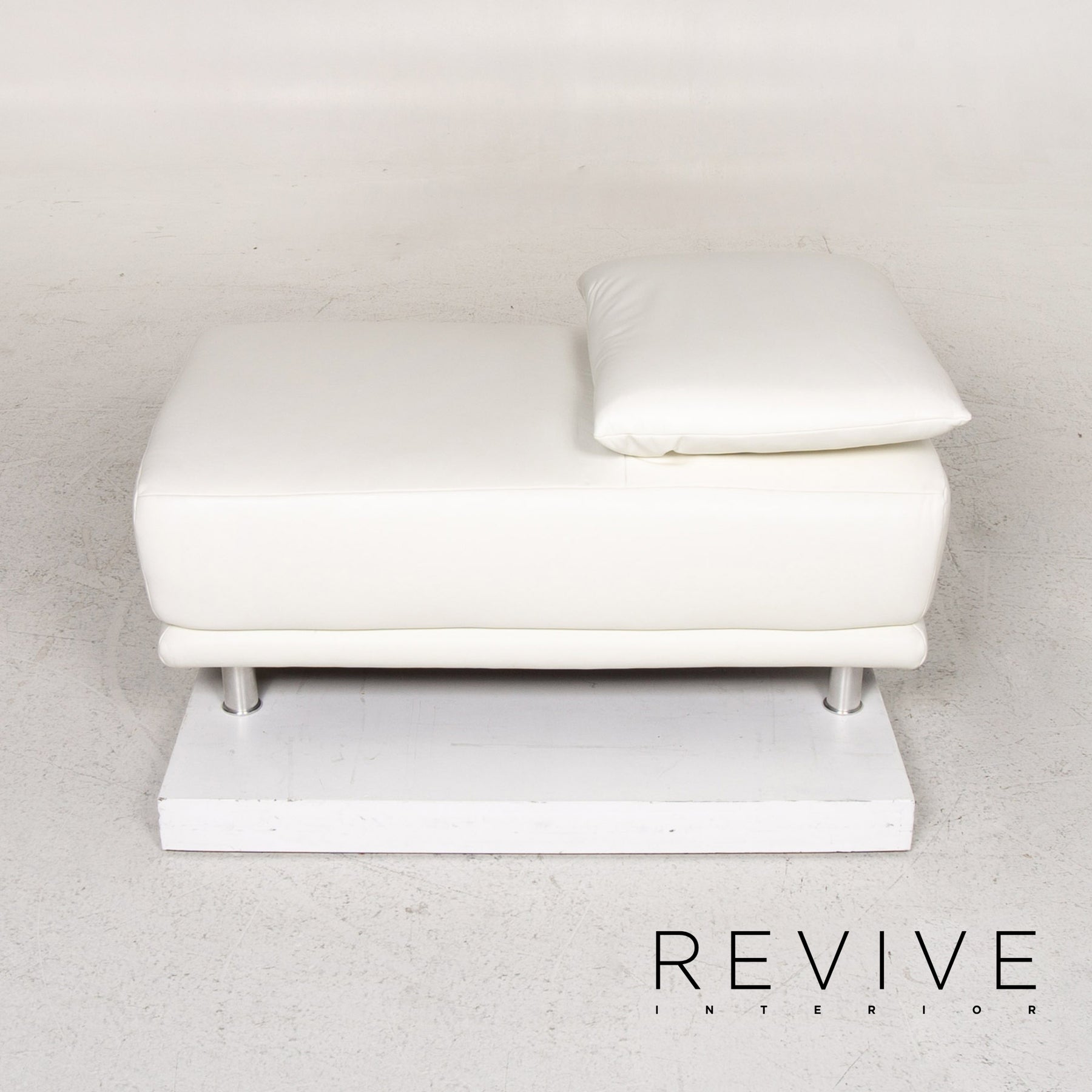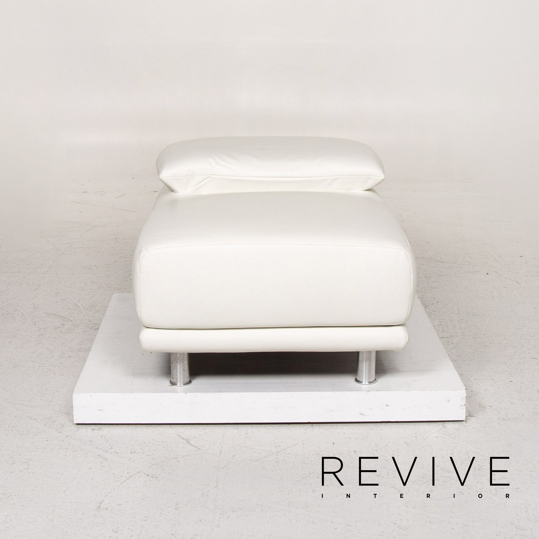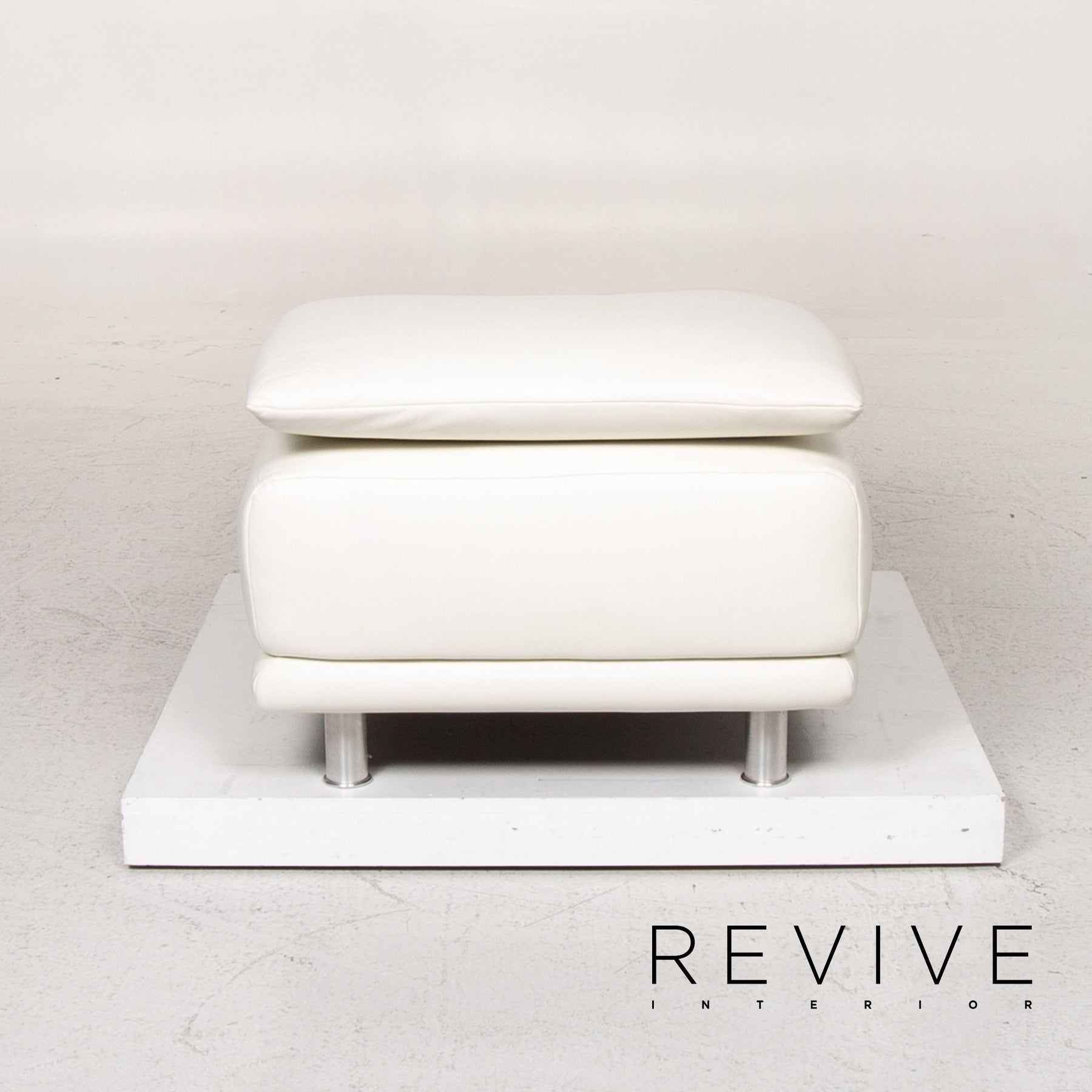 Der Hocker von Koinor ist mit einem weißen Echtleder bezogen und steht auf schlanken Füßen. Die voluminöse Form zeichnet den Ottoman aus. Ein Polsterkissen sorgt für zusätzlichen Komfort.