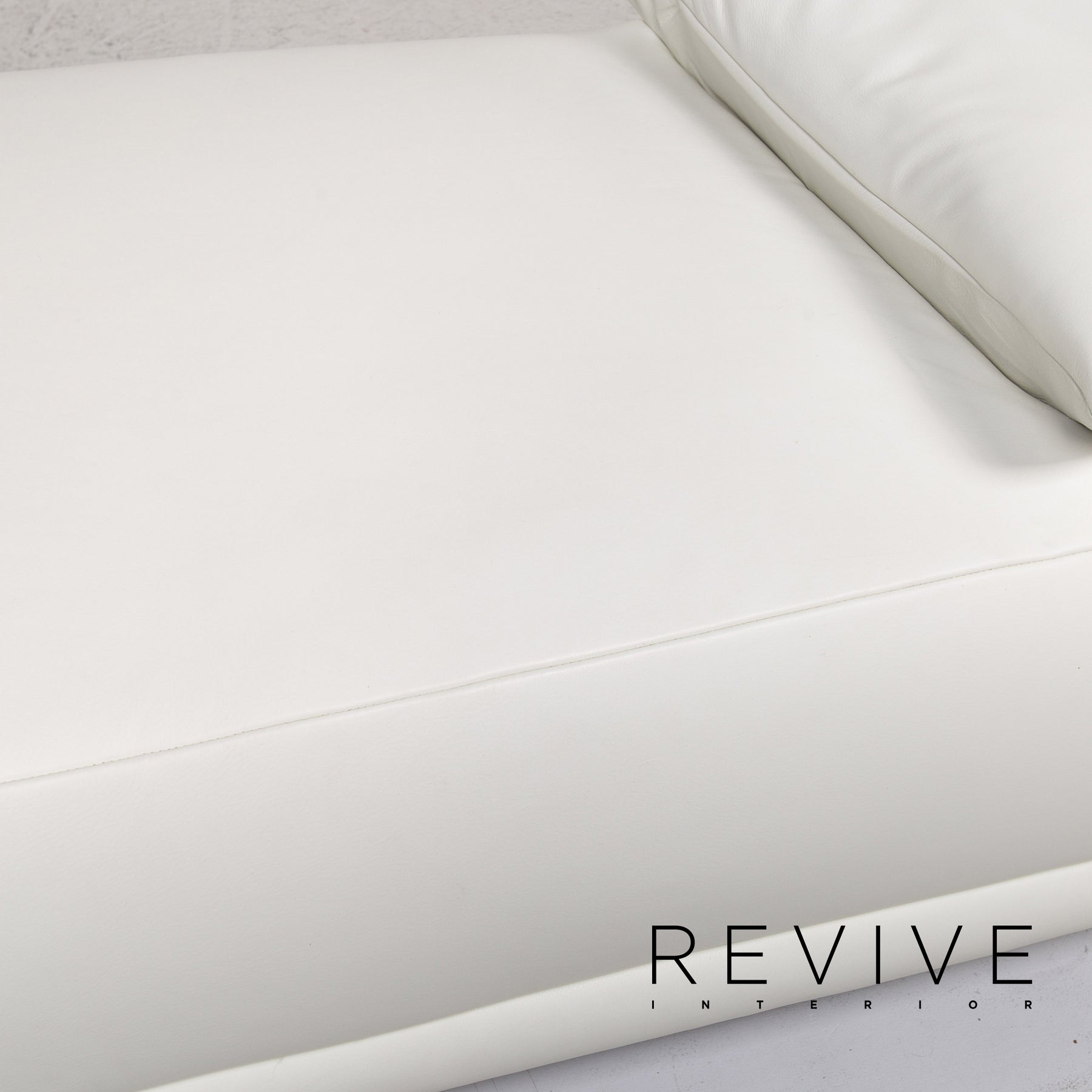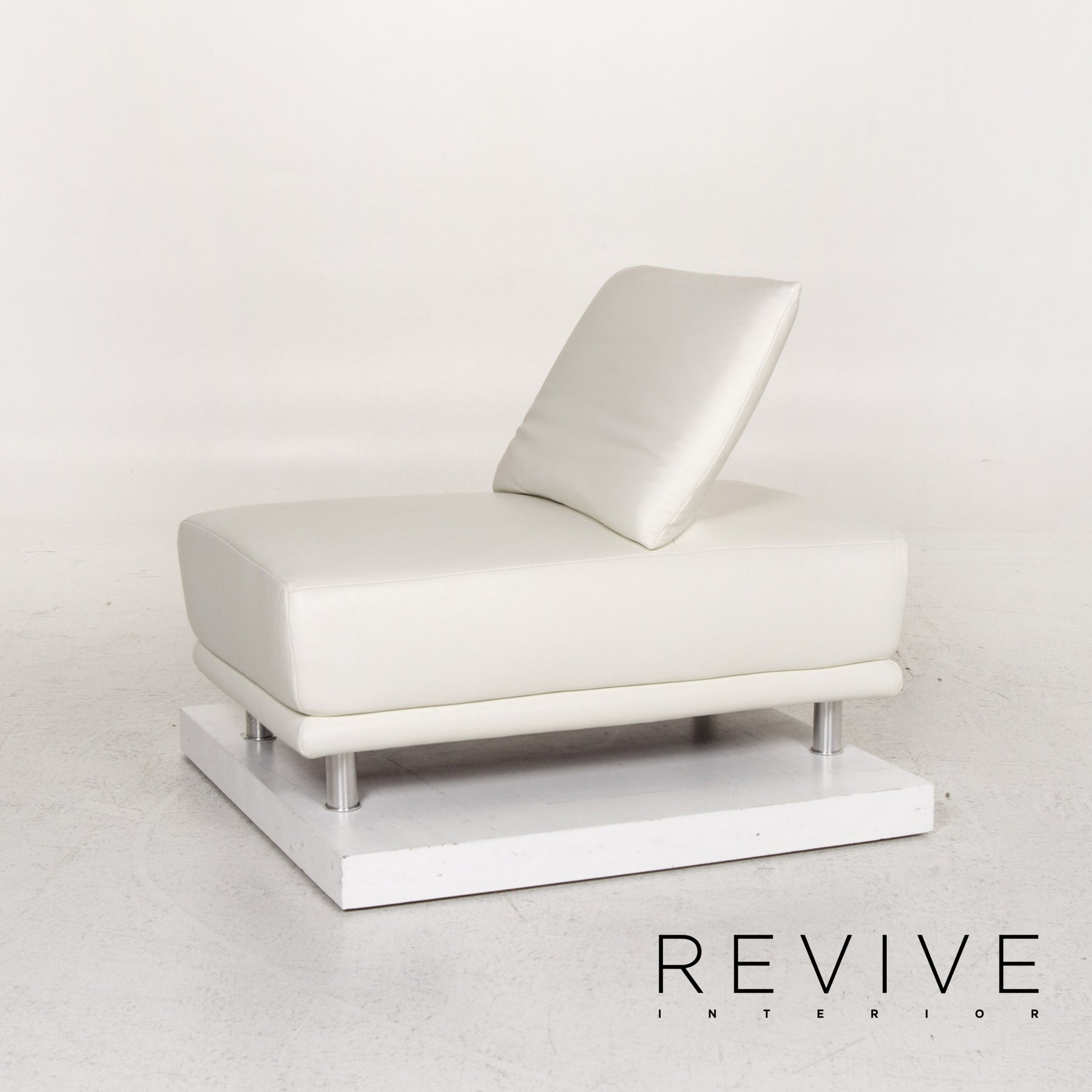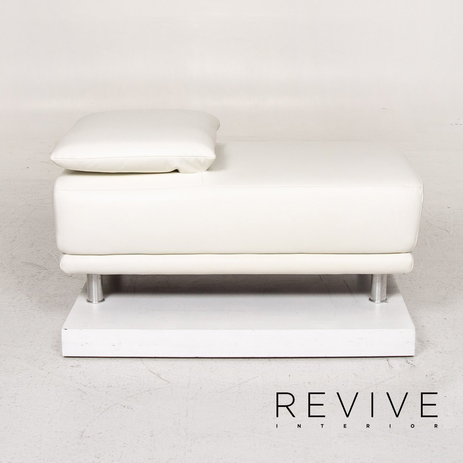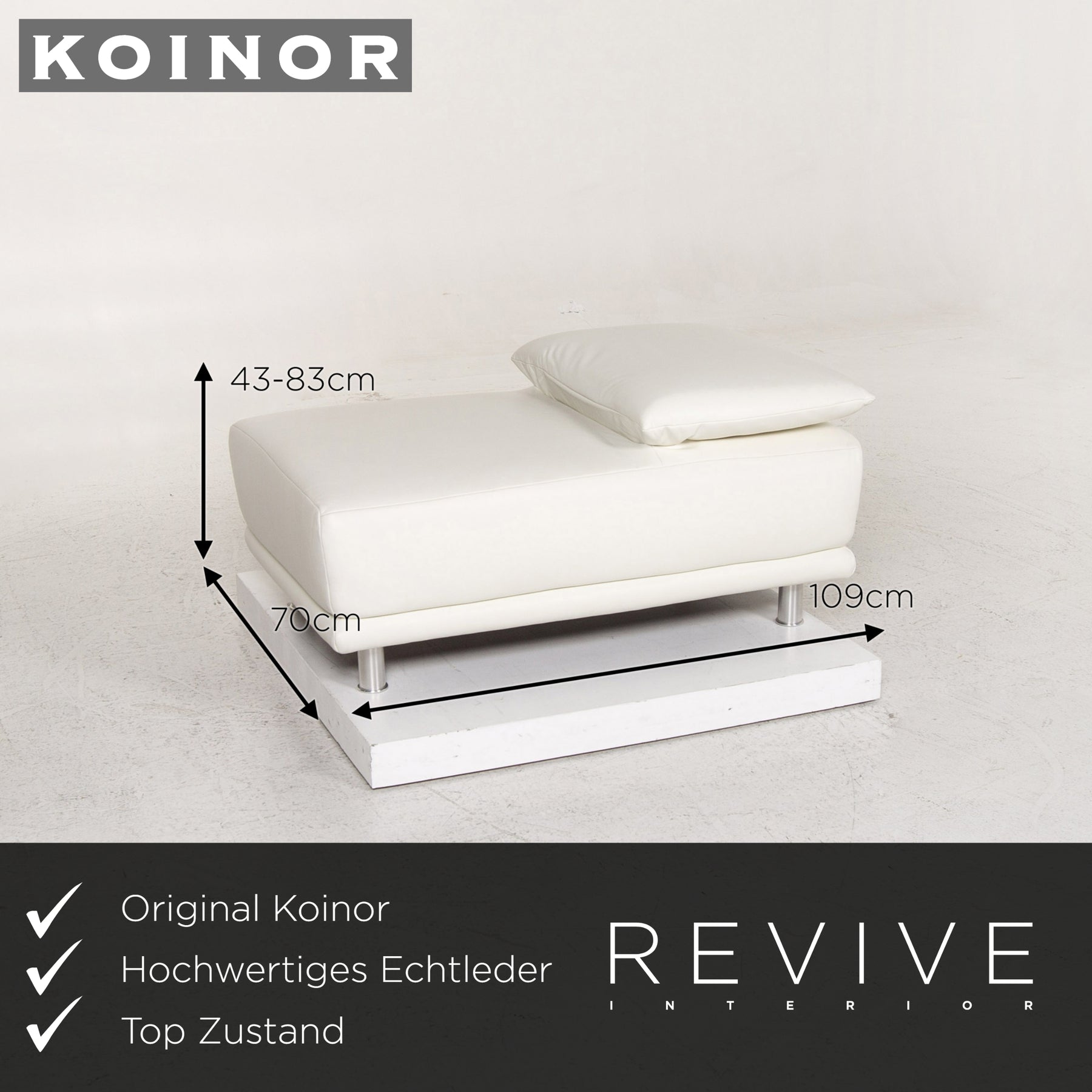 Der Hocker von Koinor ist mit einem weißen Echtleder bezogen und steht auf schlanken Füßen. Die voluminöse Form zeichnet den Ottoman aus. Ein Polsterkissen sorgt für zusätzlichen Komfort.