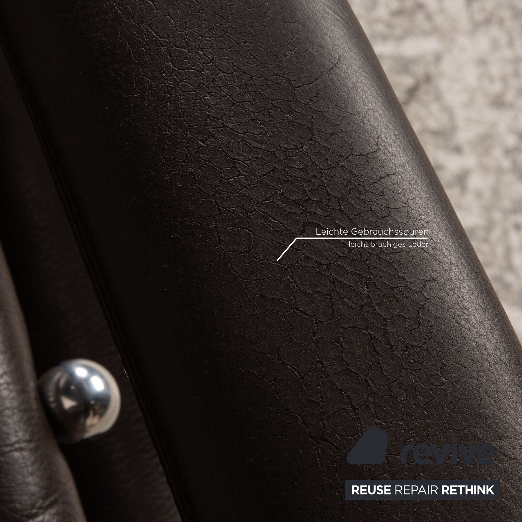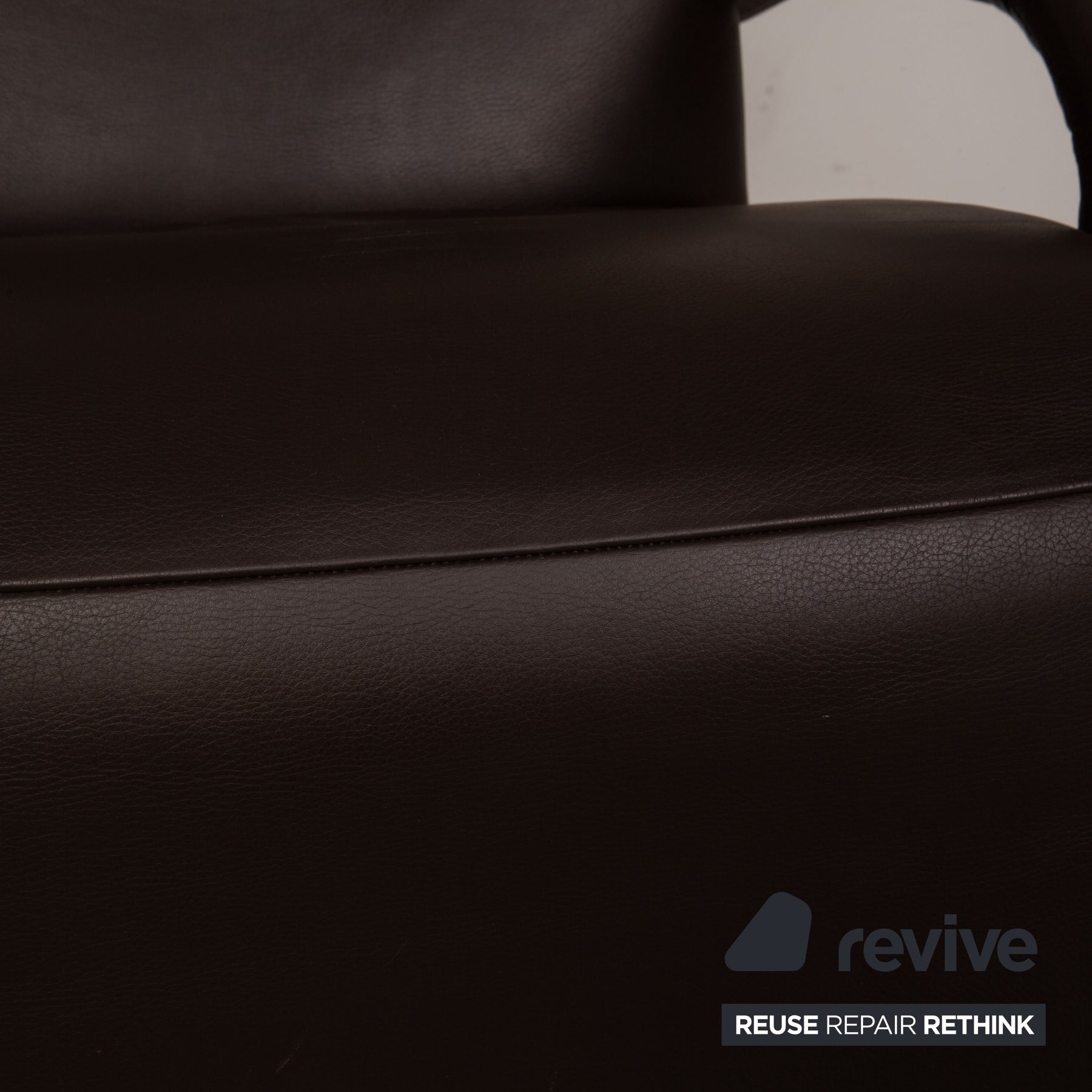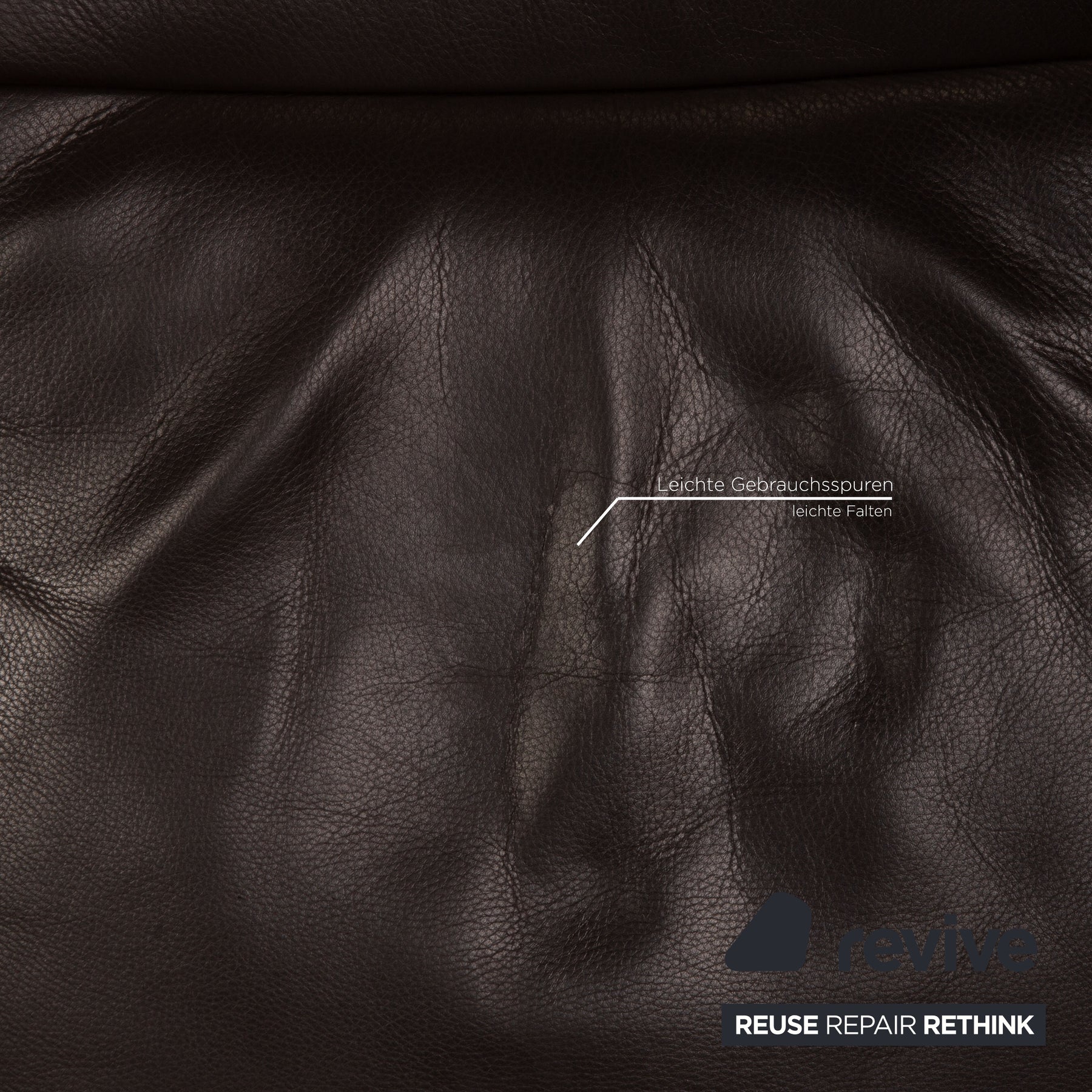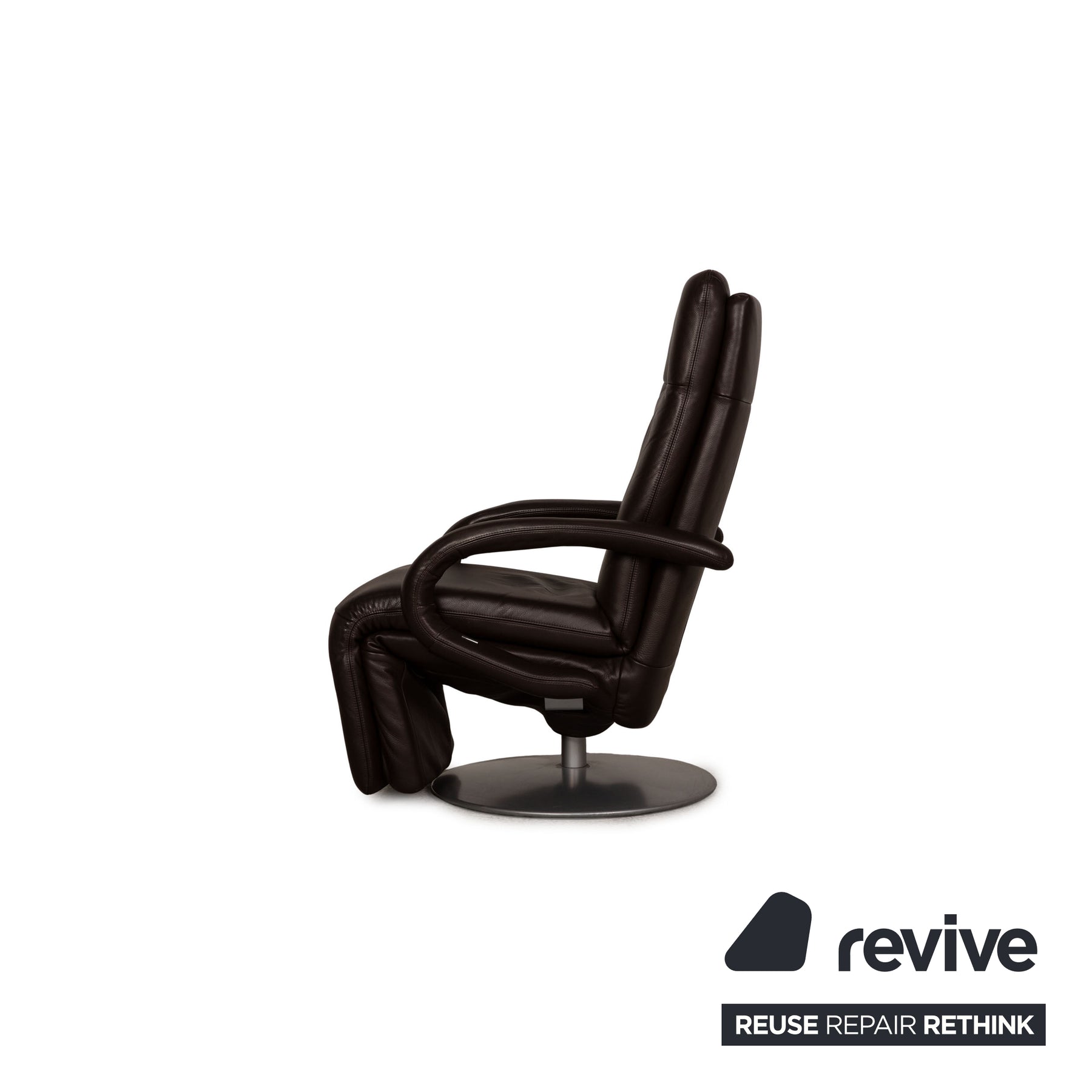 Der Koinor Sessel ist mit einem braunen Echtleder bezogen und steht auf einem runden Metallfuß. Das schlichte, zeitlose Design und die praktische Relaxfunktion zeichnen ihn aus.