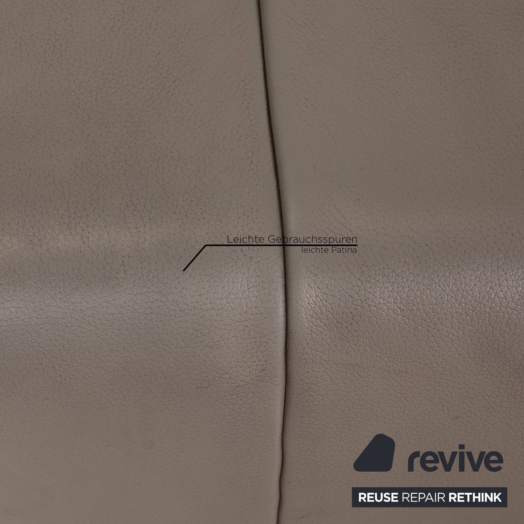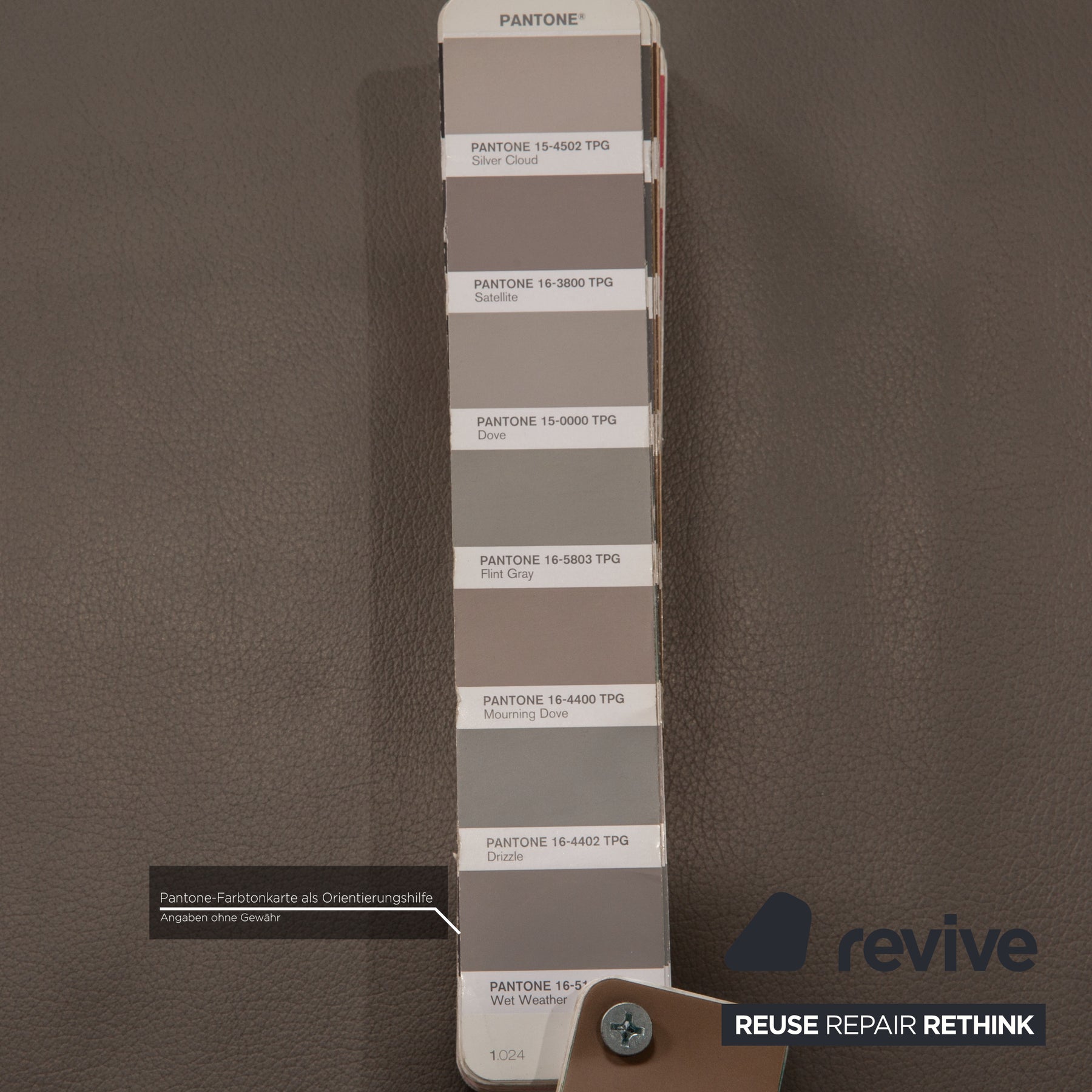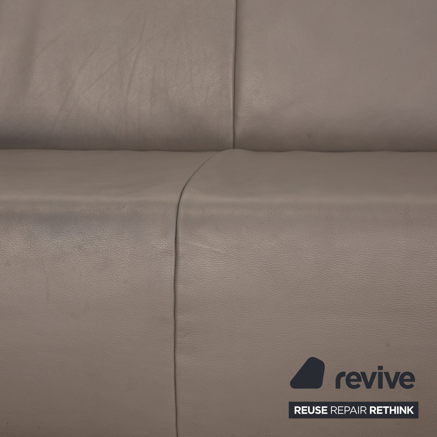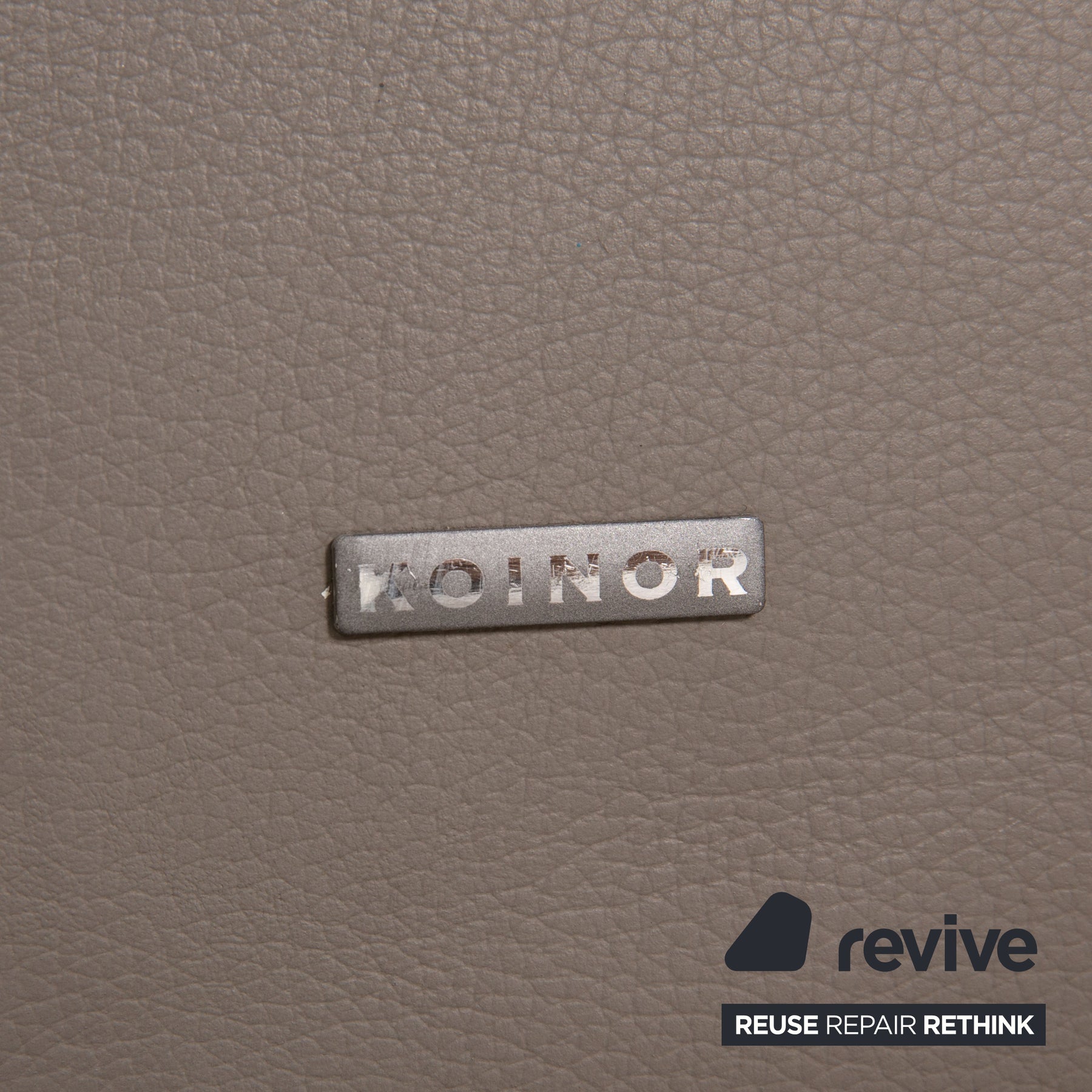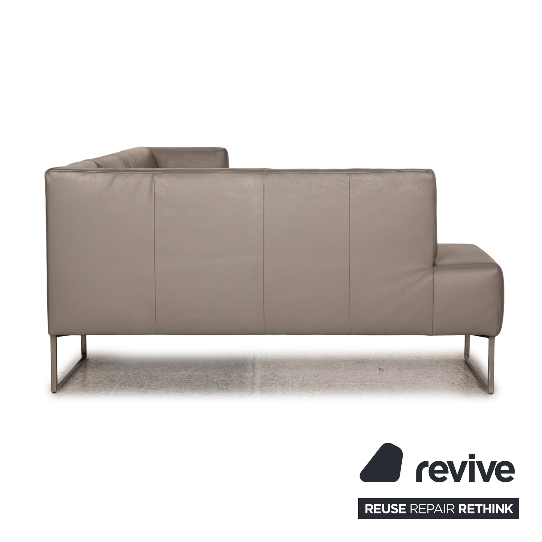 Das Ecksofa von Koinor ist mit einem grauen Echtleder bezogen und steht auf schmalen Metallfüßen. Es zeichnet sich durch das gradlinige, kantige Design und die schlichte, zeitlose Optik aus.