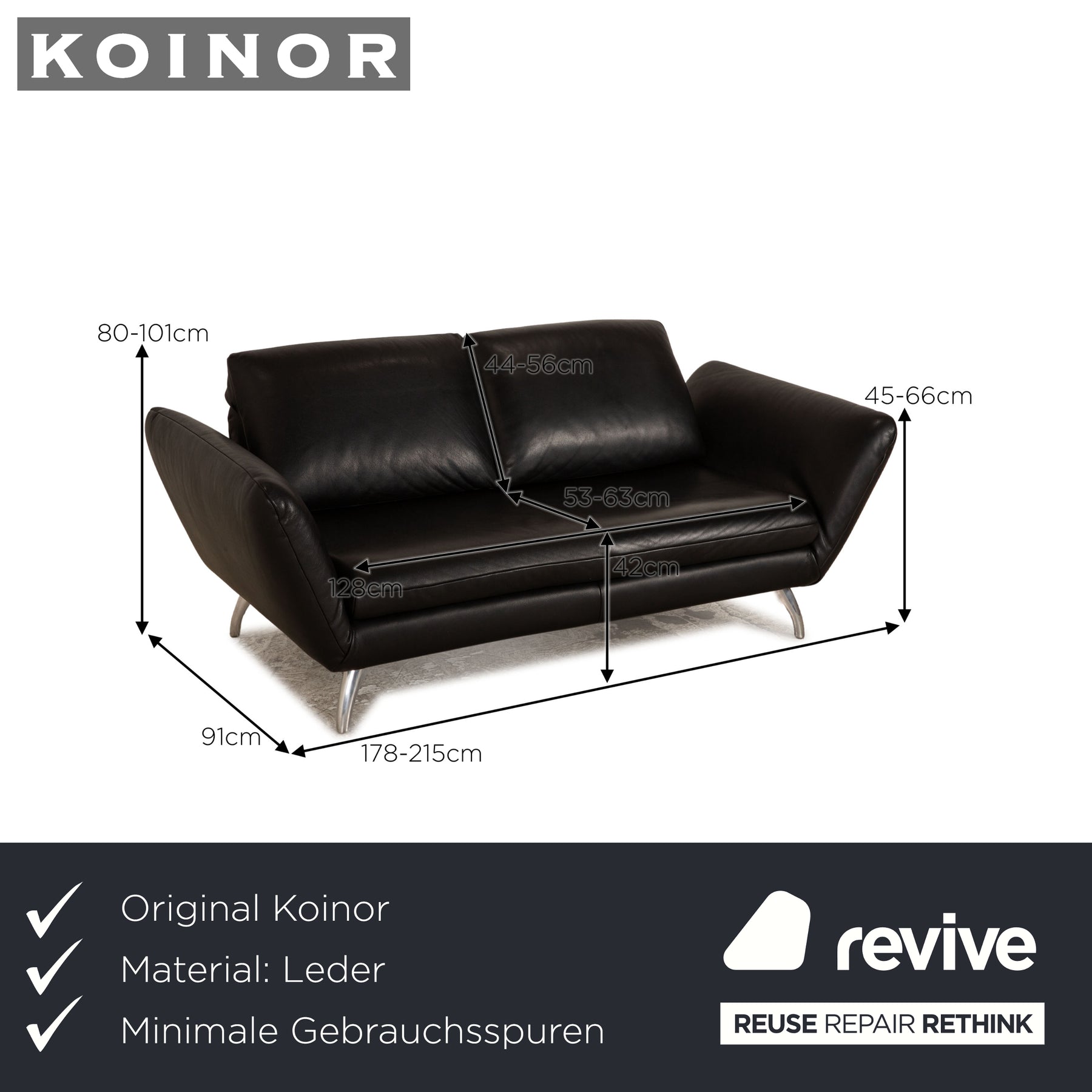 Koinor Leder Zweisitzer Schwarz manuelle Funktion Sofa Couch
