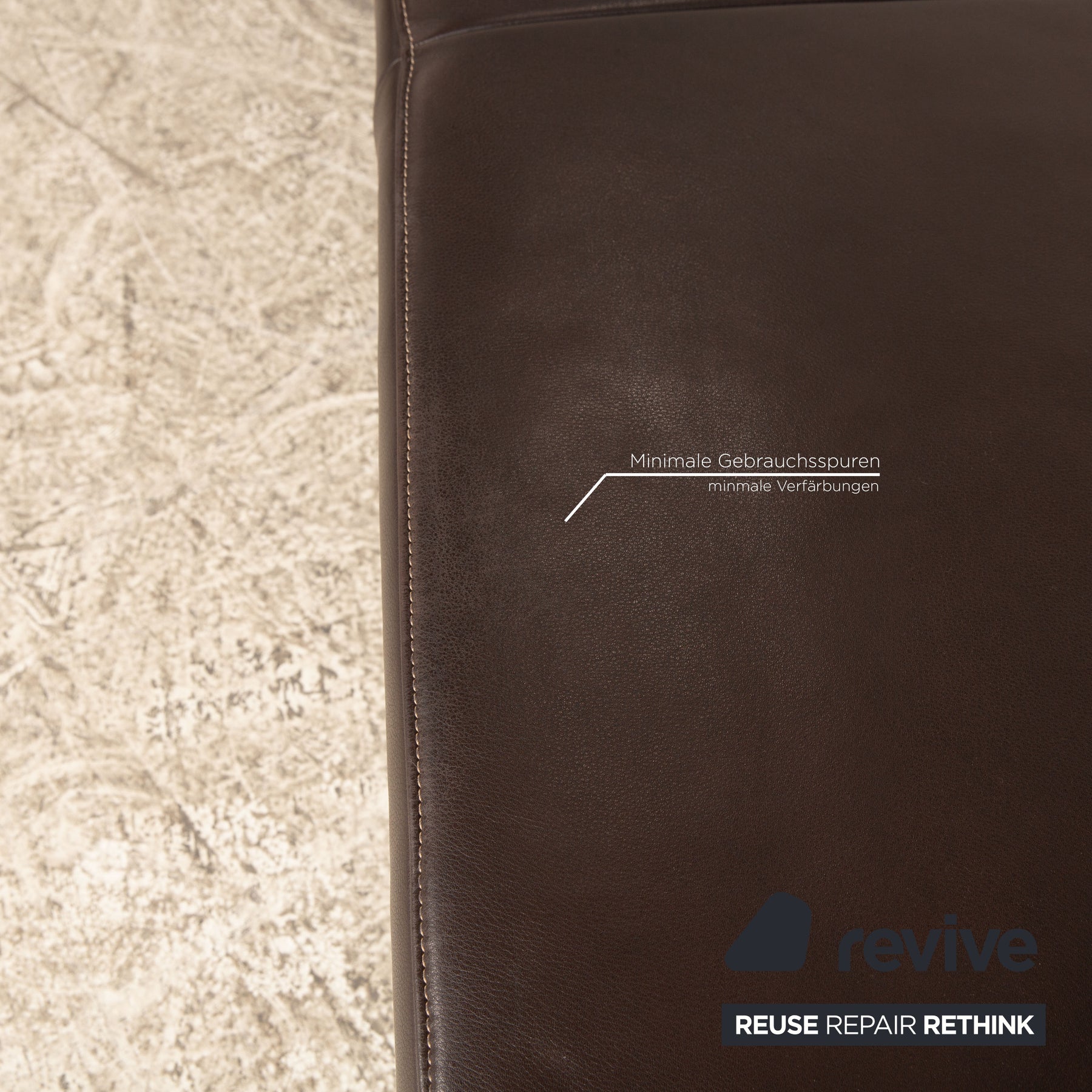 Der Raoul Hocker von Koinor ist mit einem braunen Echtleder bezogen und steht auf bodentiefen Seitenteilen. Das moderne, minimalistische Design und die verstellbaren Arm- und Rückenlehnen zeichnen ihn aus.