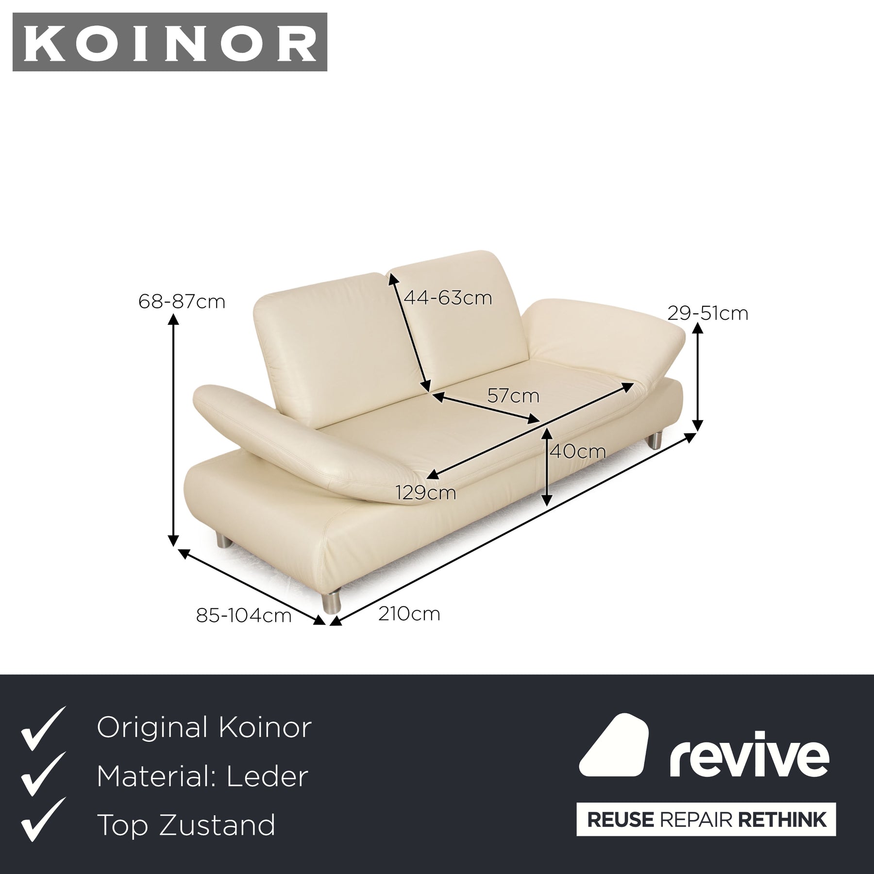 Koinor Rivoli Leder Zweisitzer Creme manuelle Funktion Sofa Couch